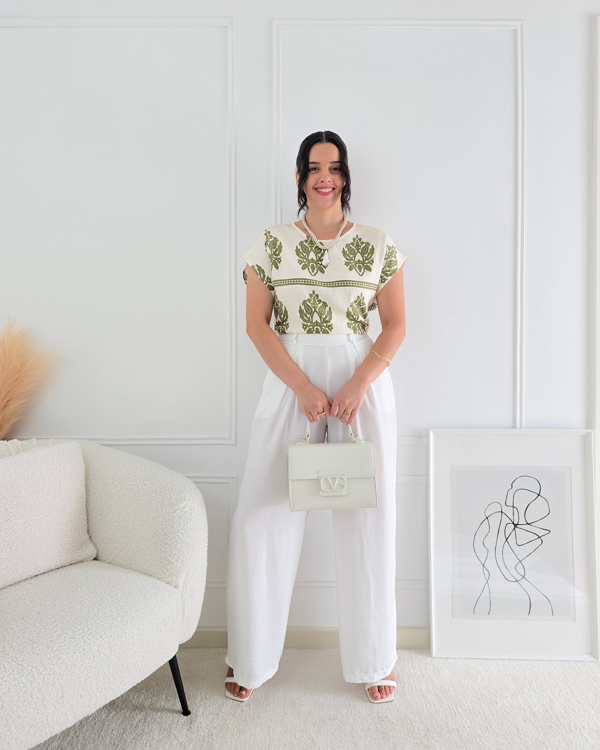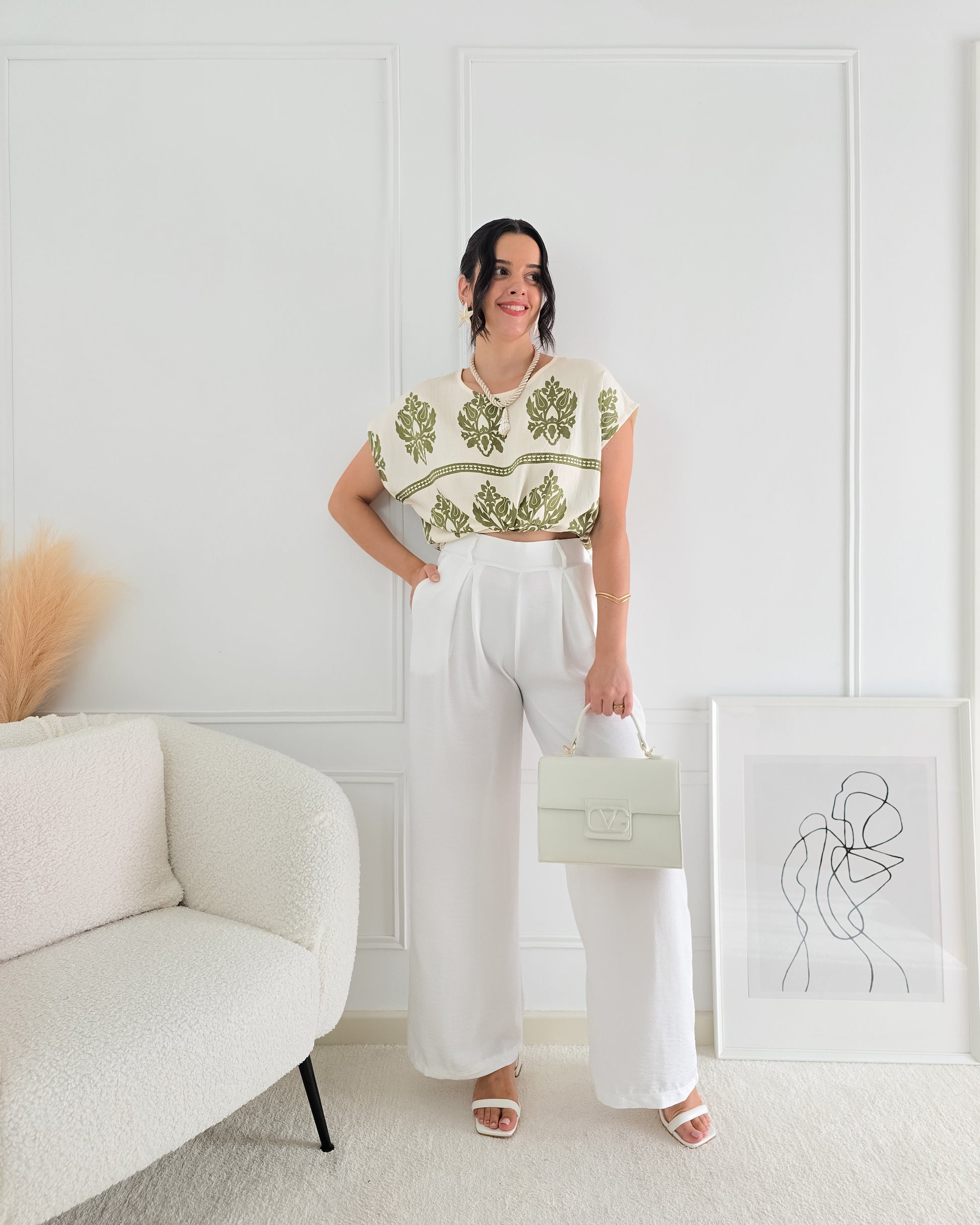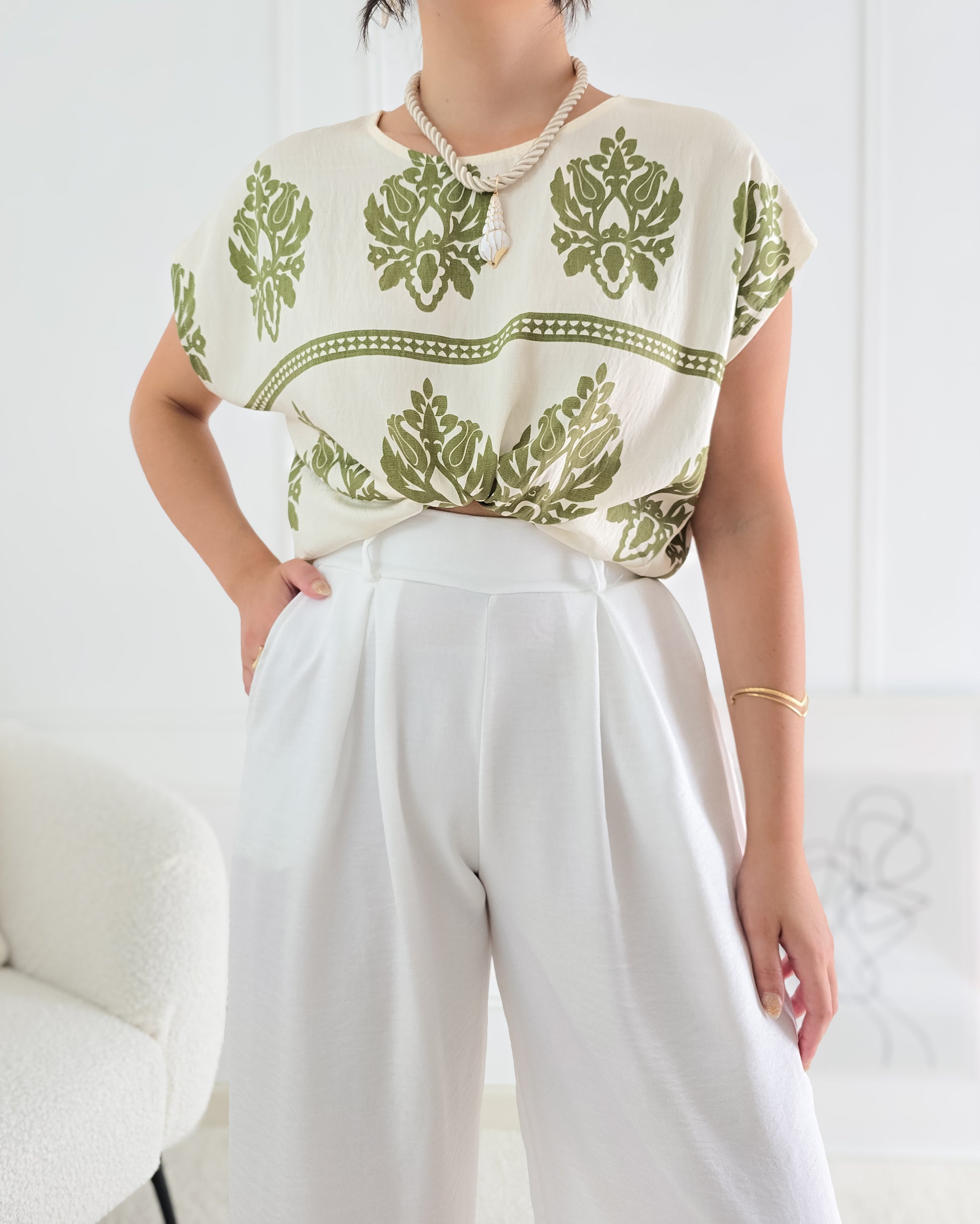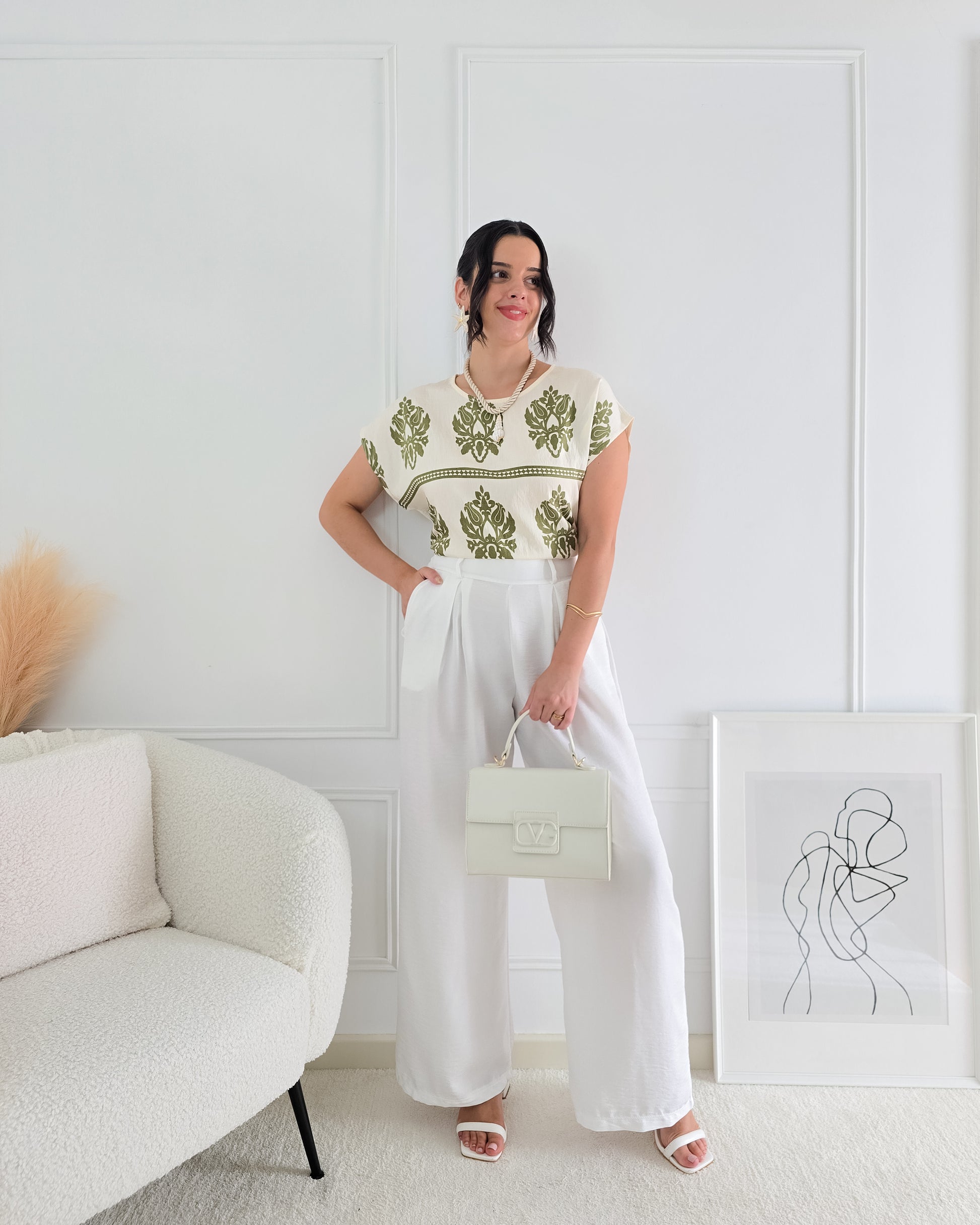 Dicas de Estilo: Combina com calças largas ou uma saia para um look casual e elegante. Adiciona acessórios simples para um visual leve e fresco.