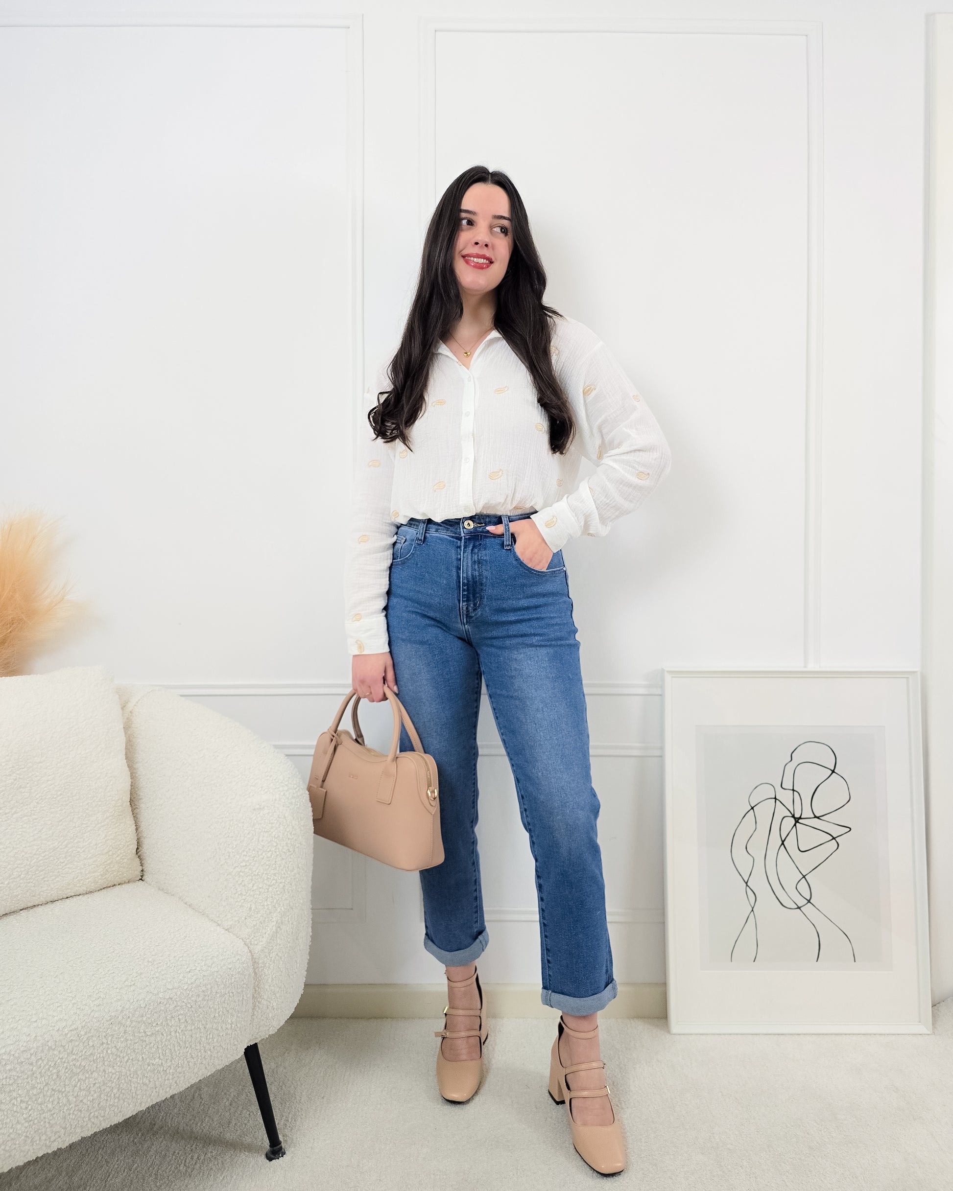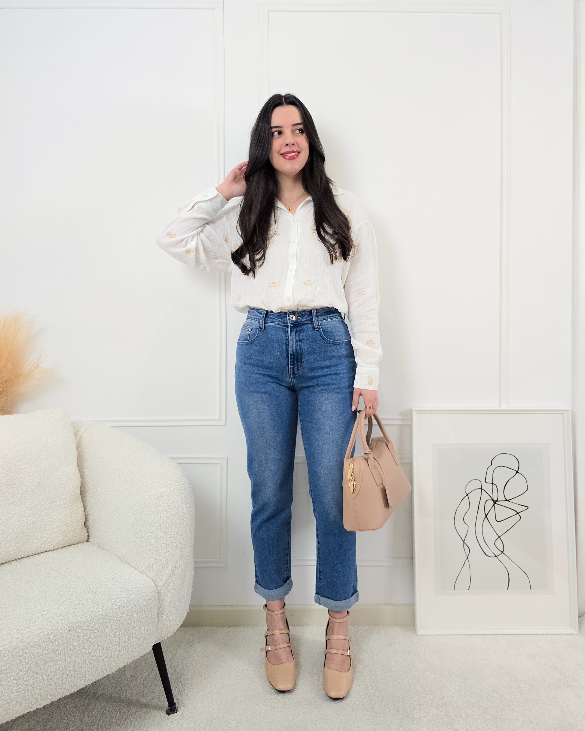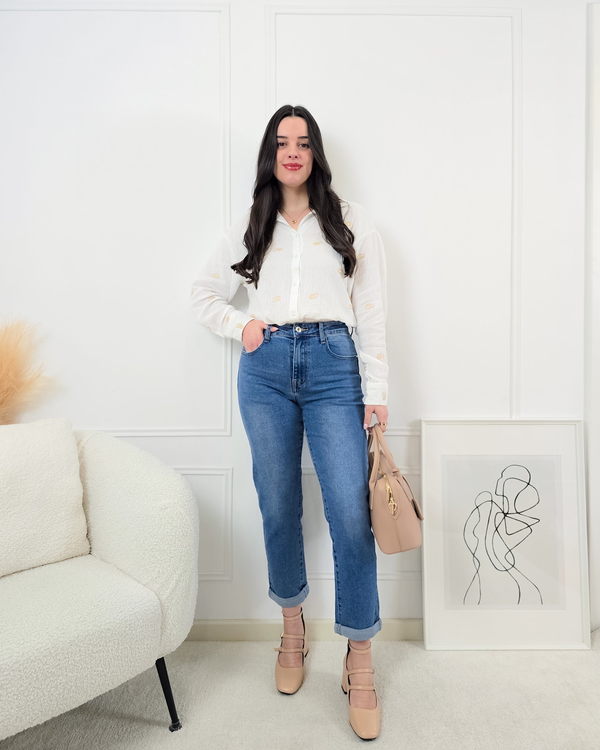 - Estilo Clássico: O corte mom-fit é despojado e moderno, ideal para combinar com diversos tipos de tops.
