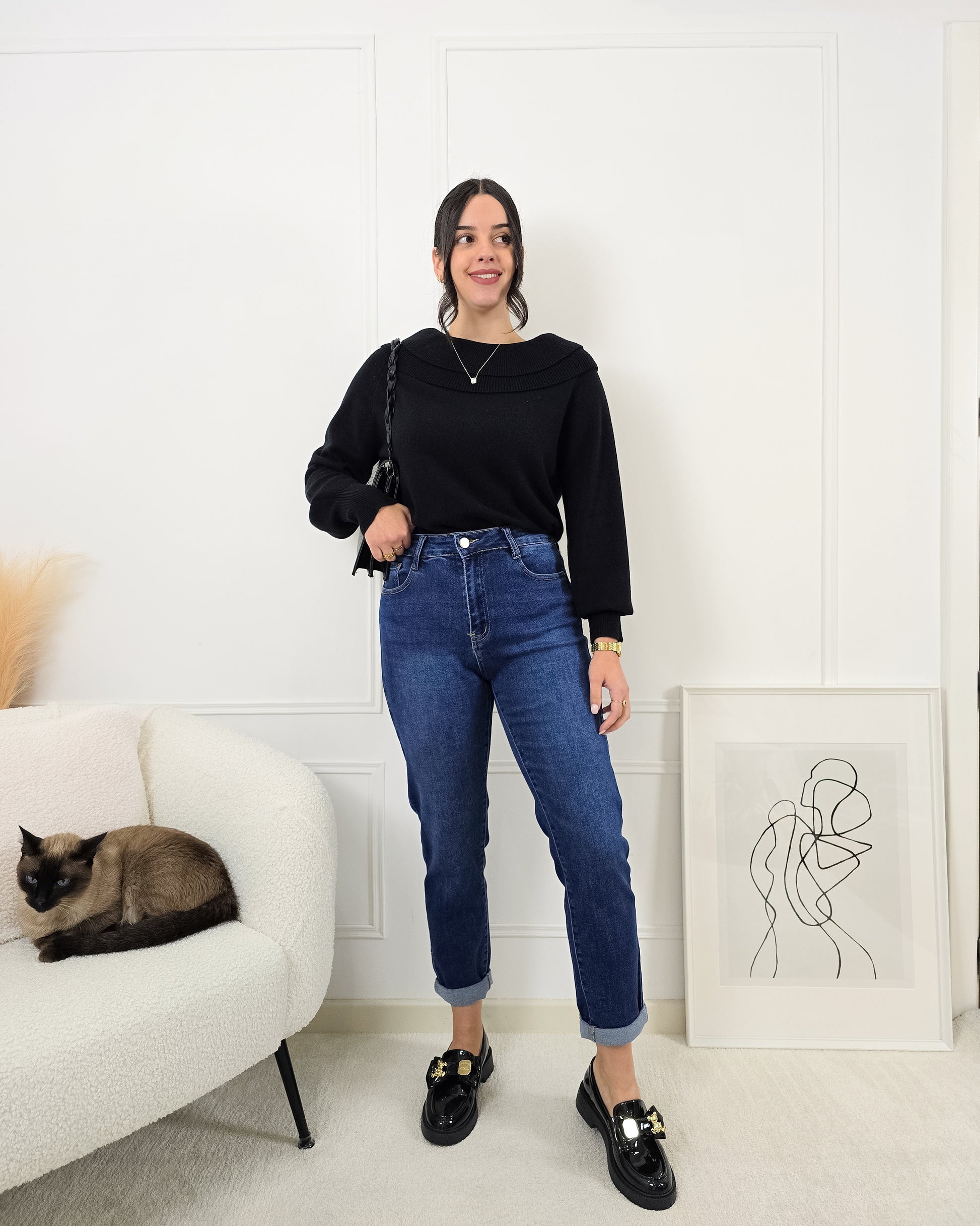 - Estilo Clássico: O corte mom-fit é despojado e moderno, ideal para combinar com diversos tipos de tops.