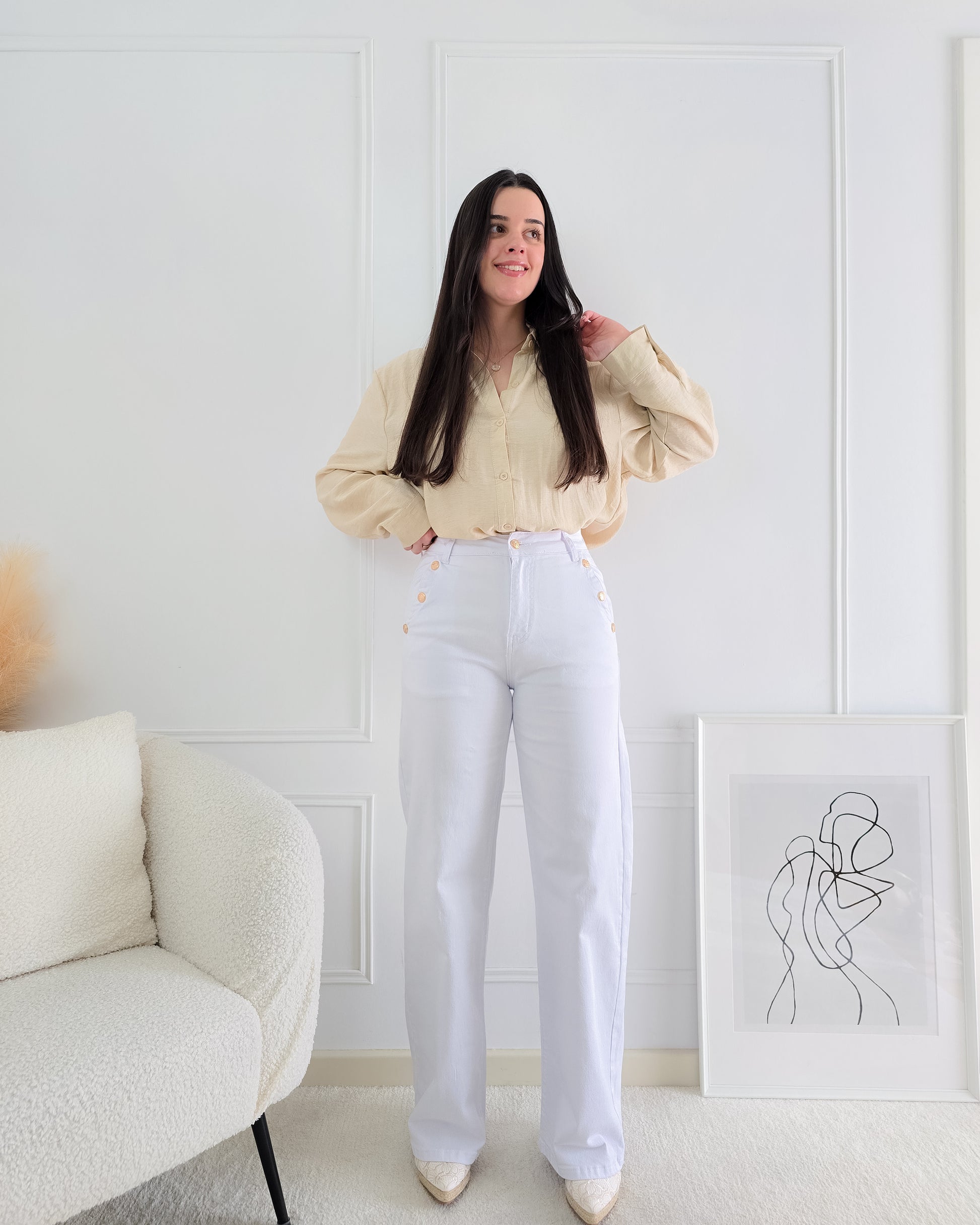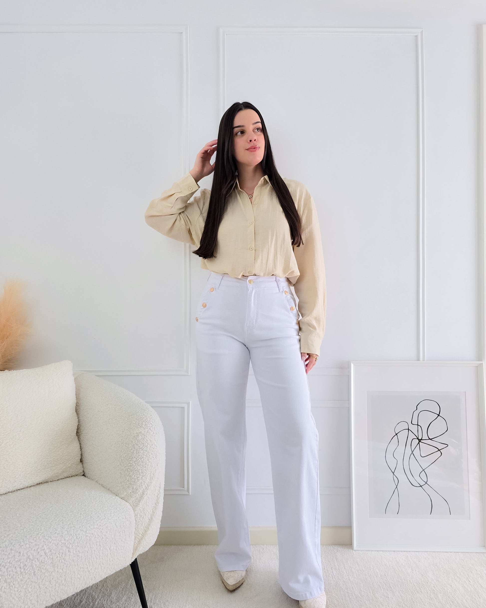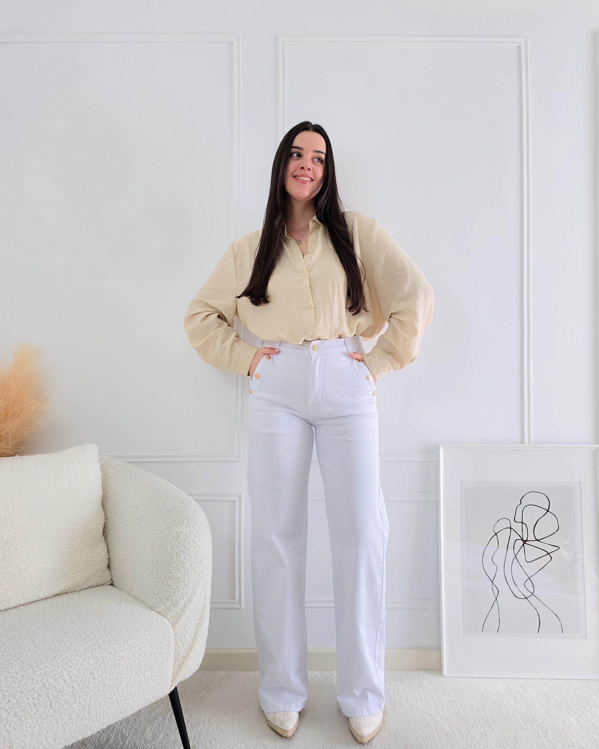 - Corte Wide Leg: O design de perna larga proporciona um visual elegante e contemporâneo, ideal para diversas combinações.