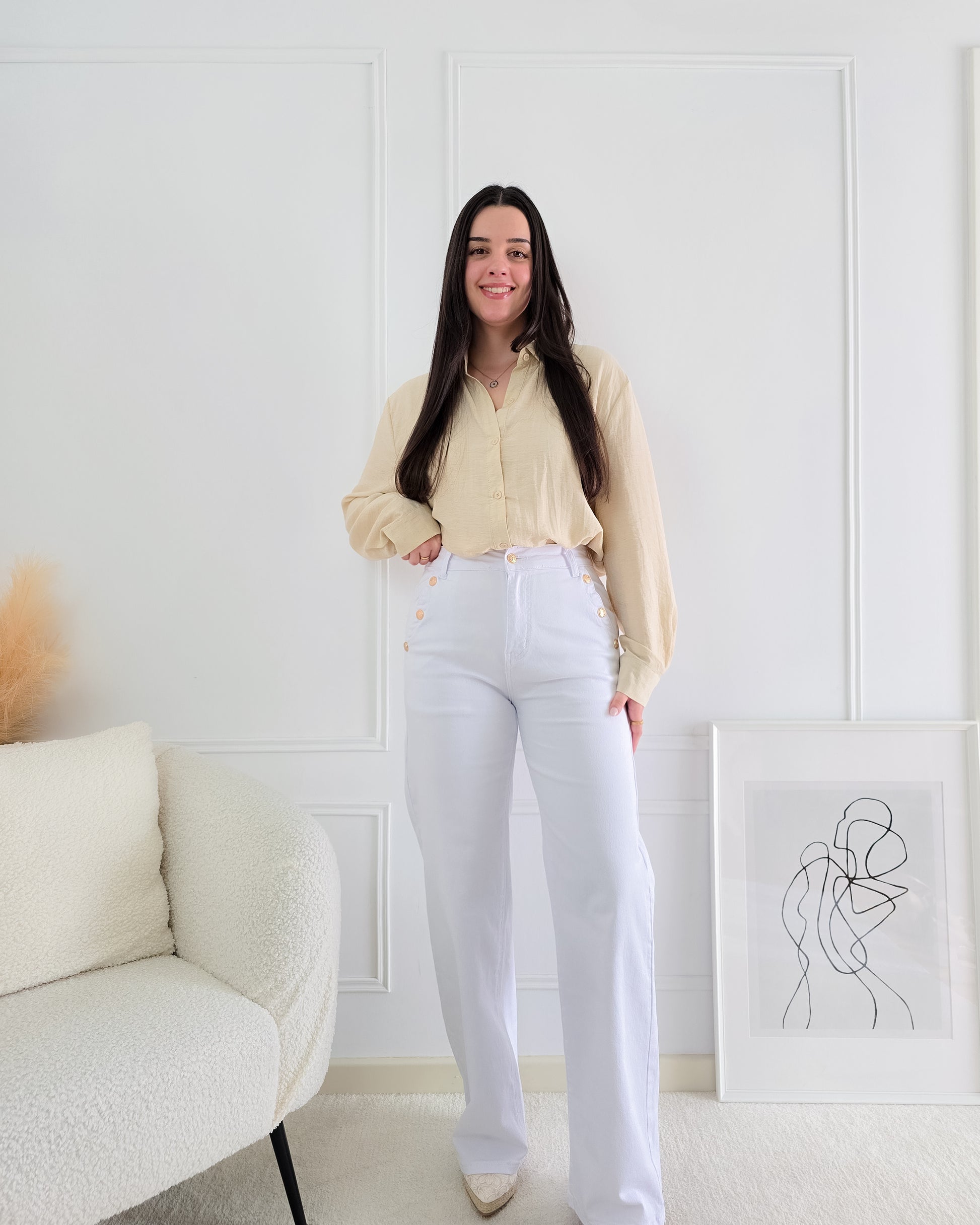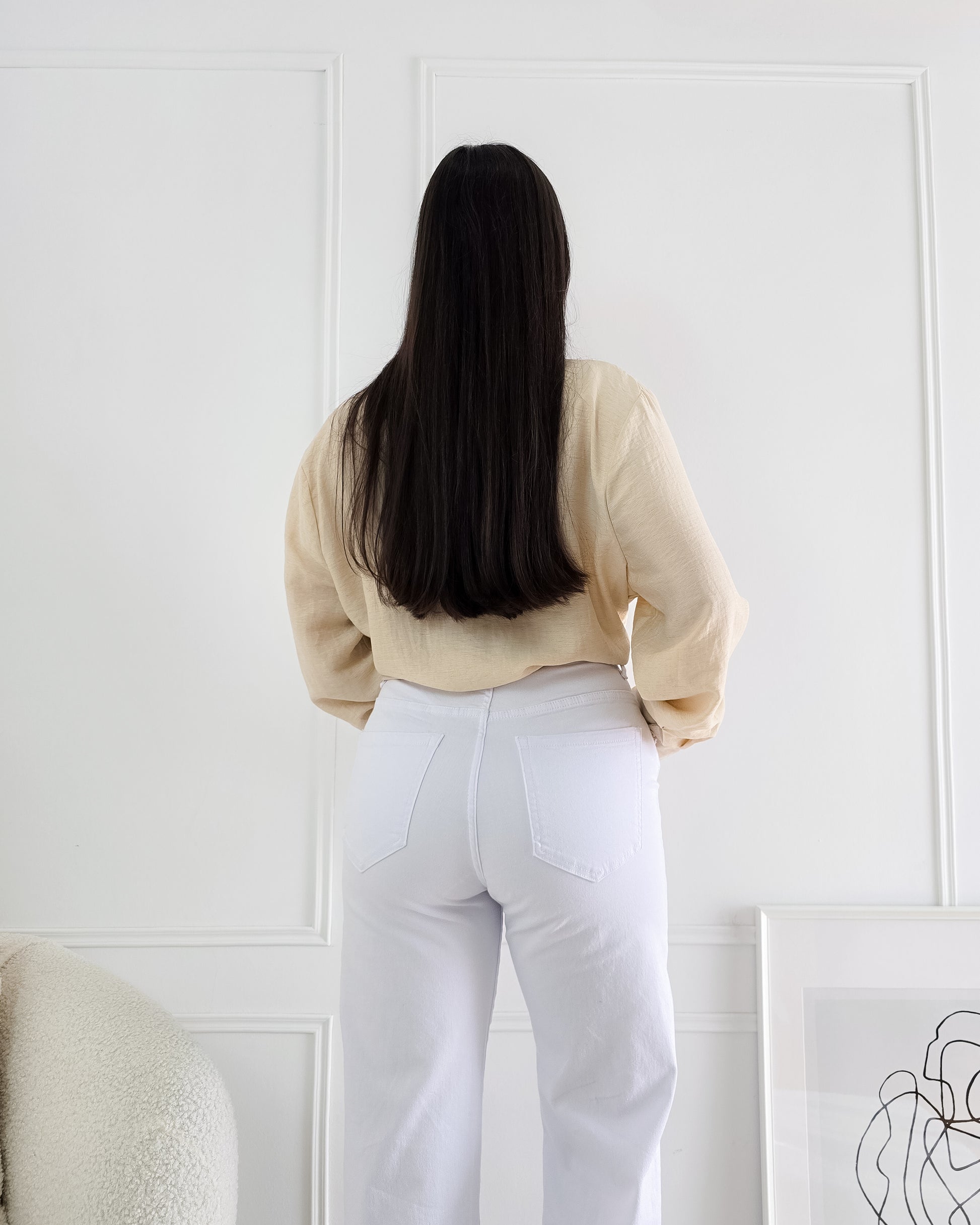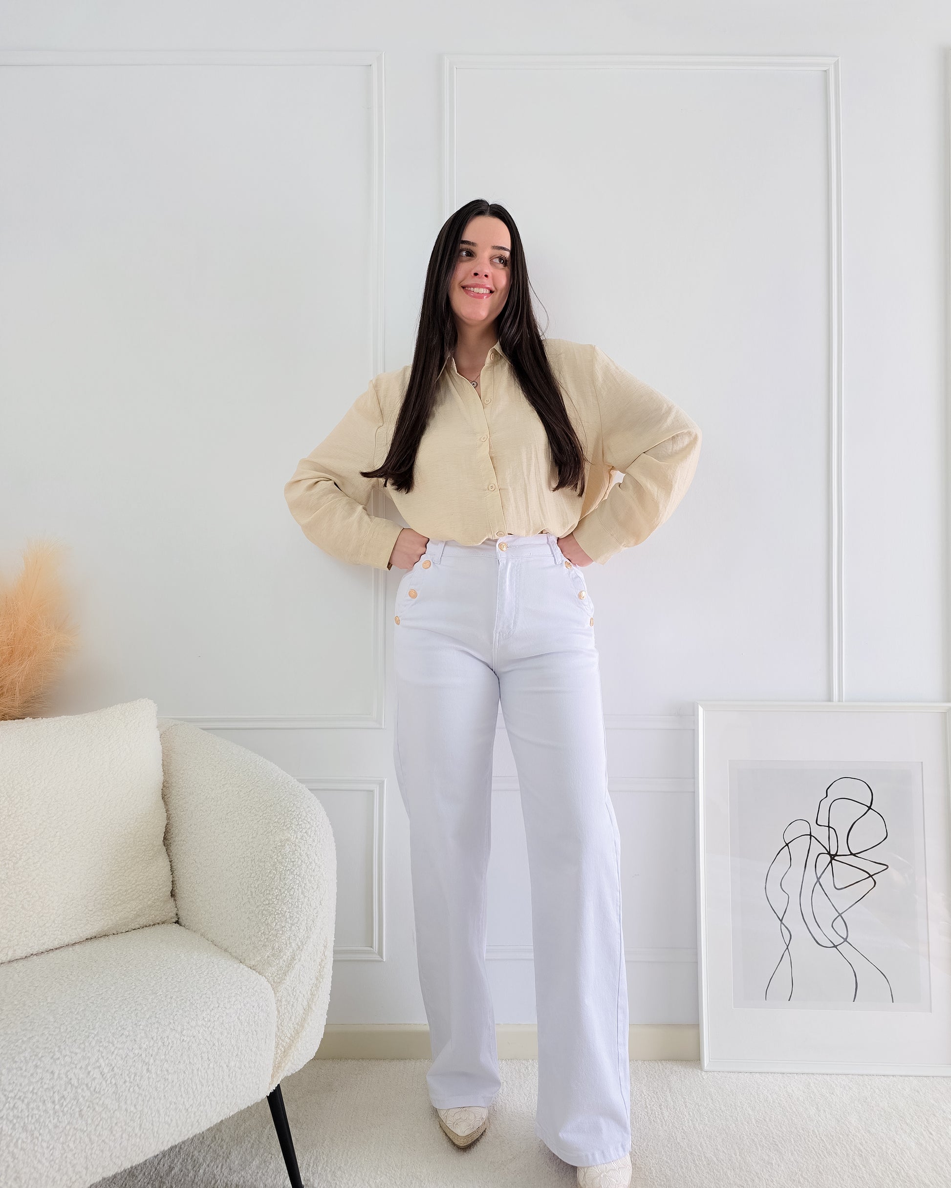 - Corte Wide Leg: O design de perna larga proporciona um visual elegante e contemporâneo, ideal para diversas combinações.