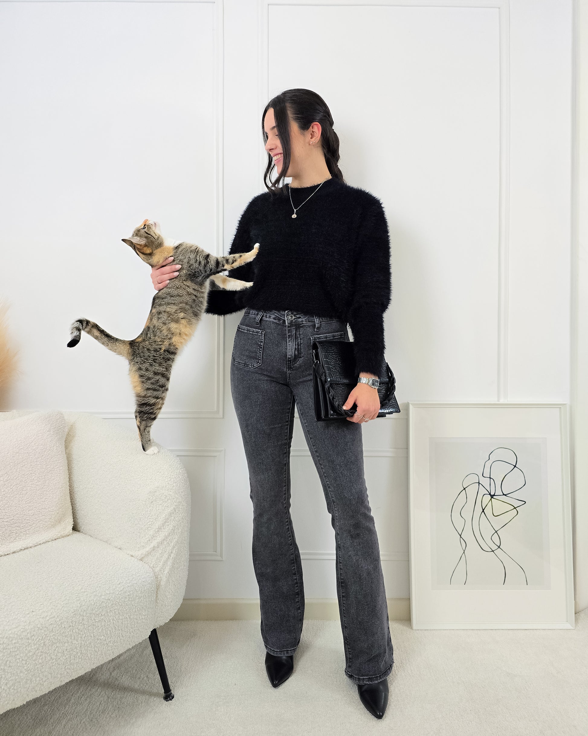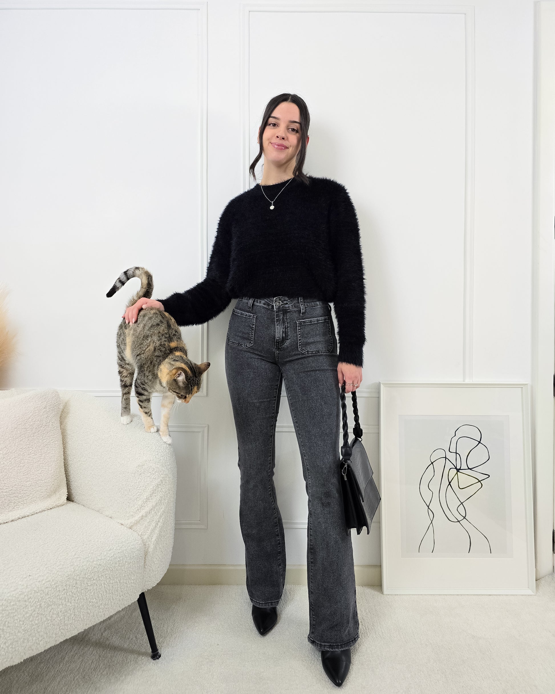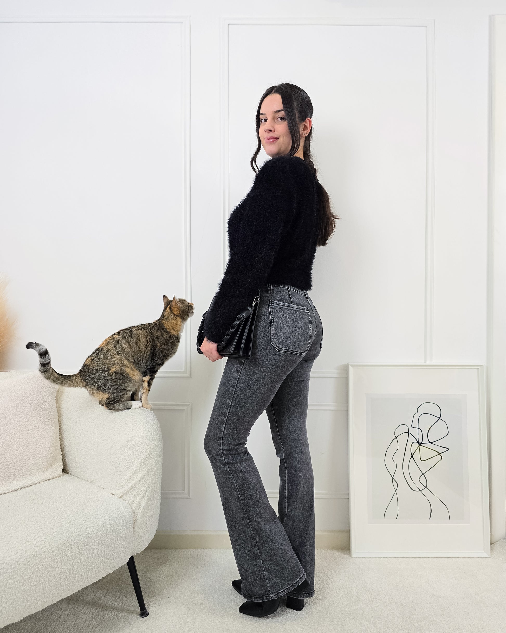 Realça as tuas curvas com estas calças flared de cintura alta – o modelo perfeito para um look moderno, elegante e super confortável!