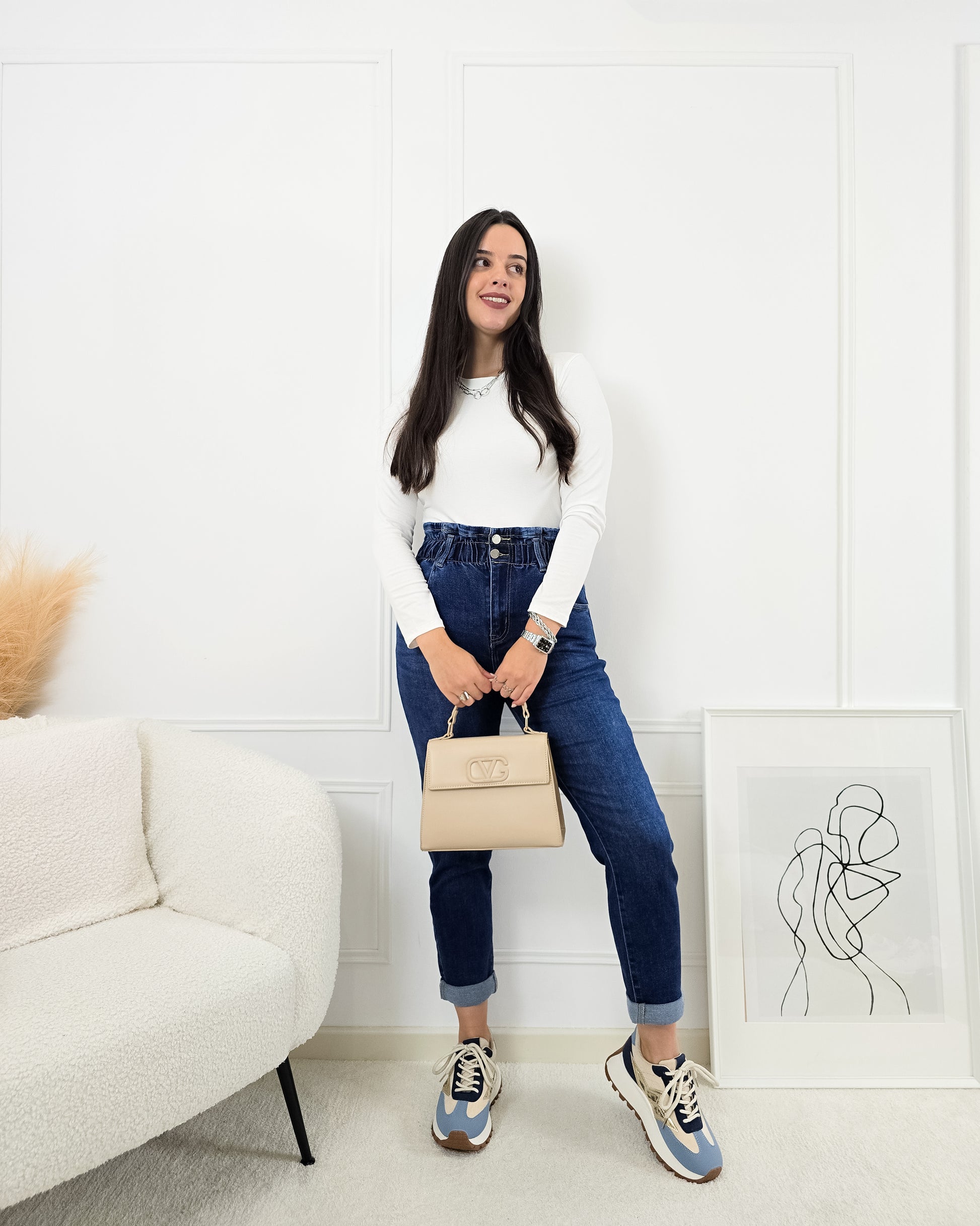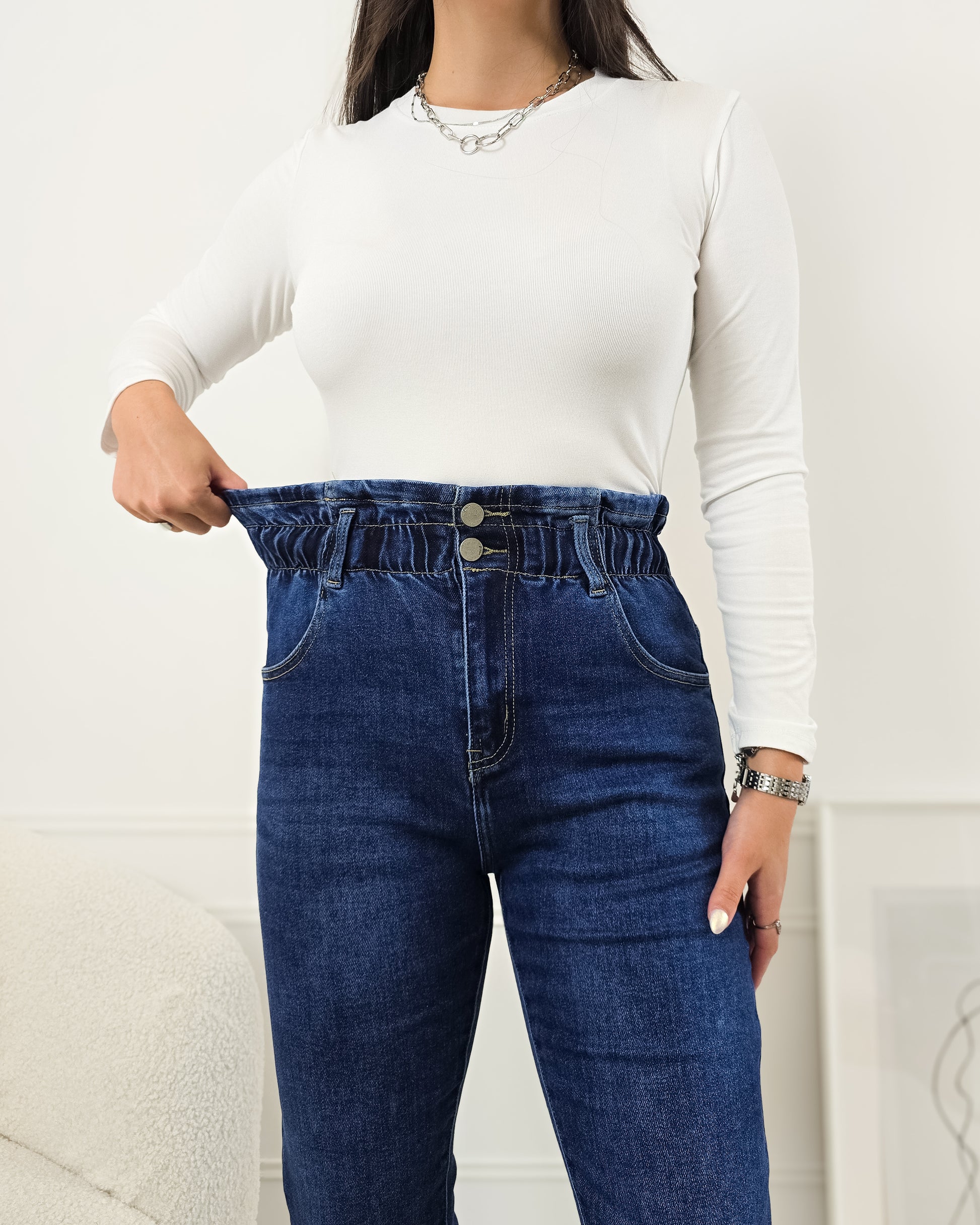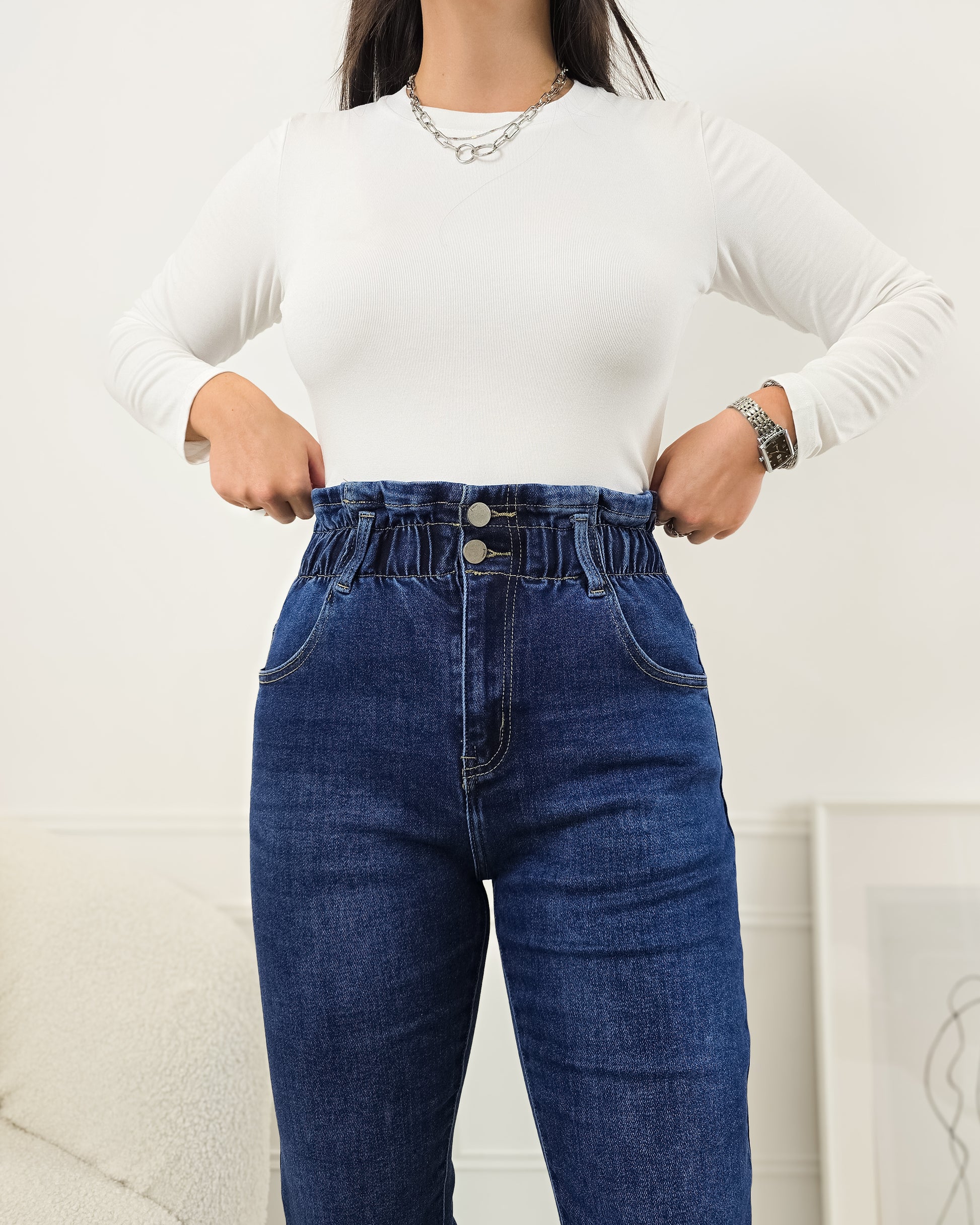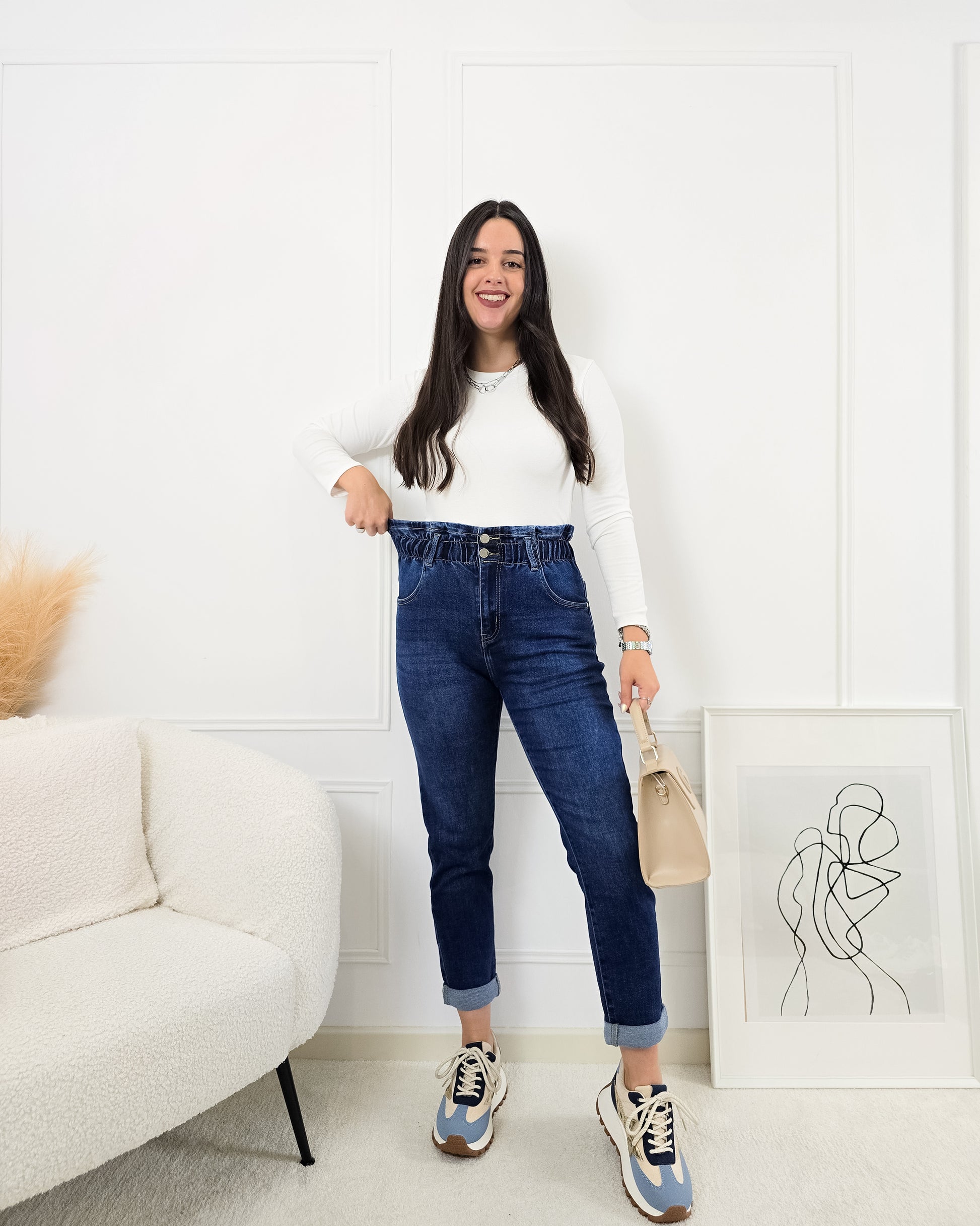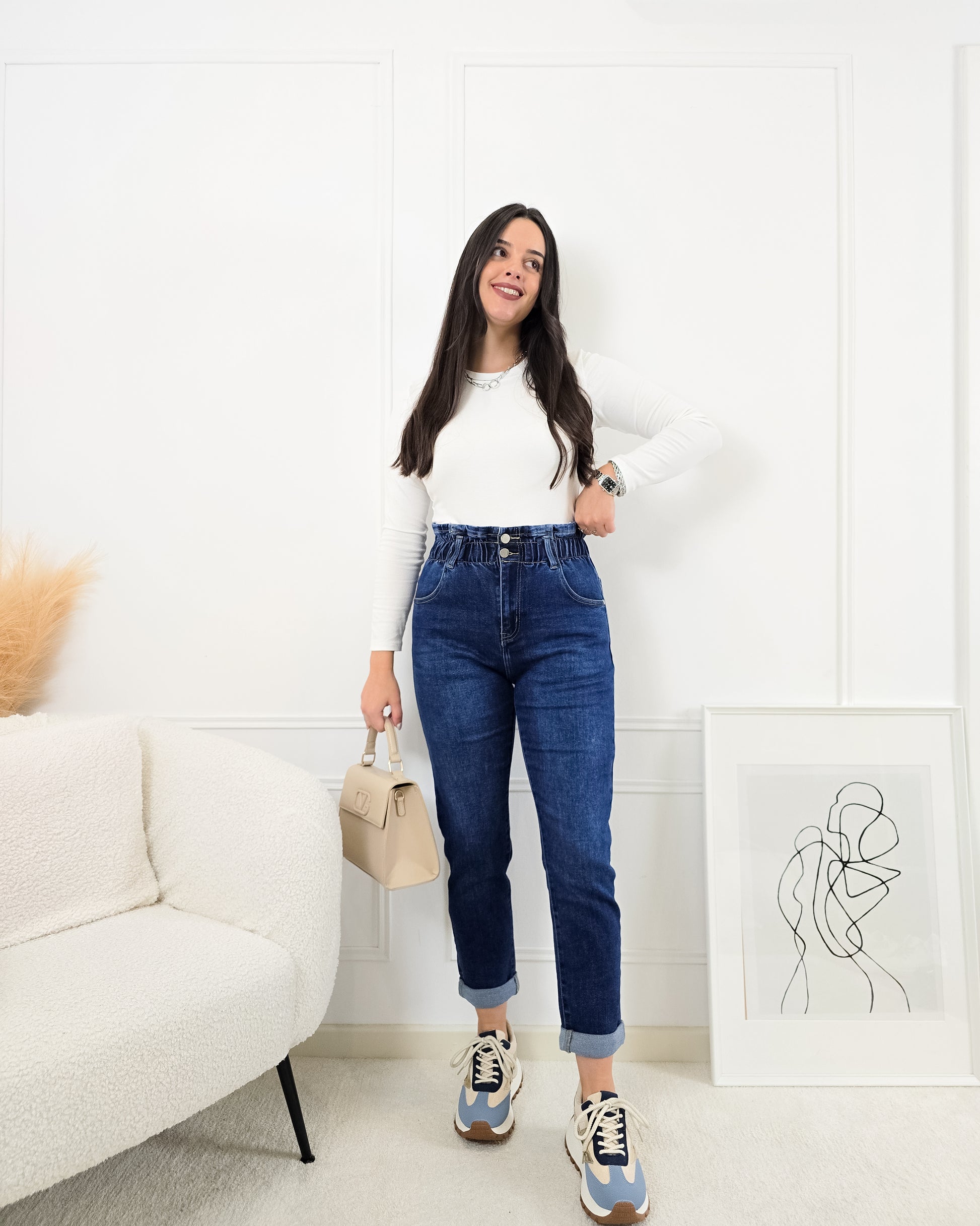 Transforma o teu estilo com estas calças mágicas mom-fit! Perfeitas para qualquer ocasião, combinam conforto e um design que valoriza as curvas.