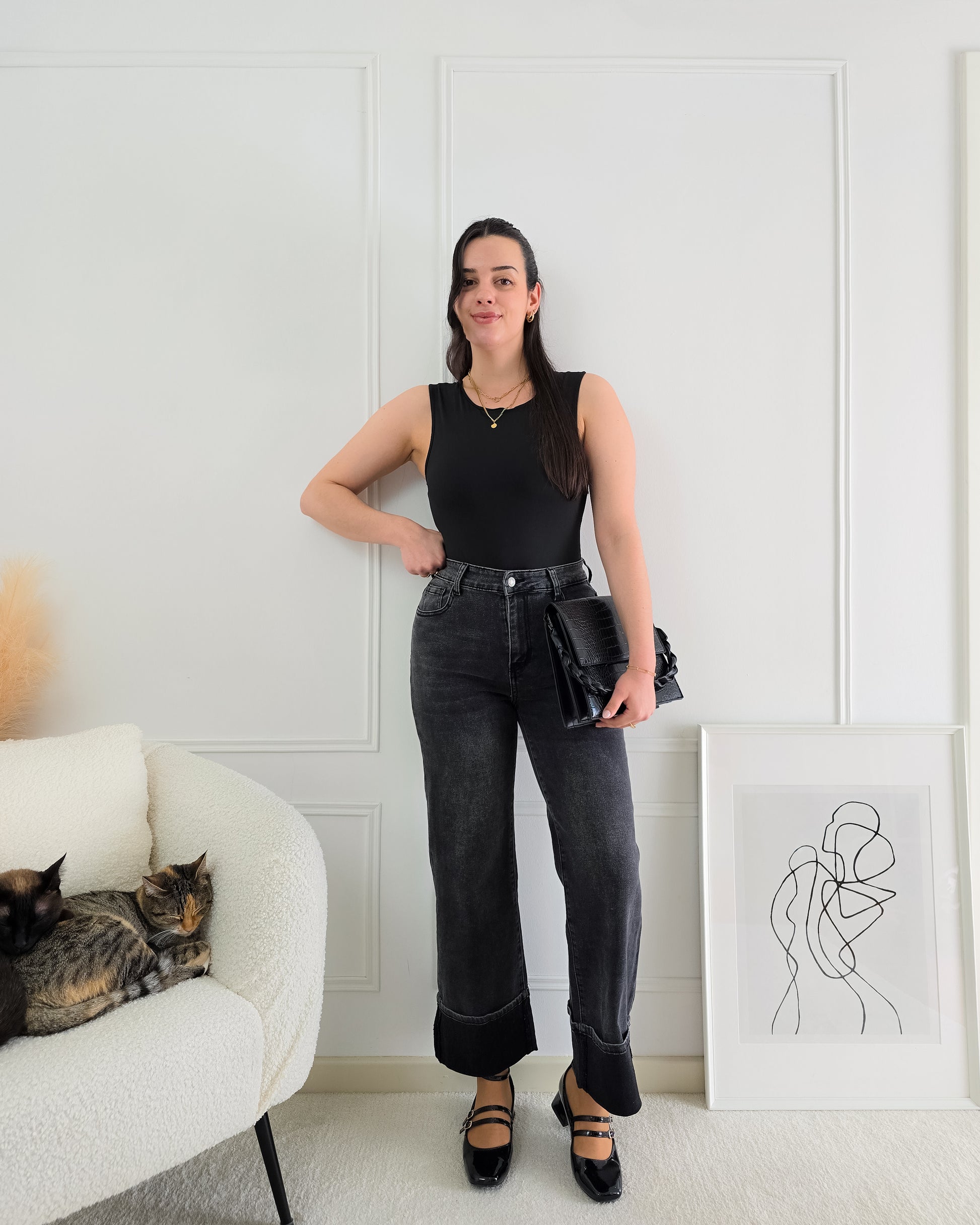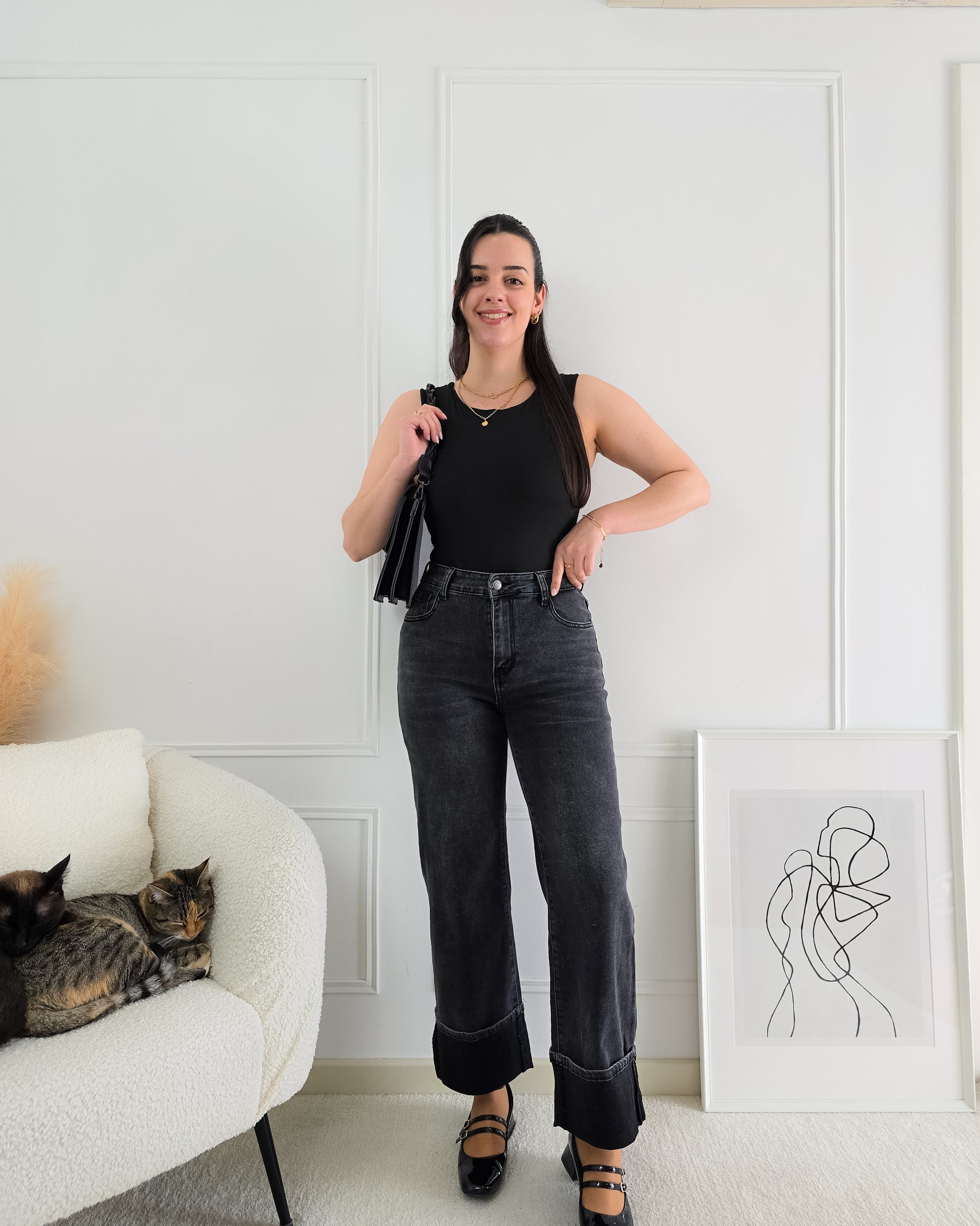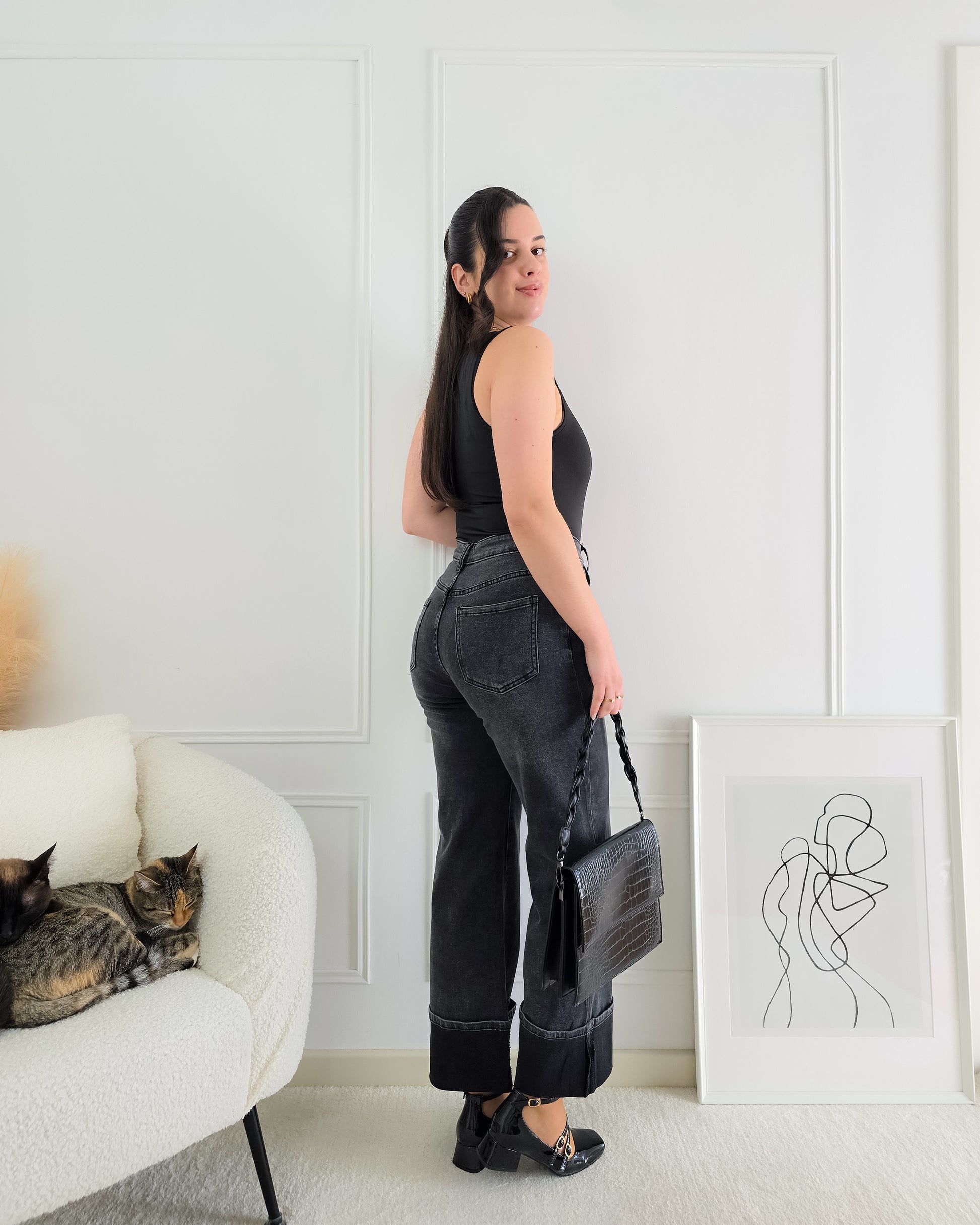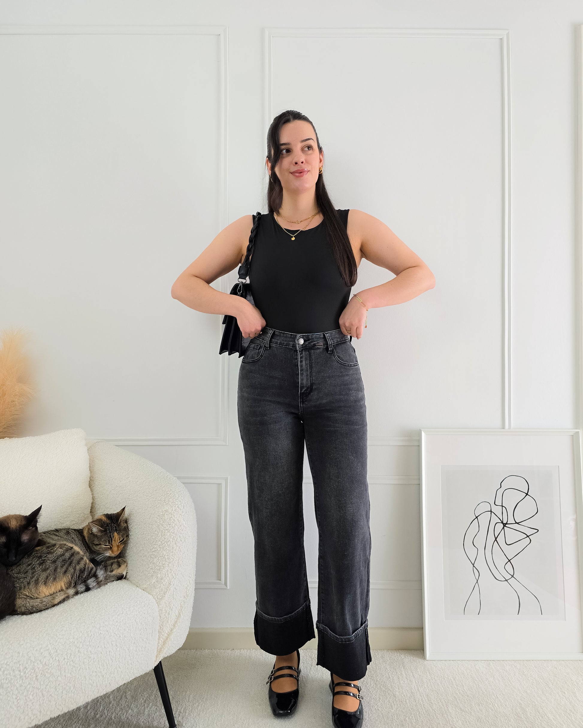 - Corte Wide Leg: O design de perna larga oferece um visual moderno e sofisticado, ideal para várias combinações.