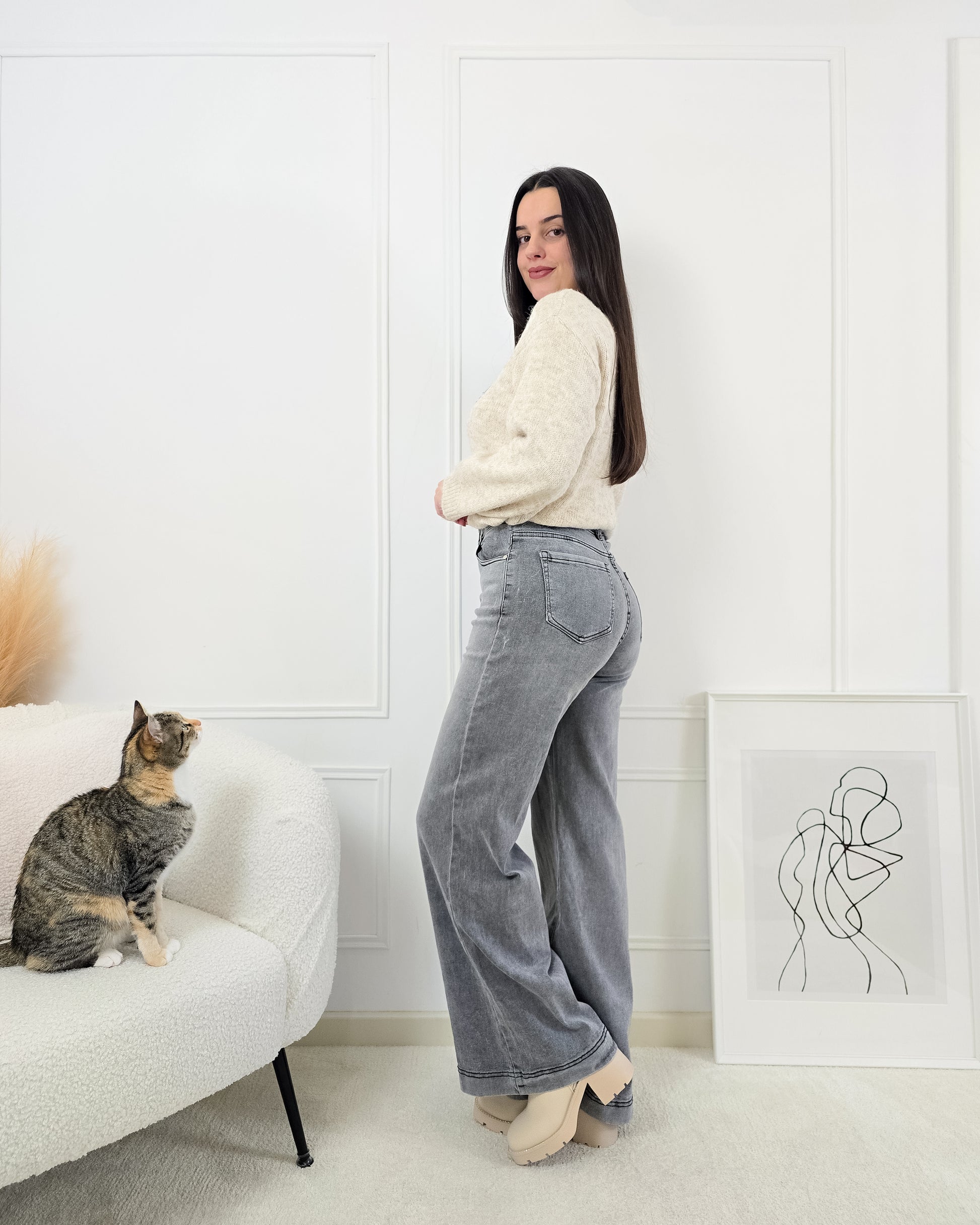 Transforma o teu estilo com estas calças wide leg que combinam conforto e elegância! Perfeitas para qualquer ocasião, são uma adição essencial ao teu guarda-roupa.