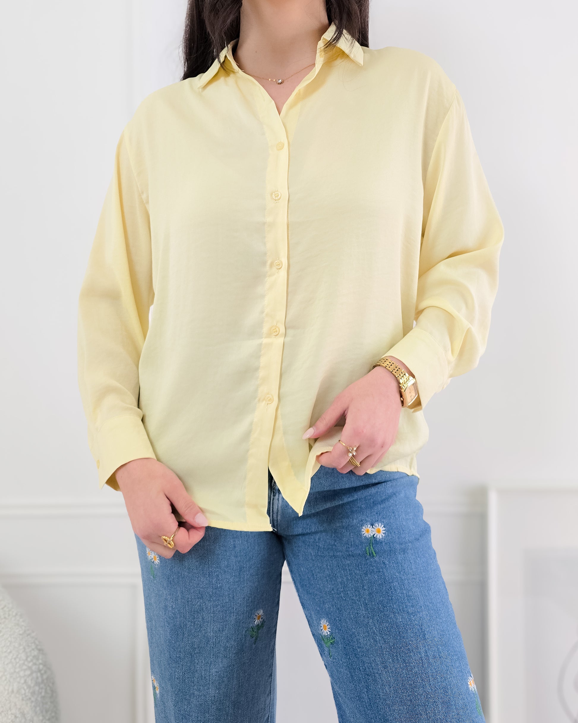 Adiciona um toque de elegância ao teu guarda-roupa com esta camisa de toque acetinado – perfeita para looks sofisticados e versáteis!