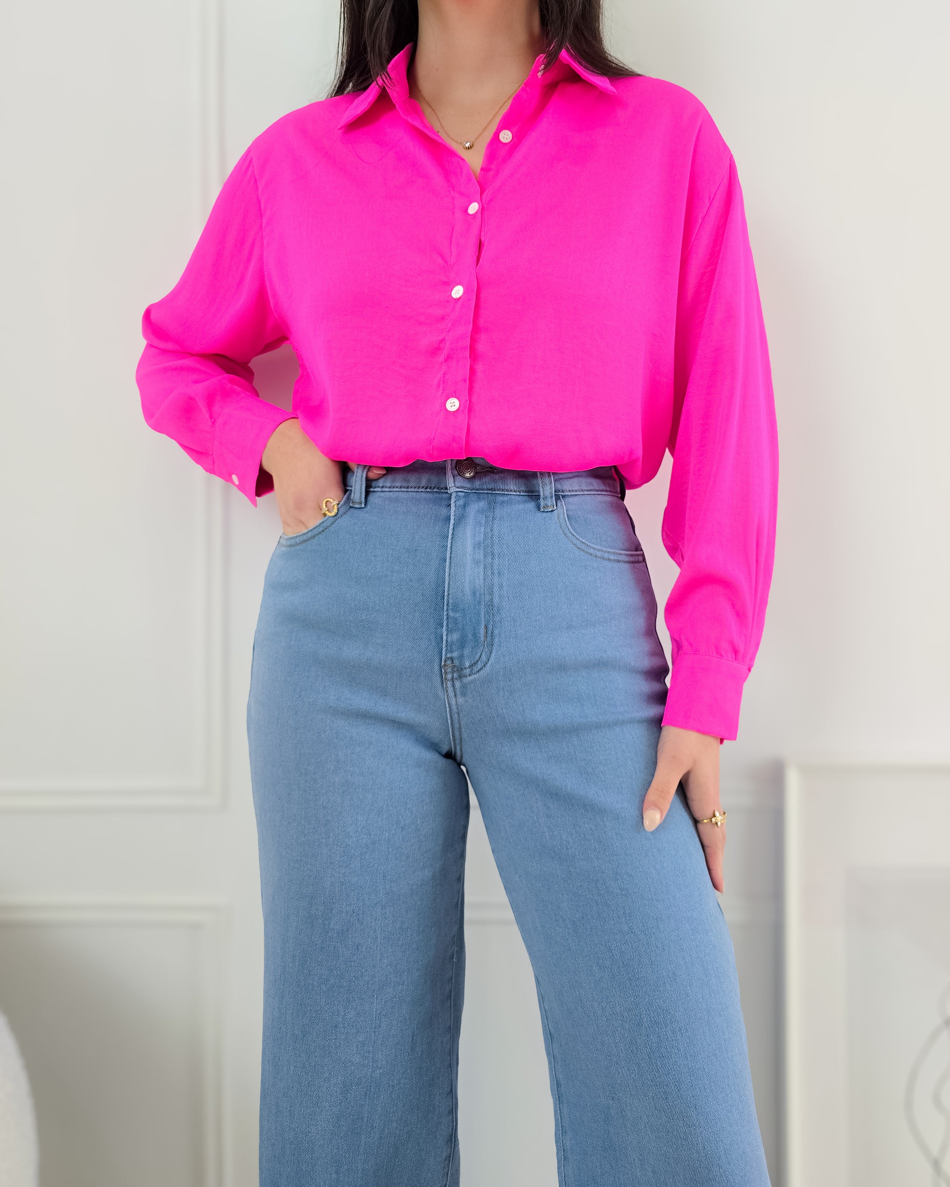 Adiciona um toque de elegância ao teu guarda-roupa com esta camisa de toque acetinado – perfeita para looks sofisticados e versáteis!