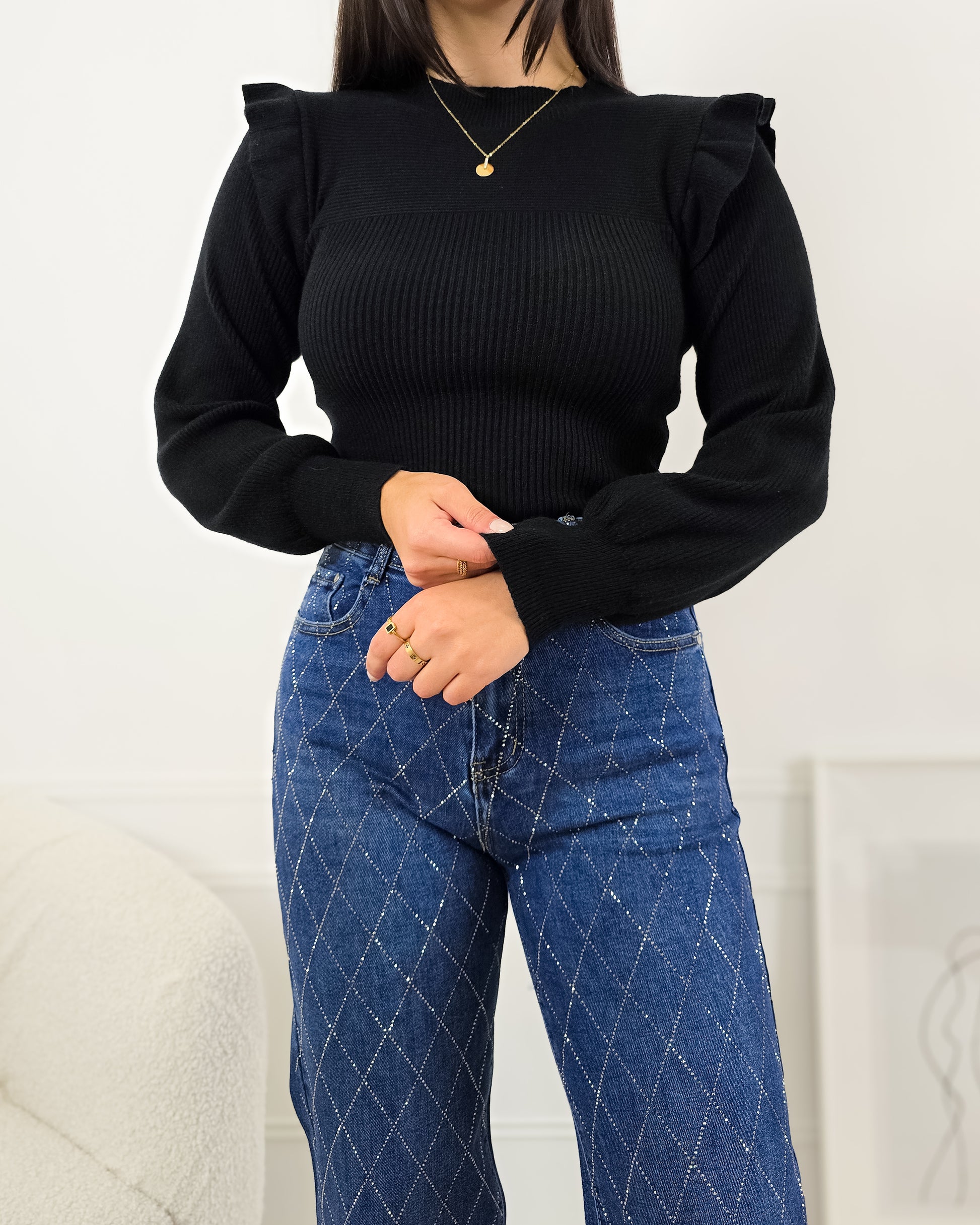 Dá um upgrade ao teu guarda-roupa com esta camisola de malha canelada – elegante, confortável e cheia de detalhes únicos!