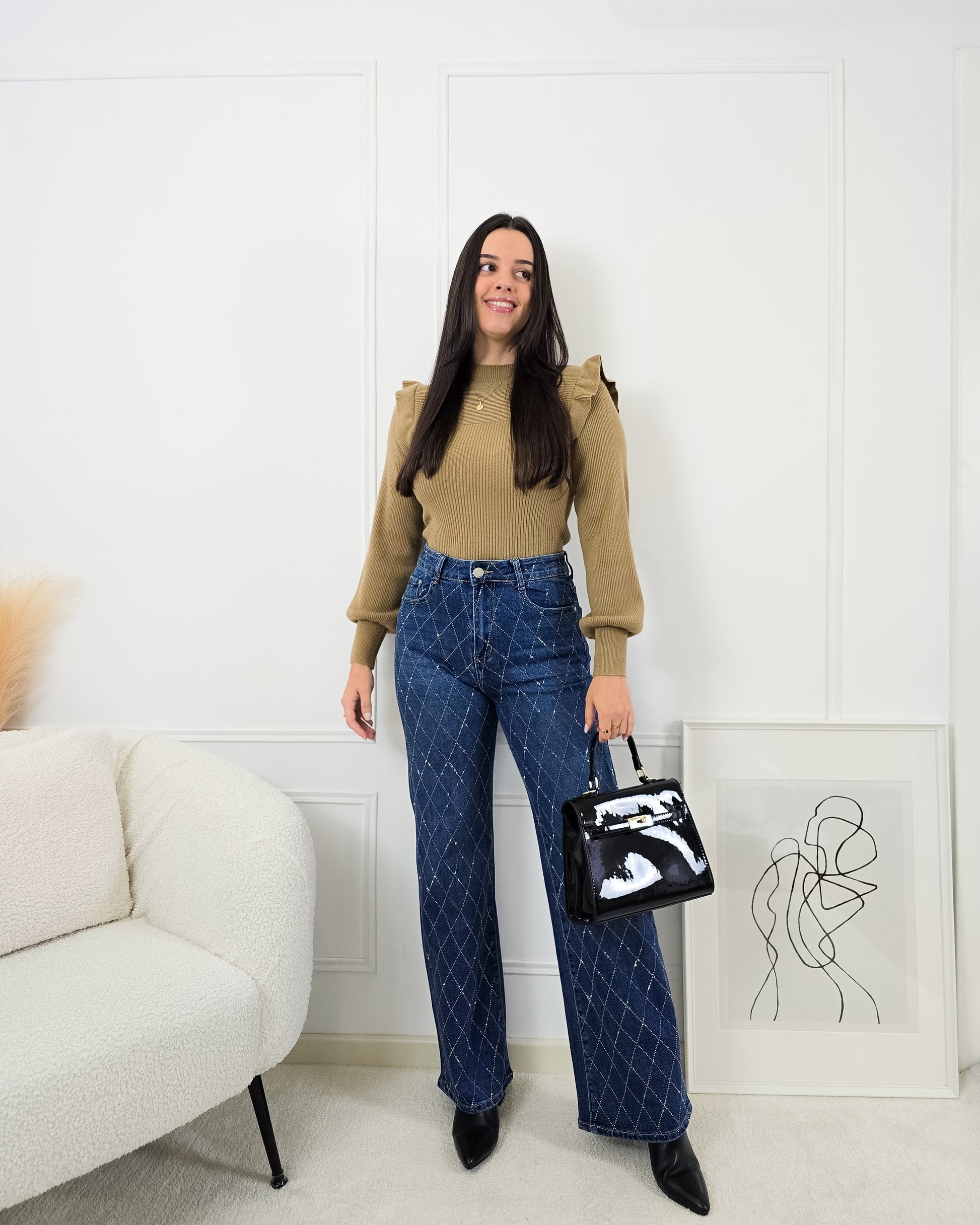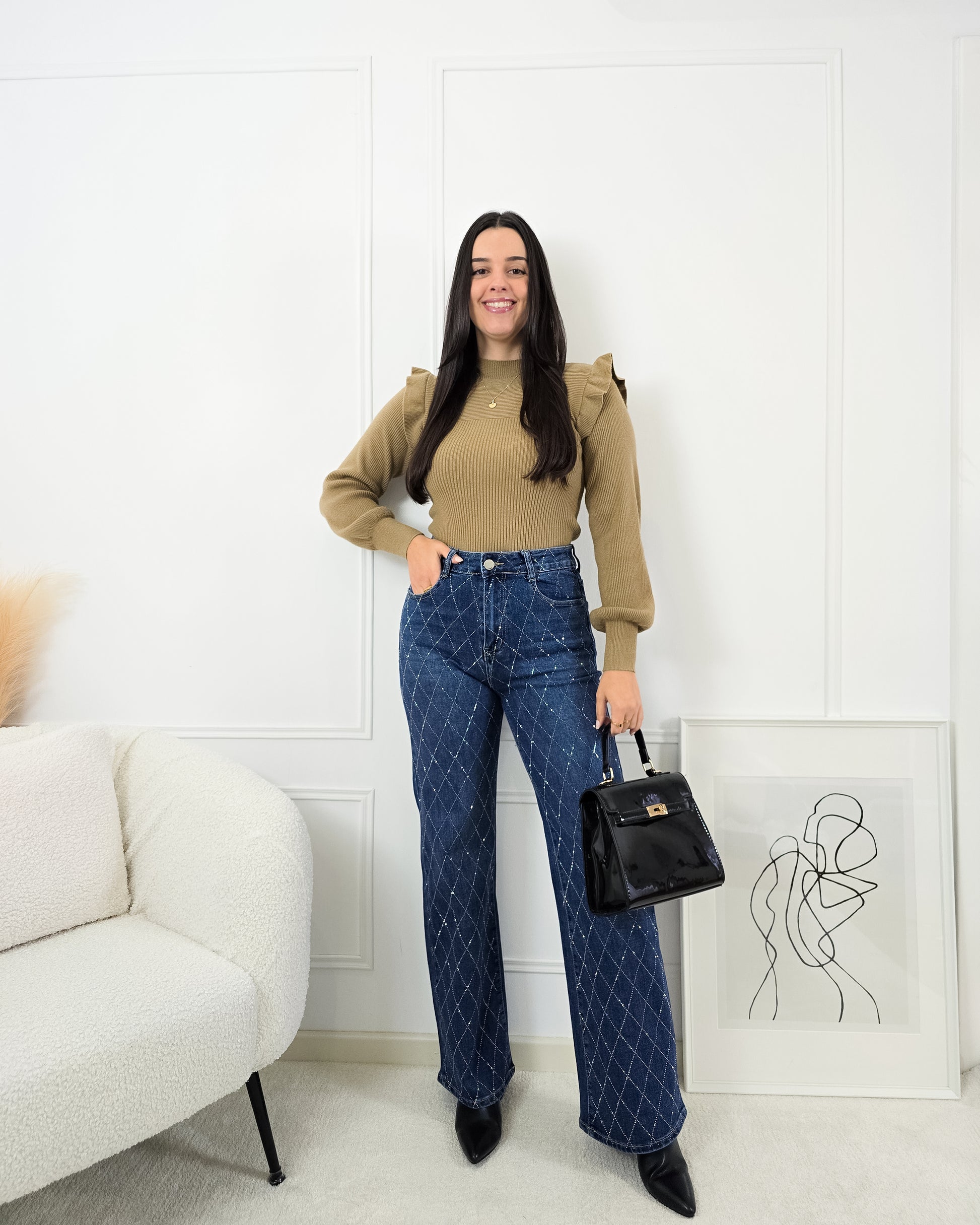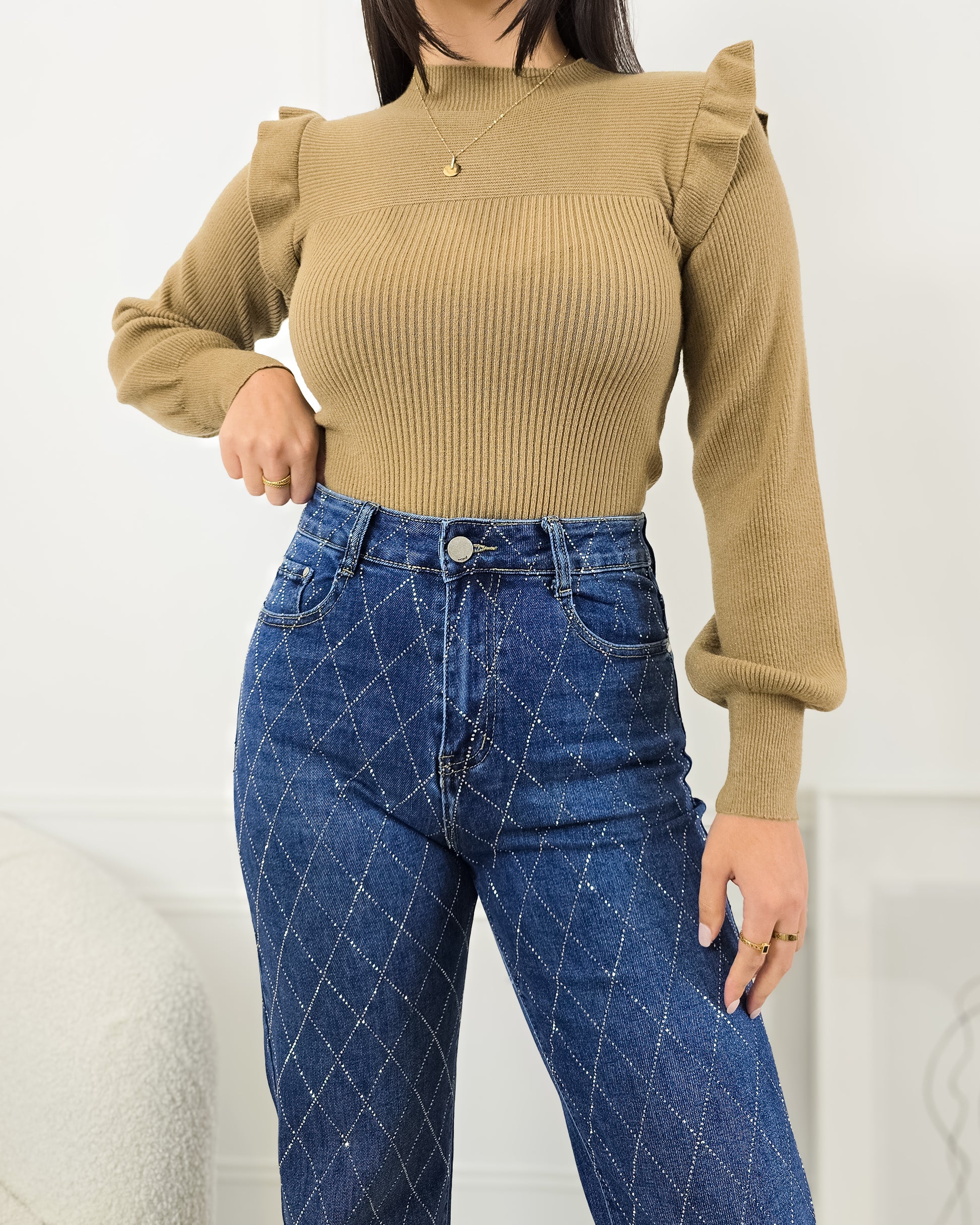 Dá um upgrade ao teu guarda-roupa com esta camisola de malha canelada – elegante, confortável e cheia de detalhes únicos!