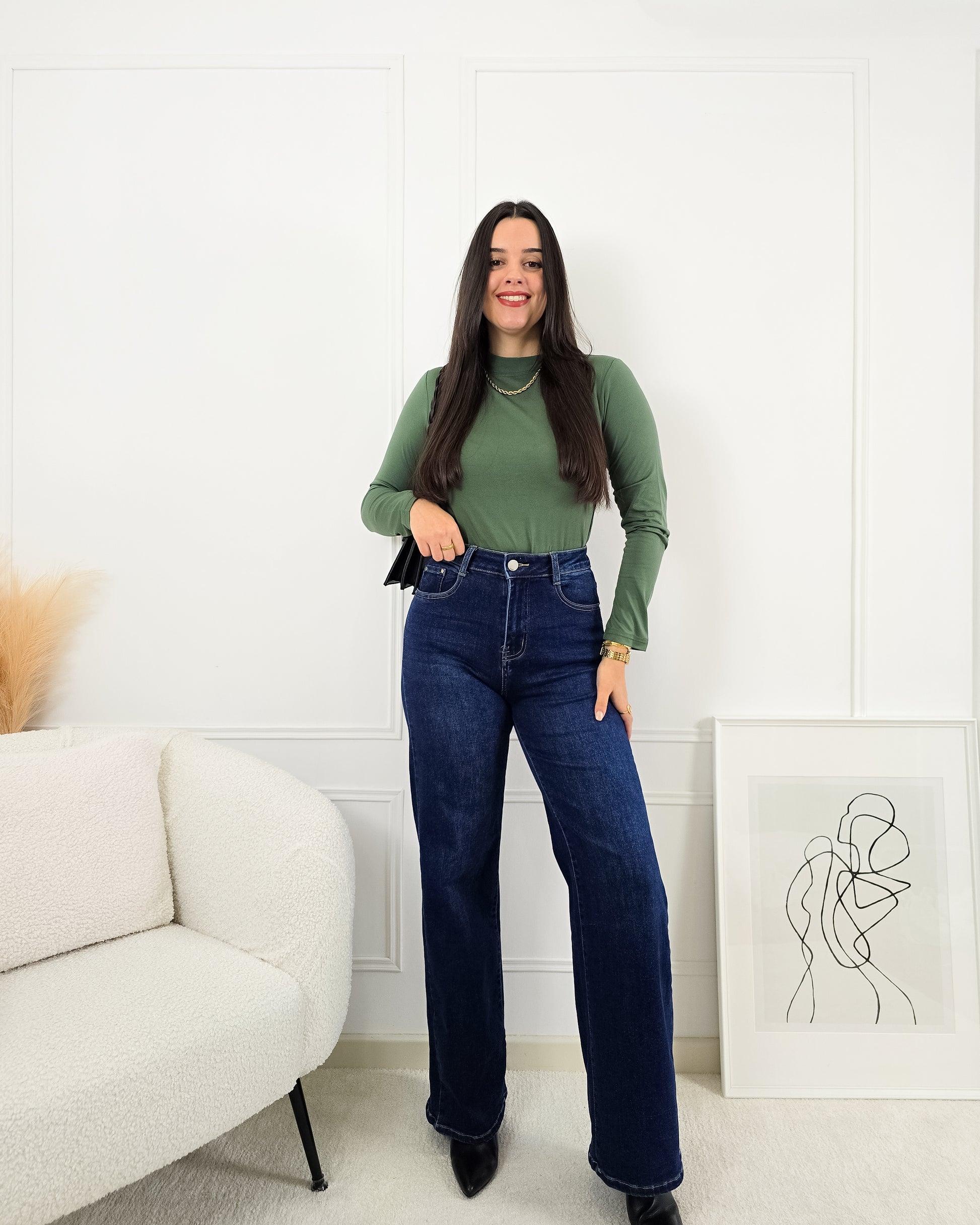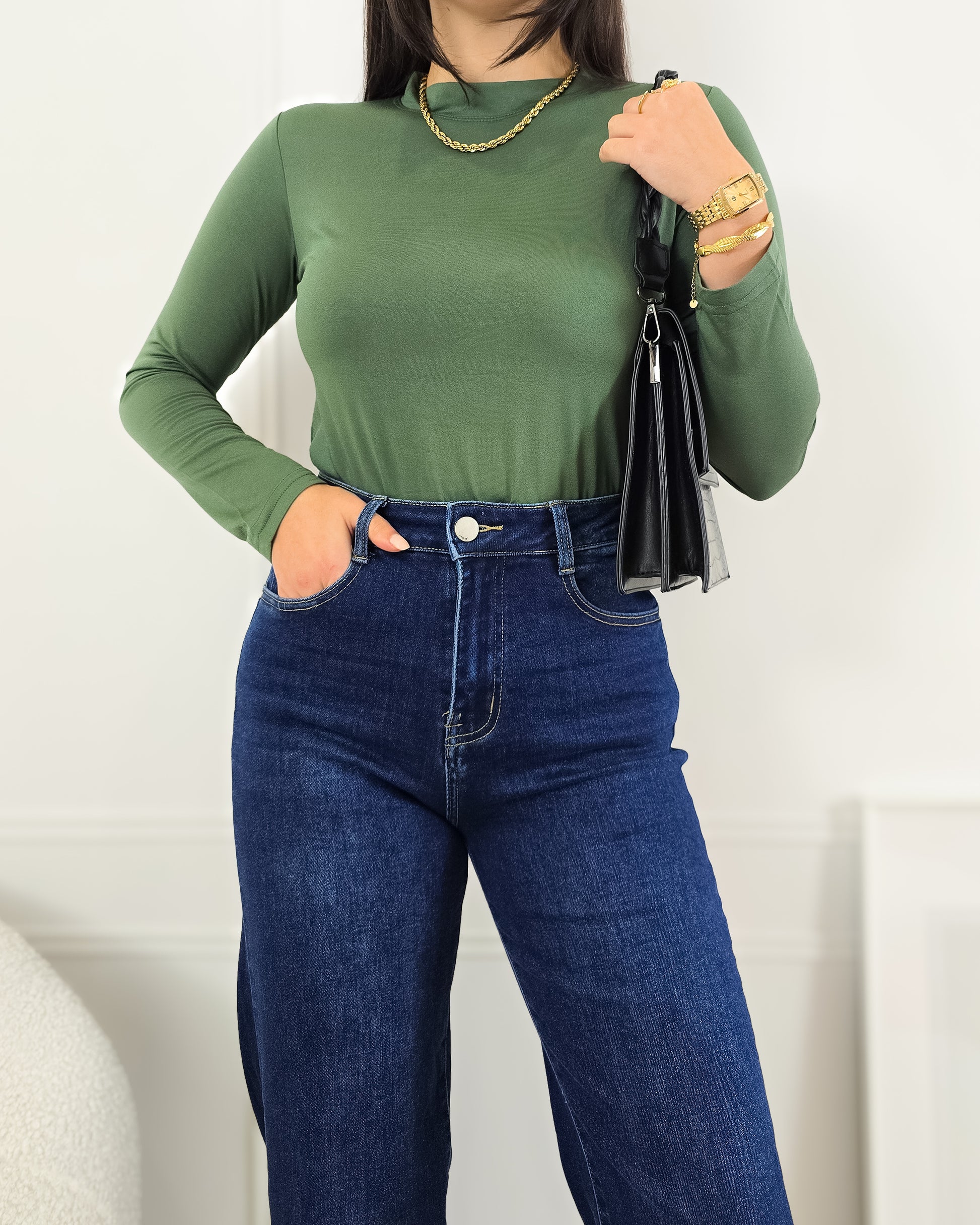 Aposta no essencial com esta camisola básica em licra cardada por dentro – o segredo para te manteres sempre quentinha e confortável!