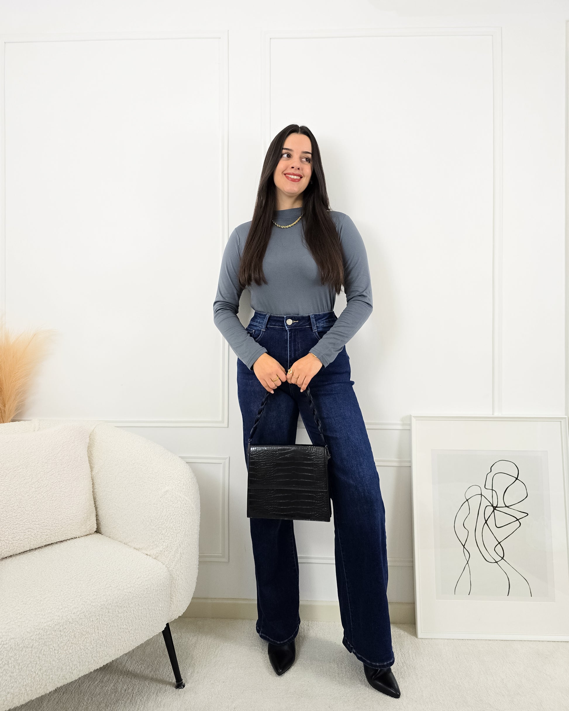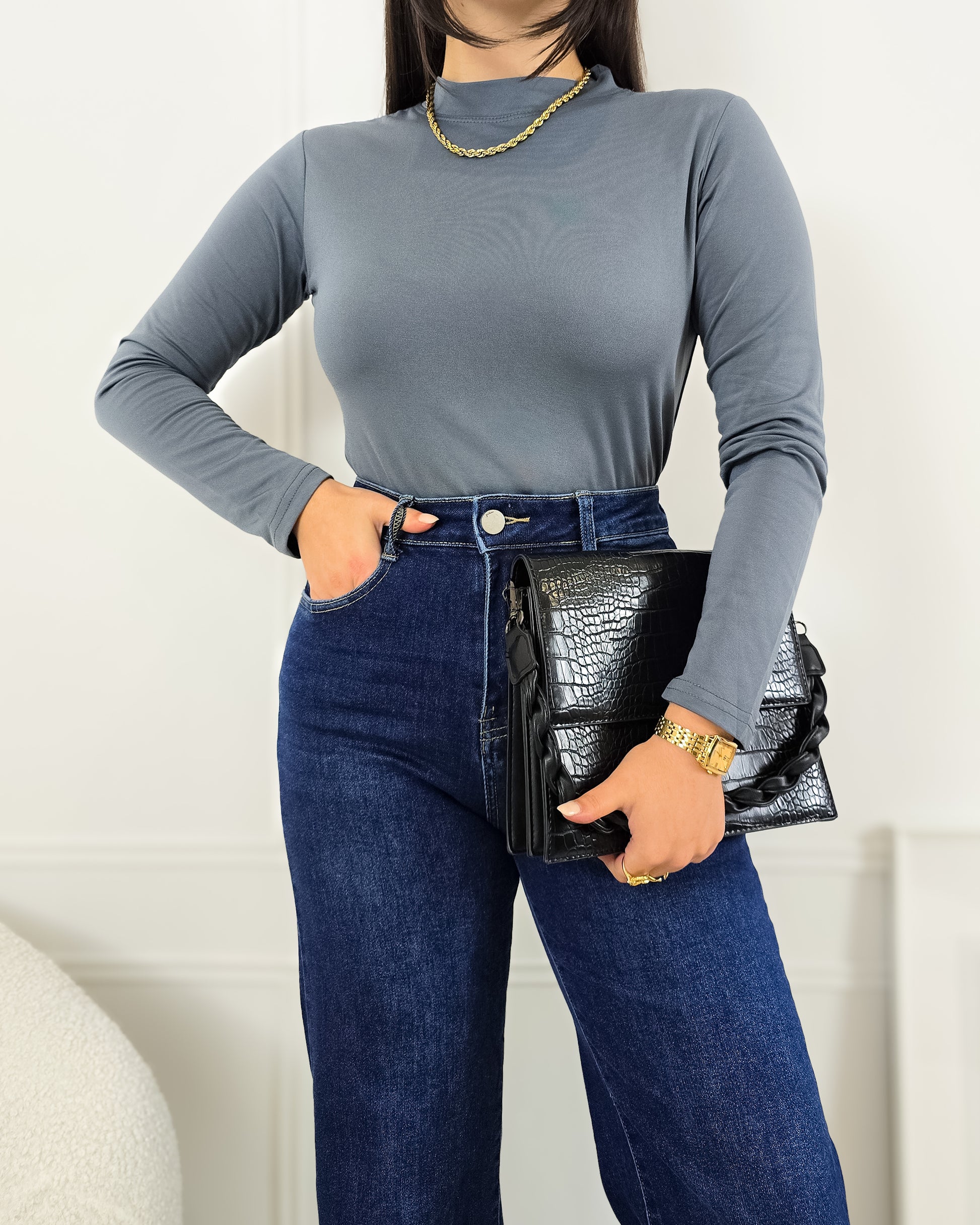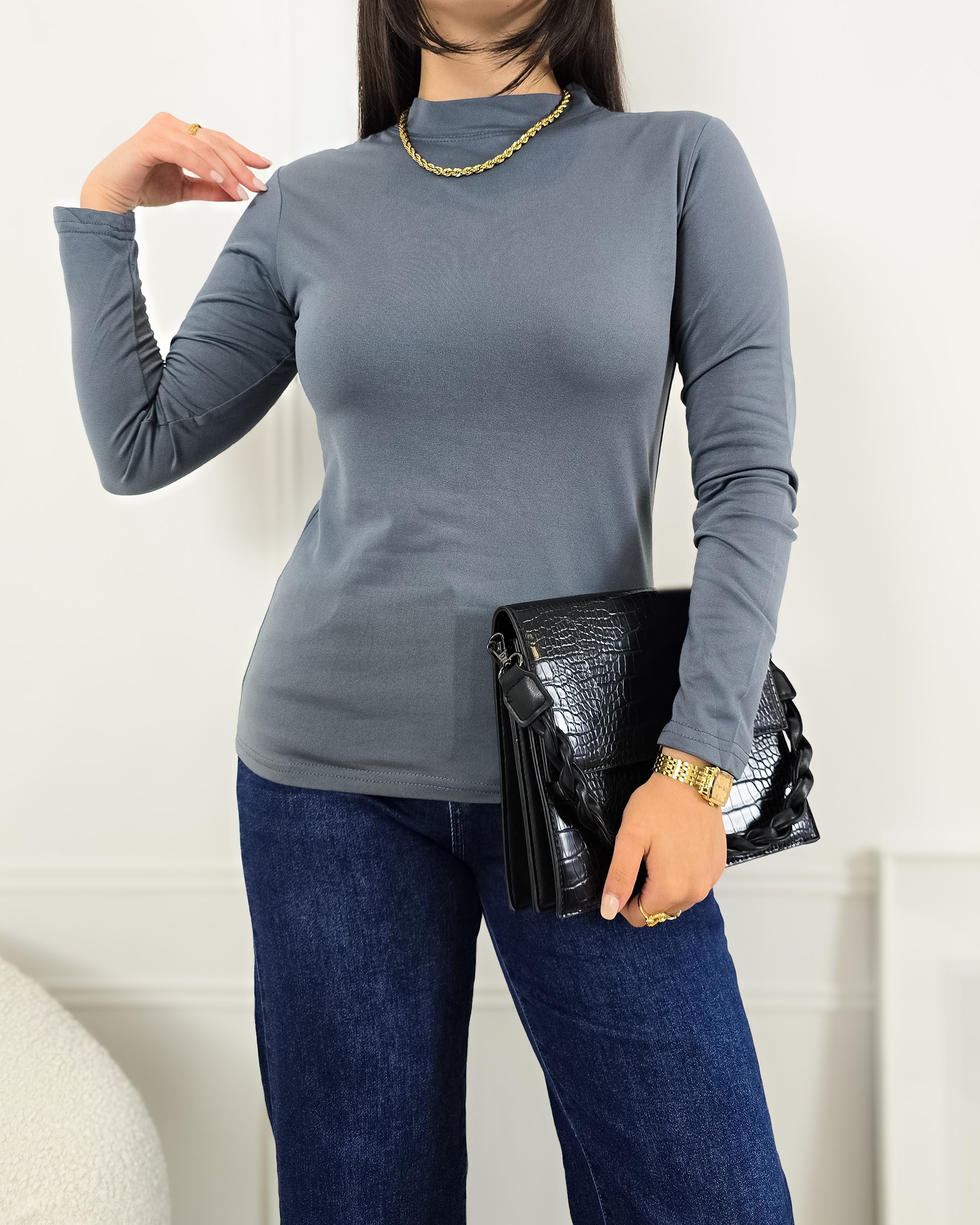 Aposta no essencial com esta camisola básica em licra cardada por dentro – o segredo para te manteres sempre quentinha e confortável!