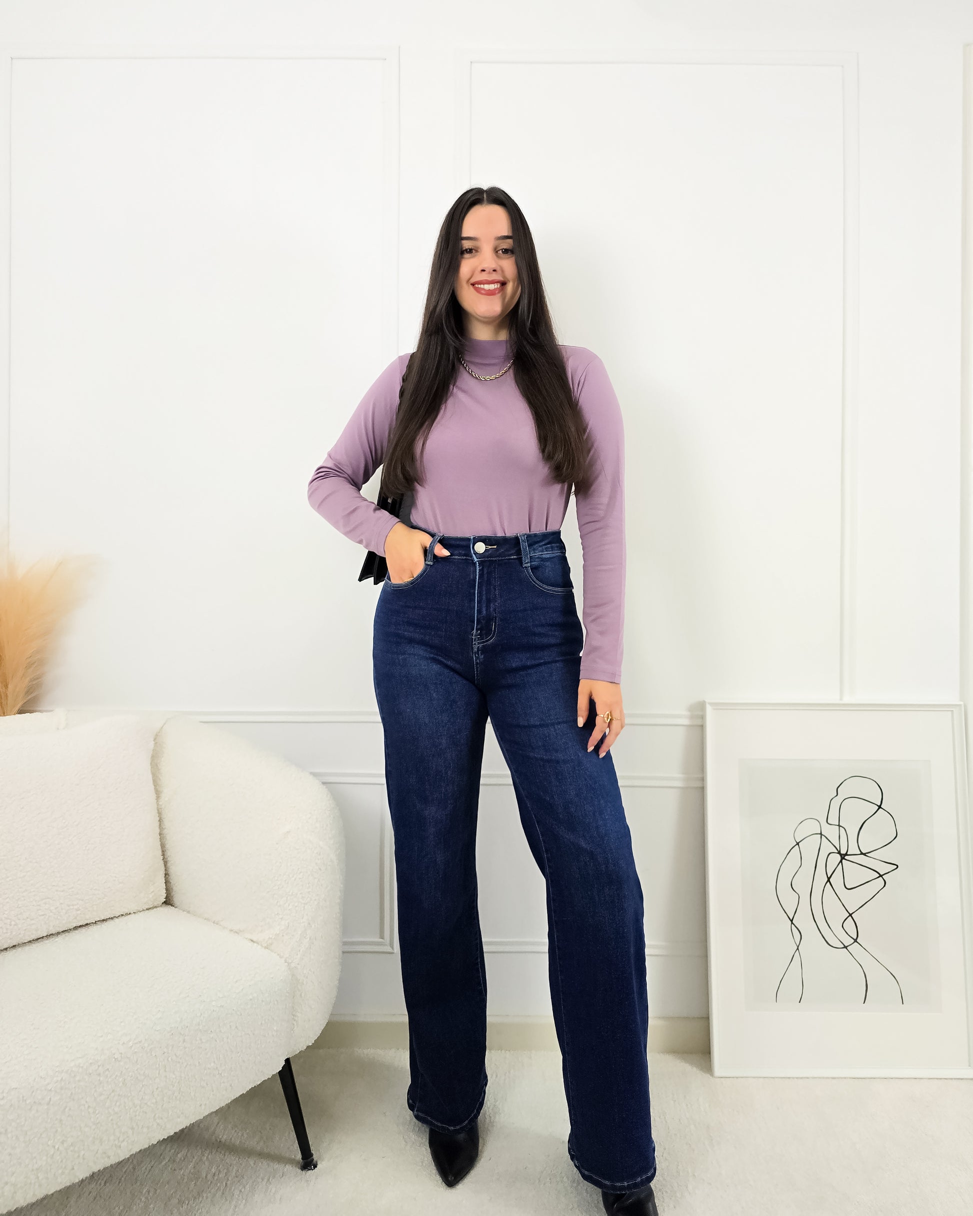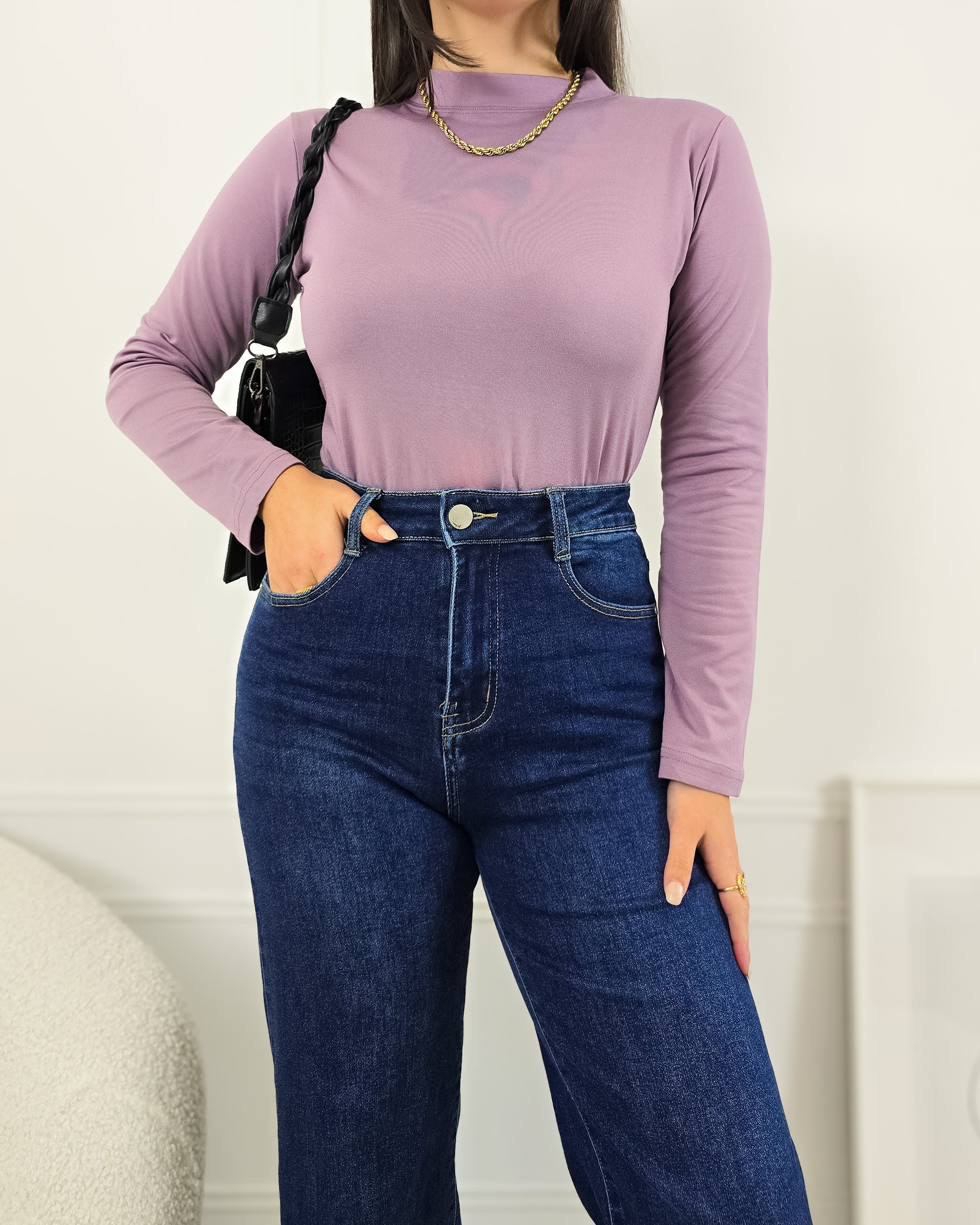 Aposta no essencial com esta camisola básica em licra cardada por dentro – o segredo para te manteres sempre quentinha e confortável!