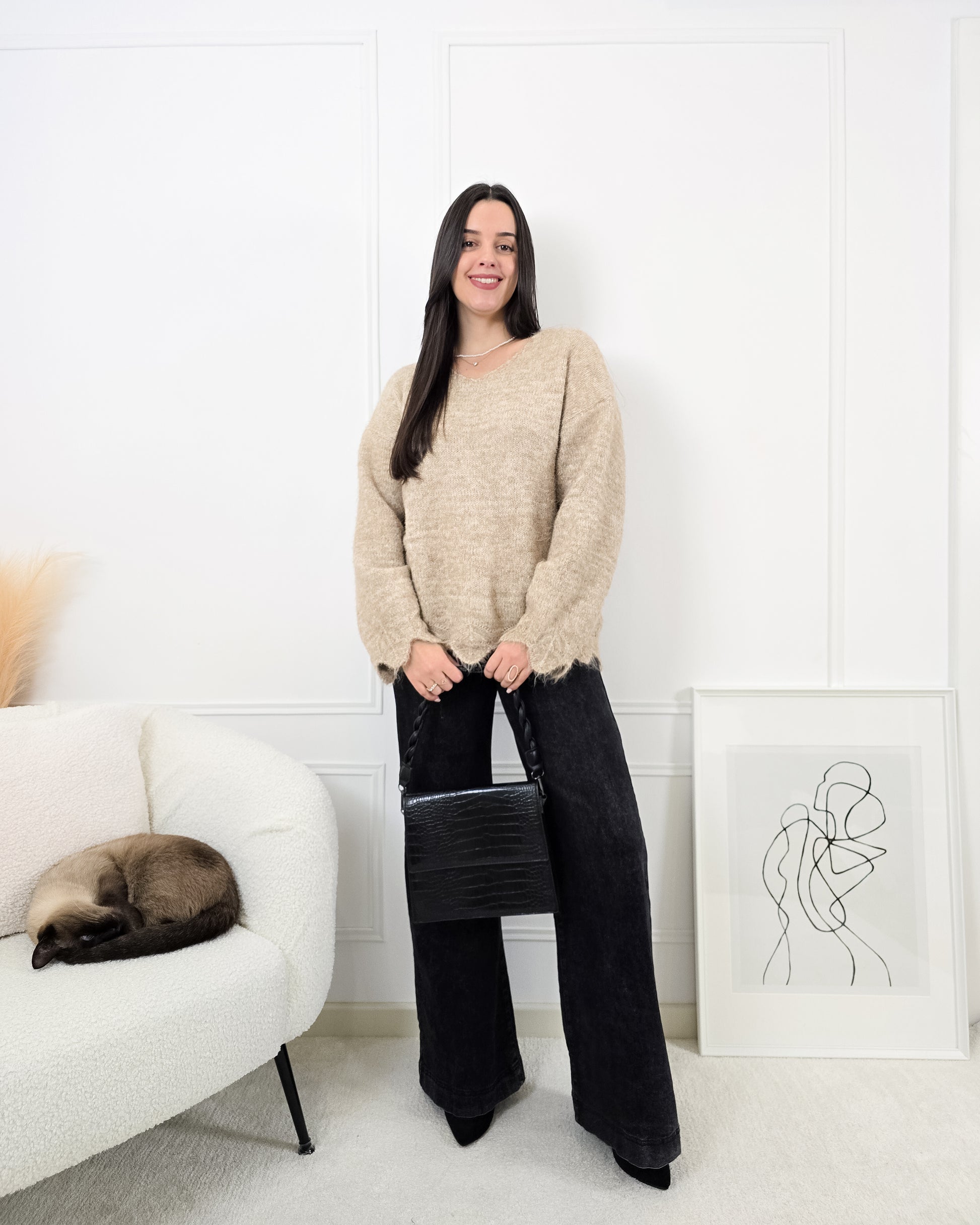 Aposta no conforto e na suavidade com esta camisola de malha, perfeita para dar um toque leve e feminino aos teus looks!
