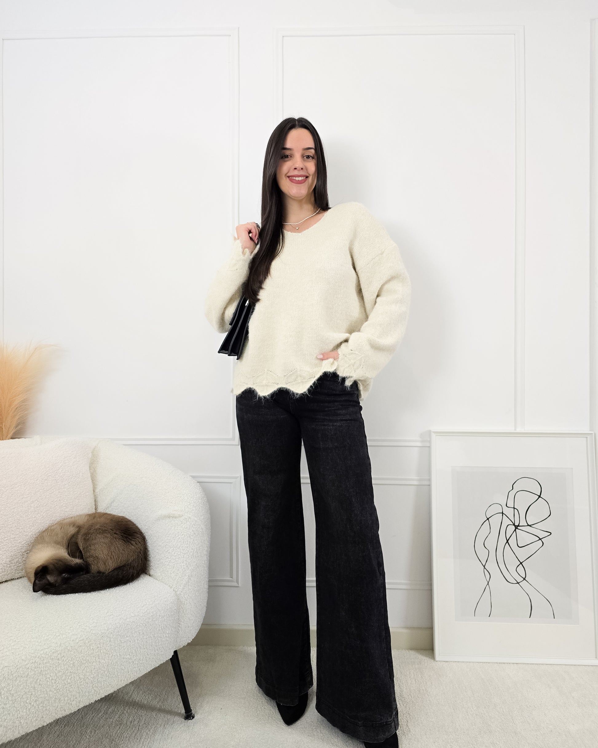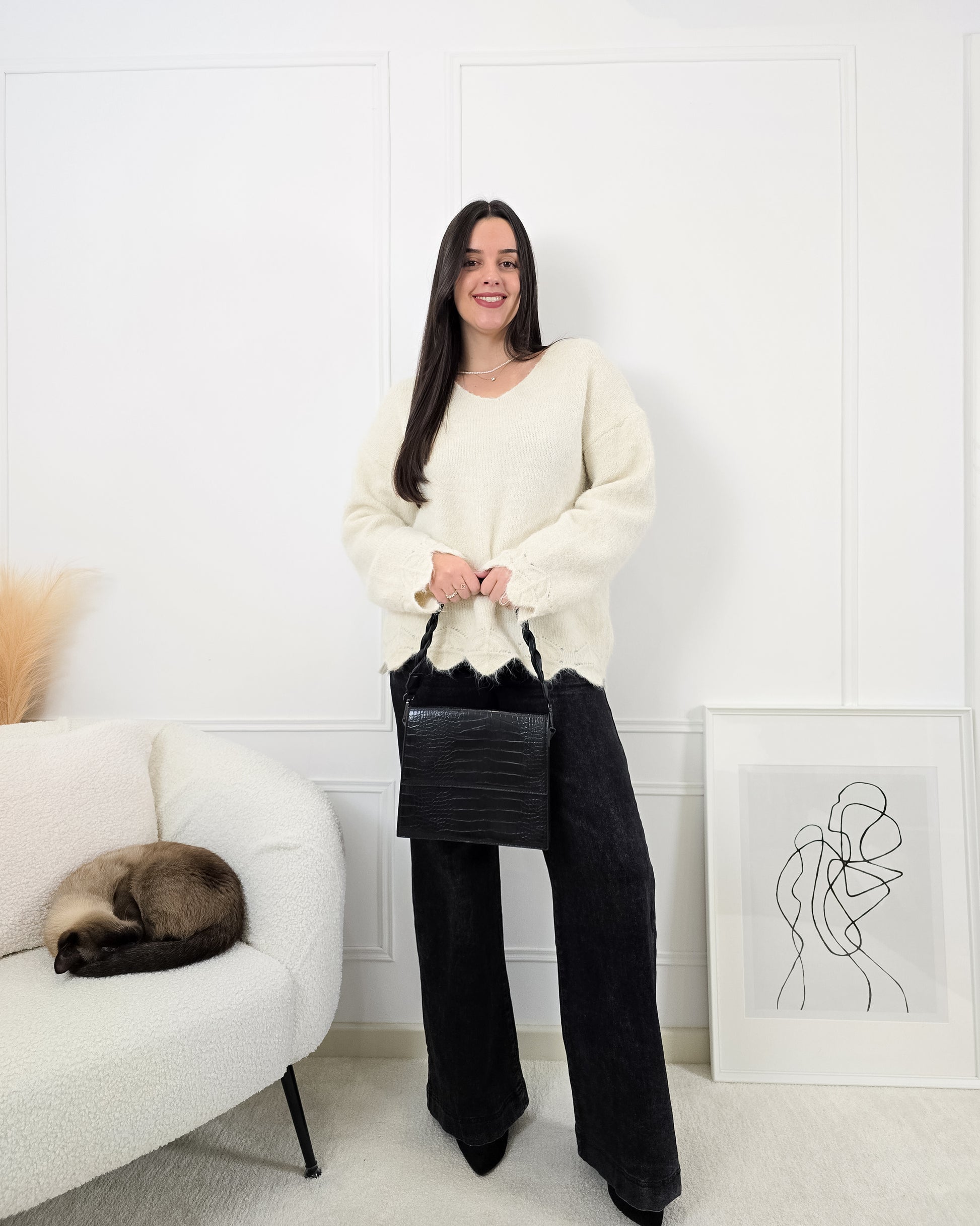 Aposta no conforto e na suavidade com esta camisola de malha, perfeita para dar um toque leve e feminino aos teus looks!