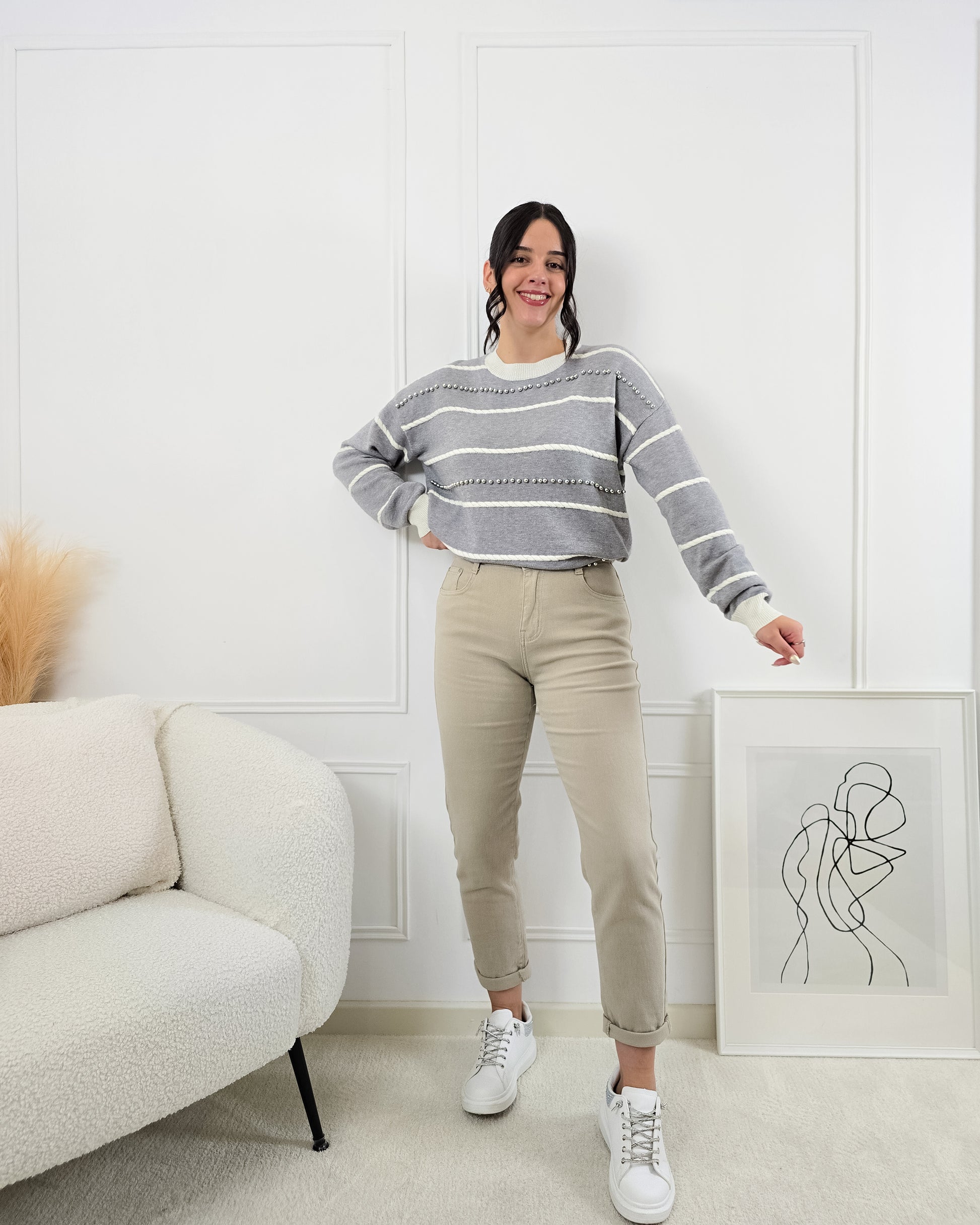 Adiciona um toque moderno e elegante ao teu guarda-roupa com esta camisola de malha! Perfeita para os dias mais frescos, combina conforto e estilo.
