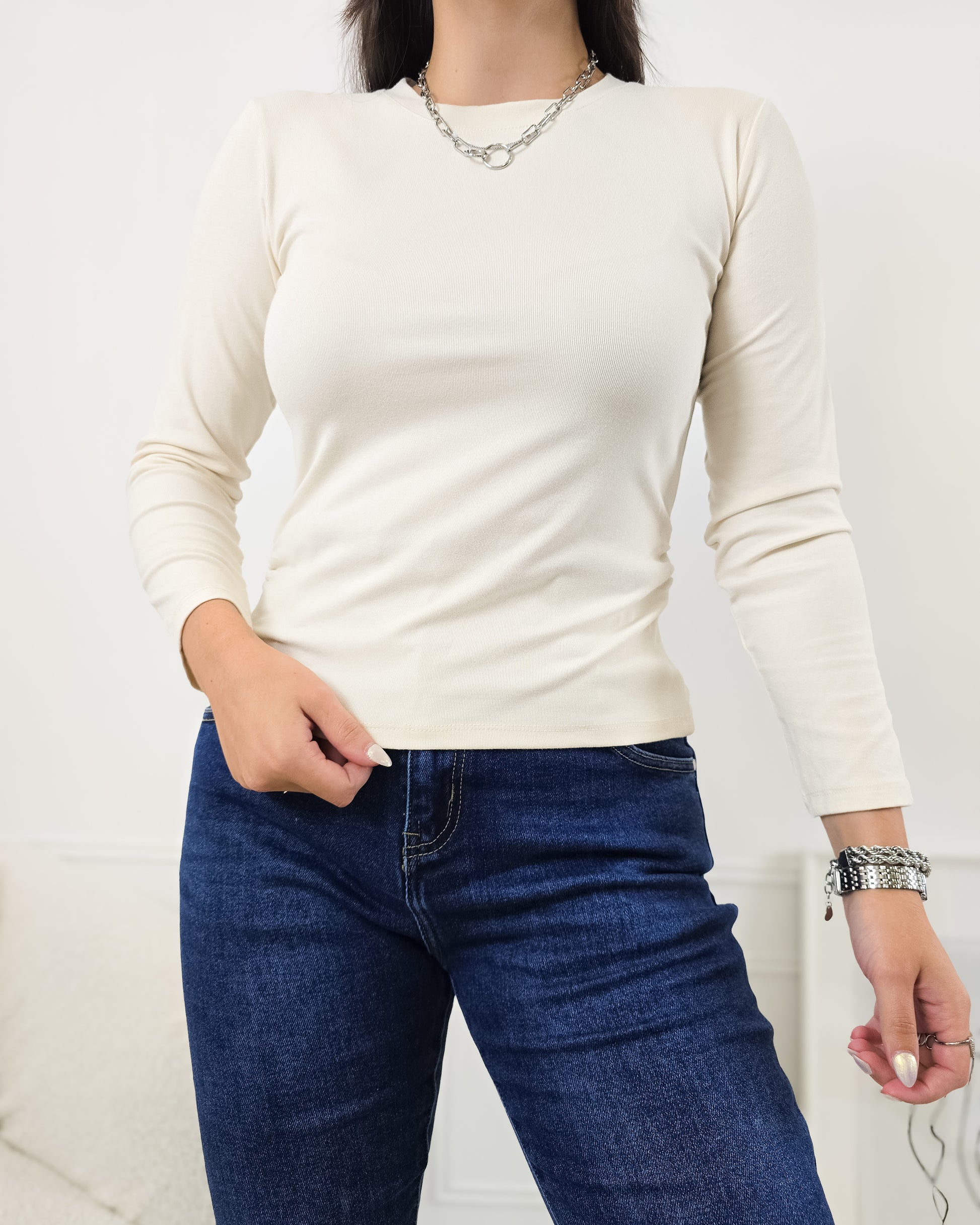 Adiciona um toque clássico e confortável ao teu guarda-roupa com esta camisola de manga longa! Perfeita para os dias mais frescos, combina estilo e versatilidade.