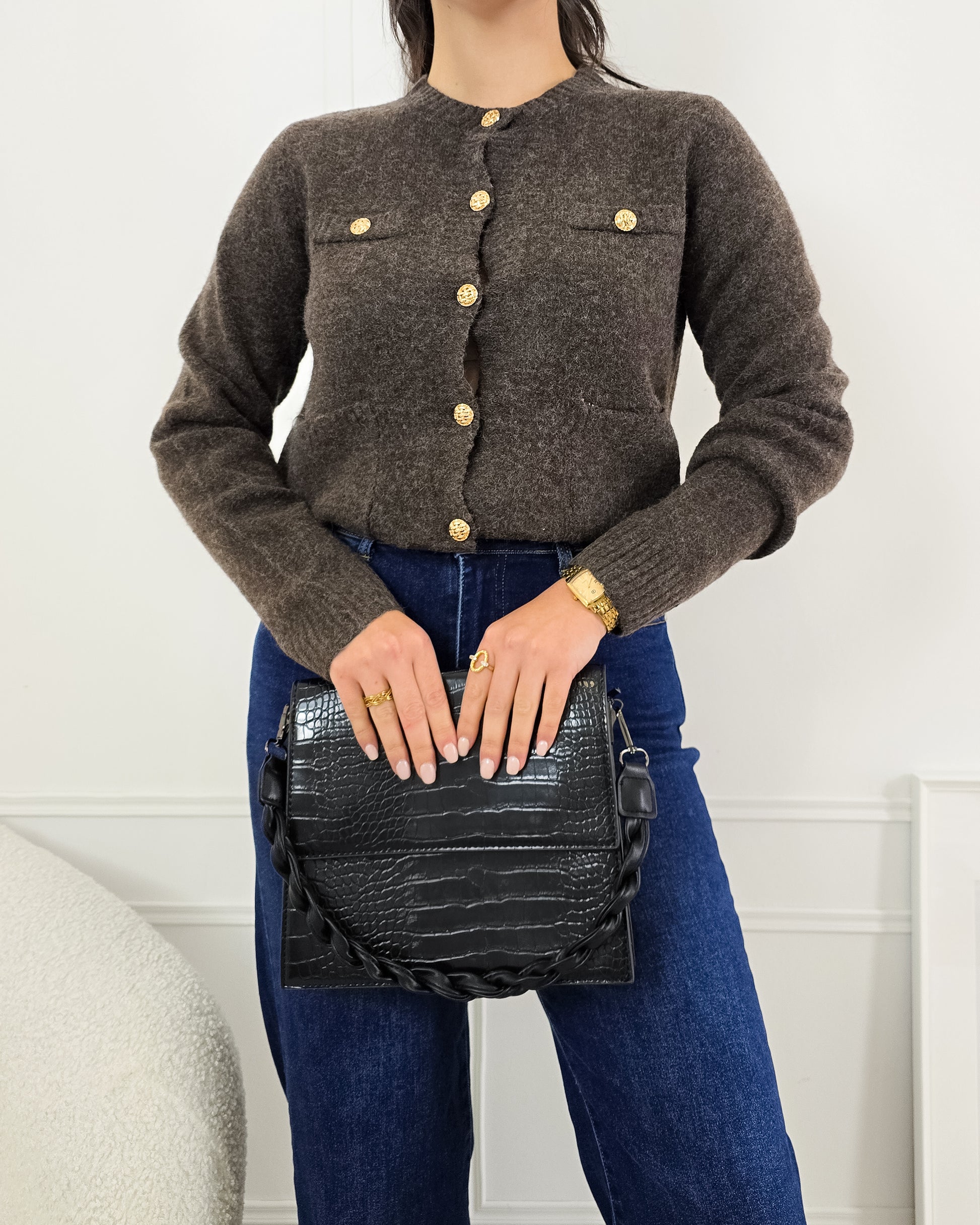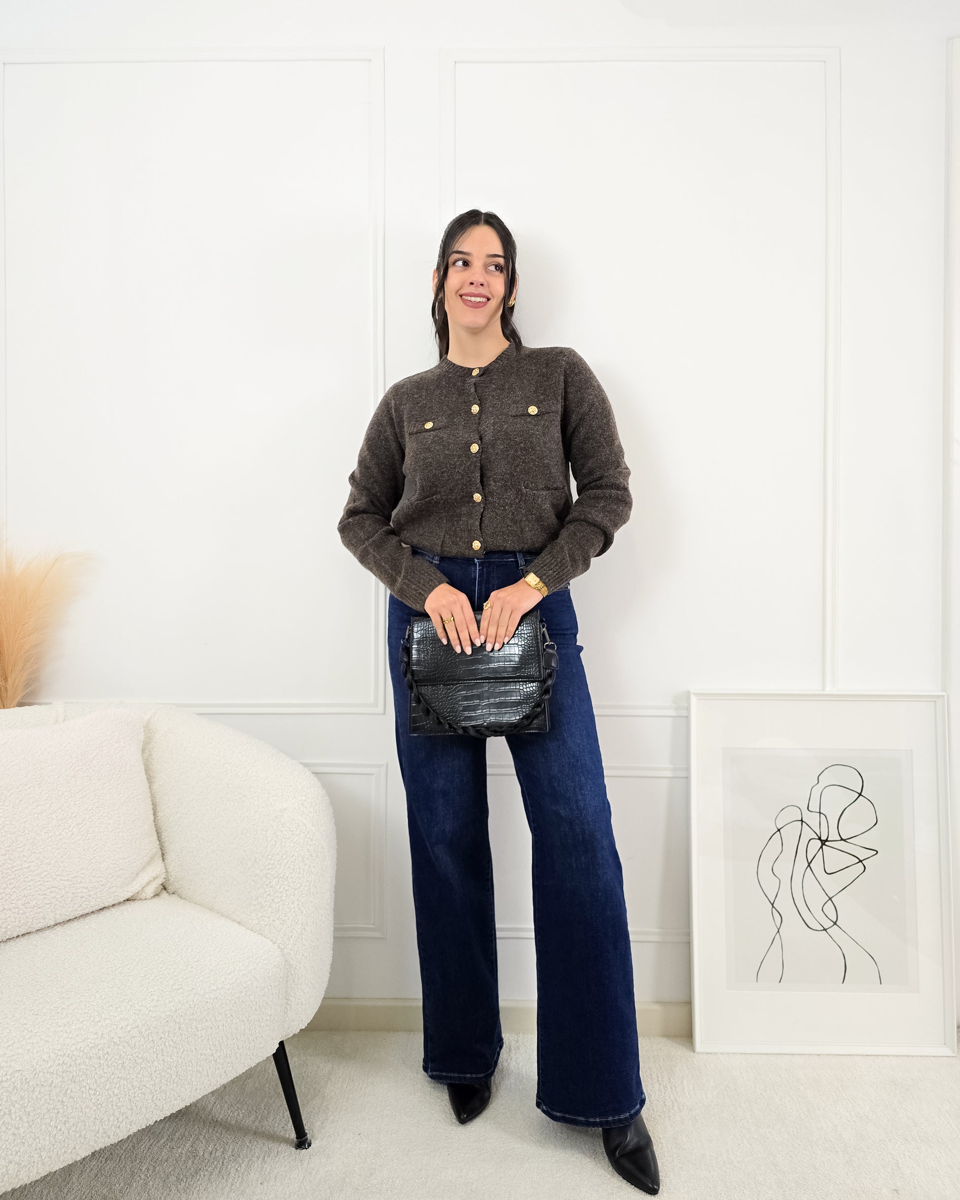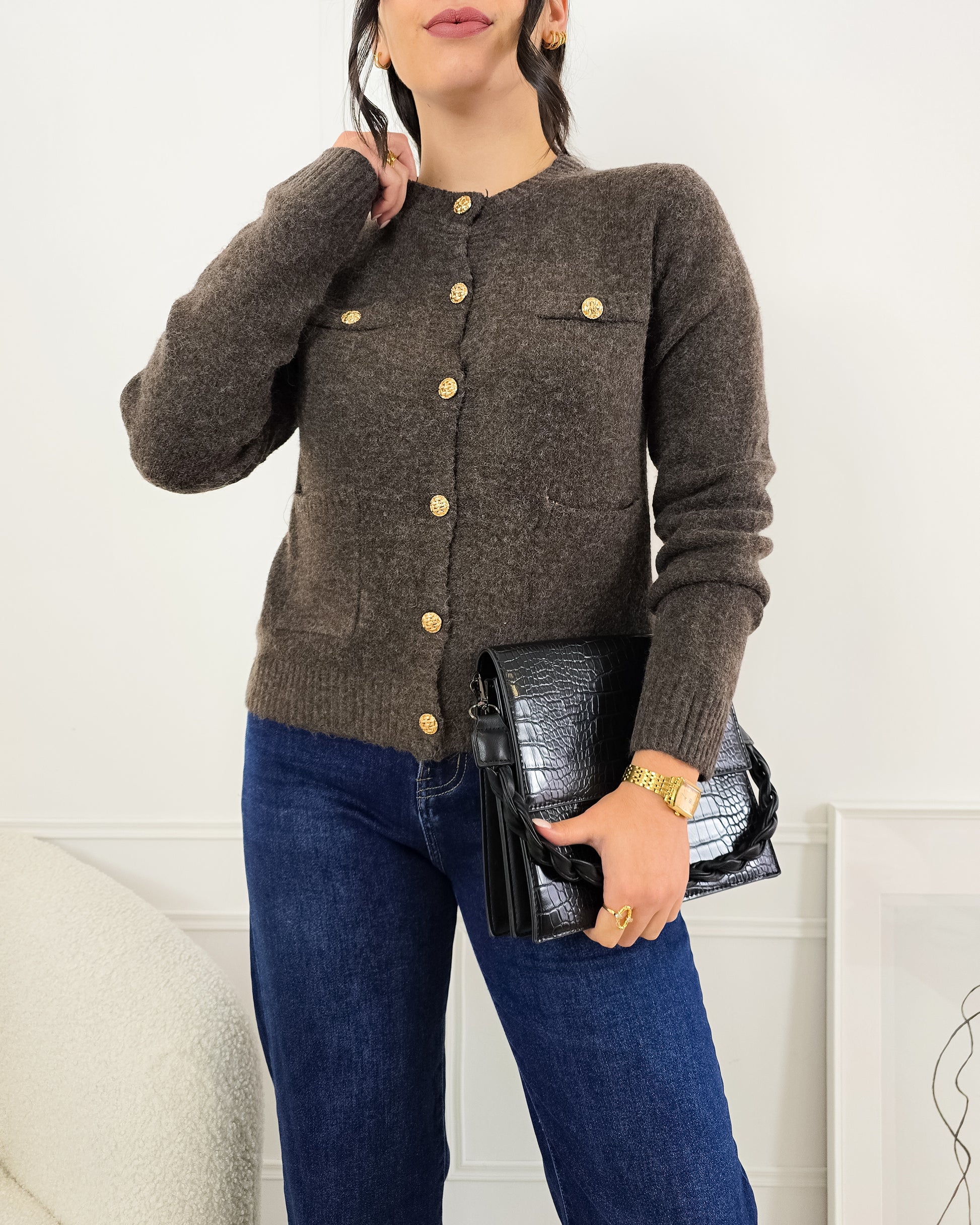 Completa o teu look com este casaco de malha, cheio de charme e perfeito para qualquer ocasião!