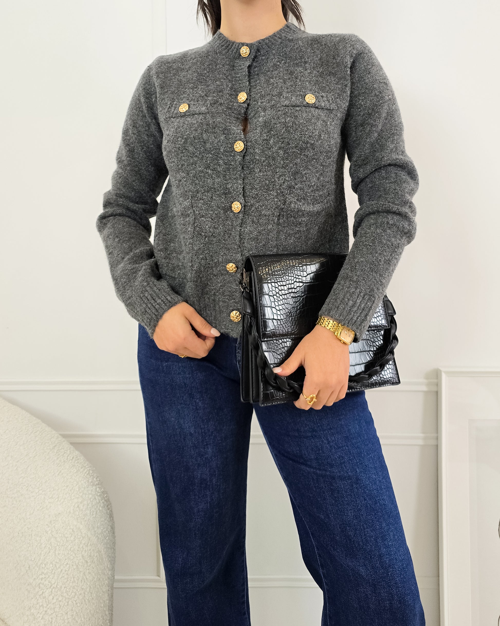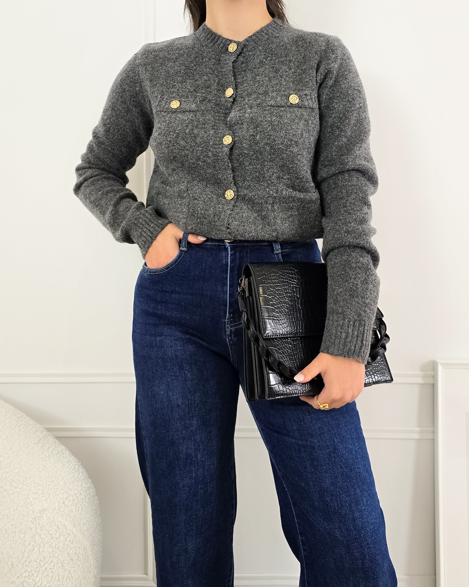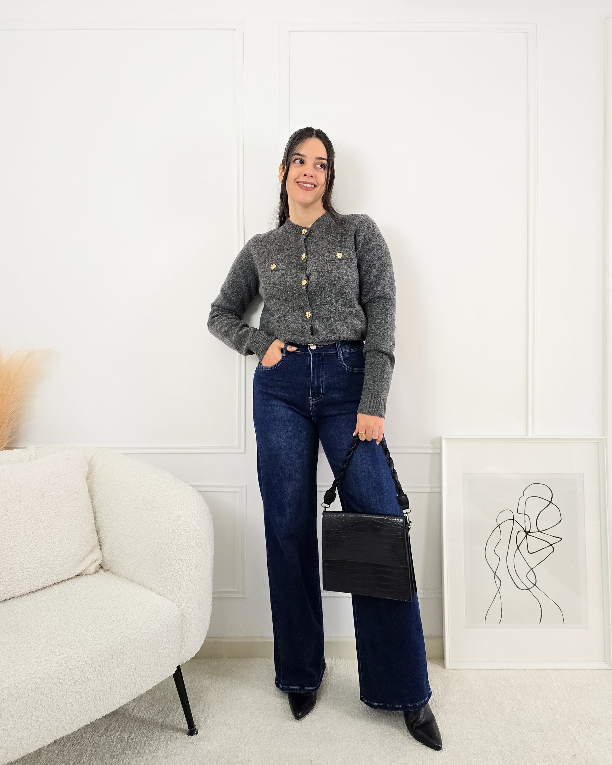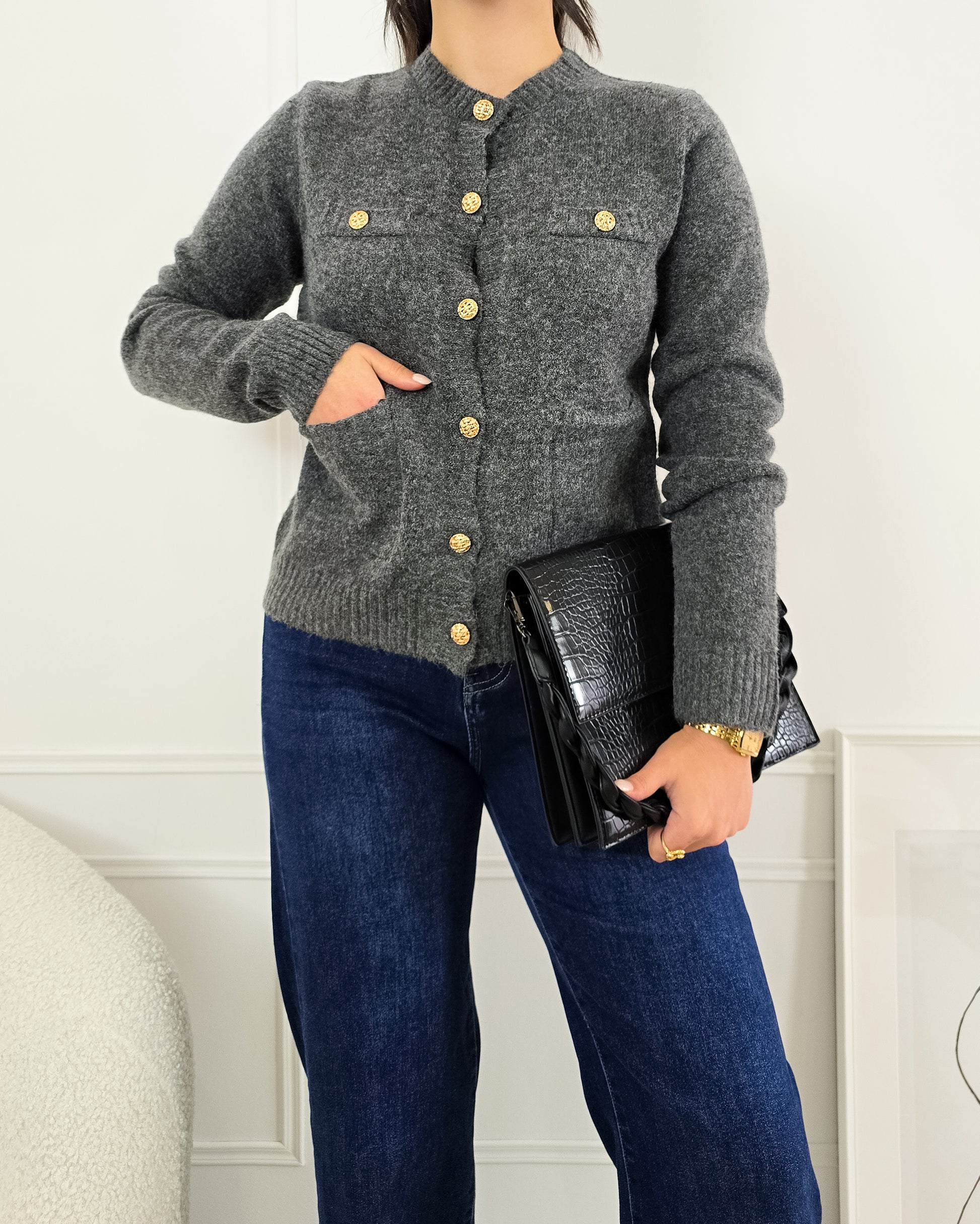 Completa o teu look com este casaco de malha, cheio de charme e perfeito para qualquer ocasião!