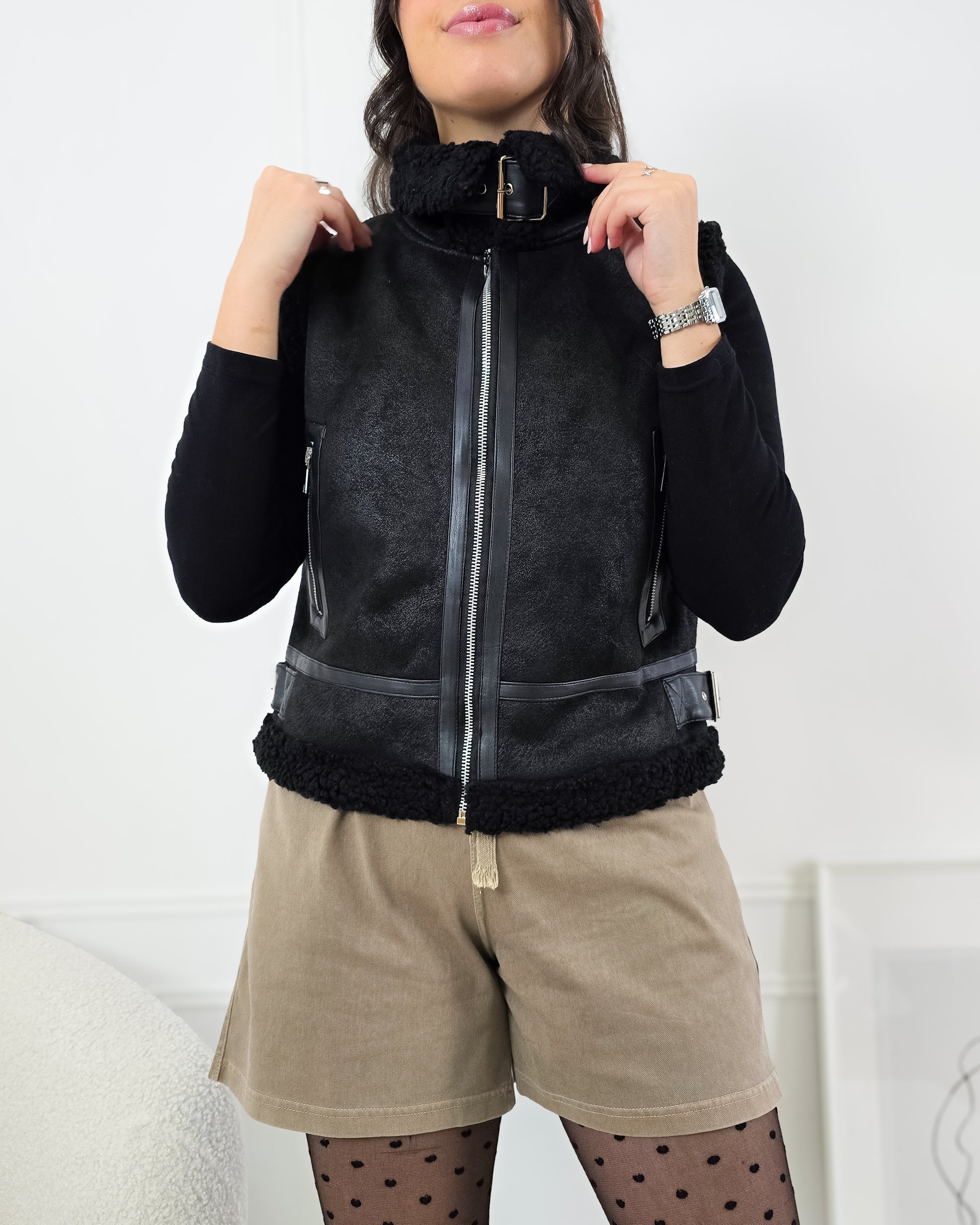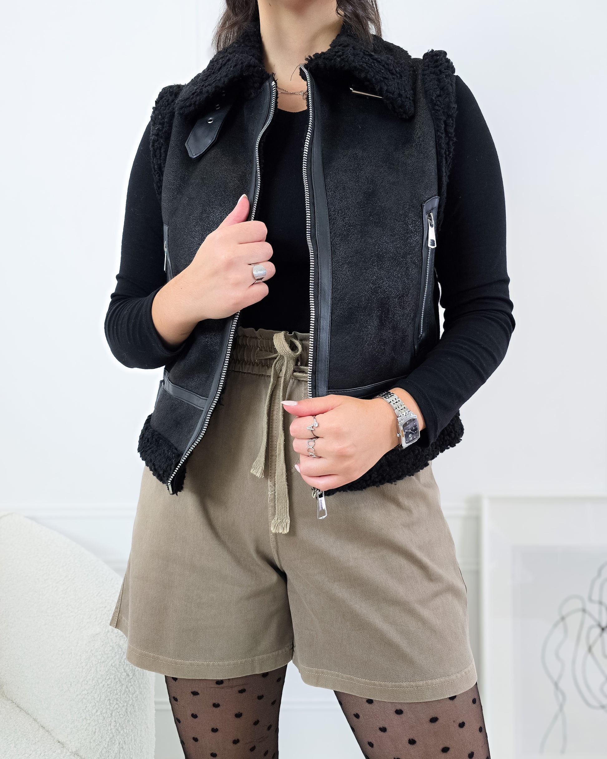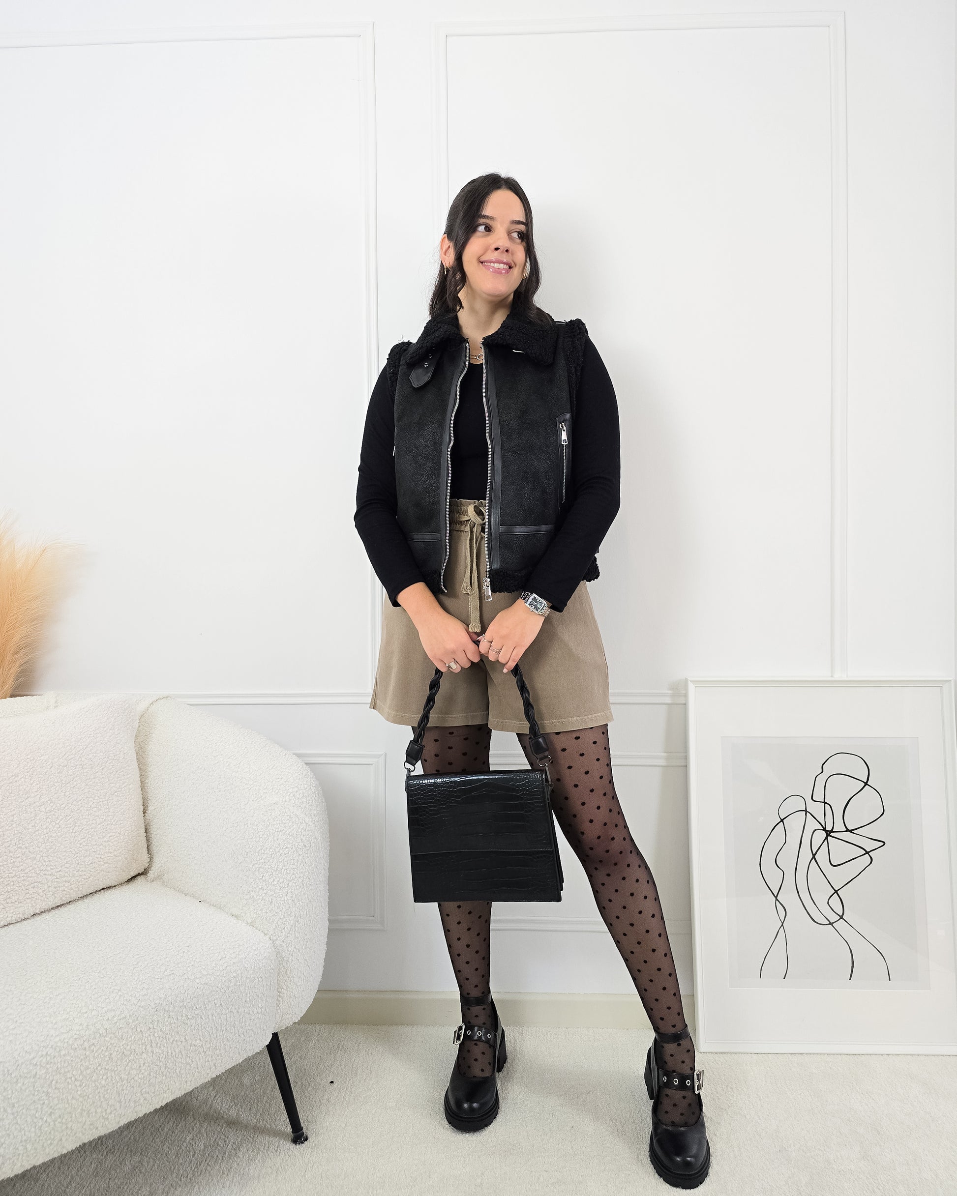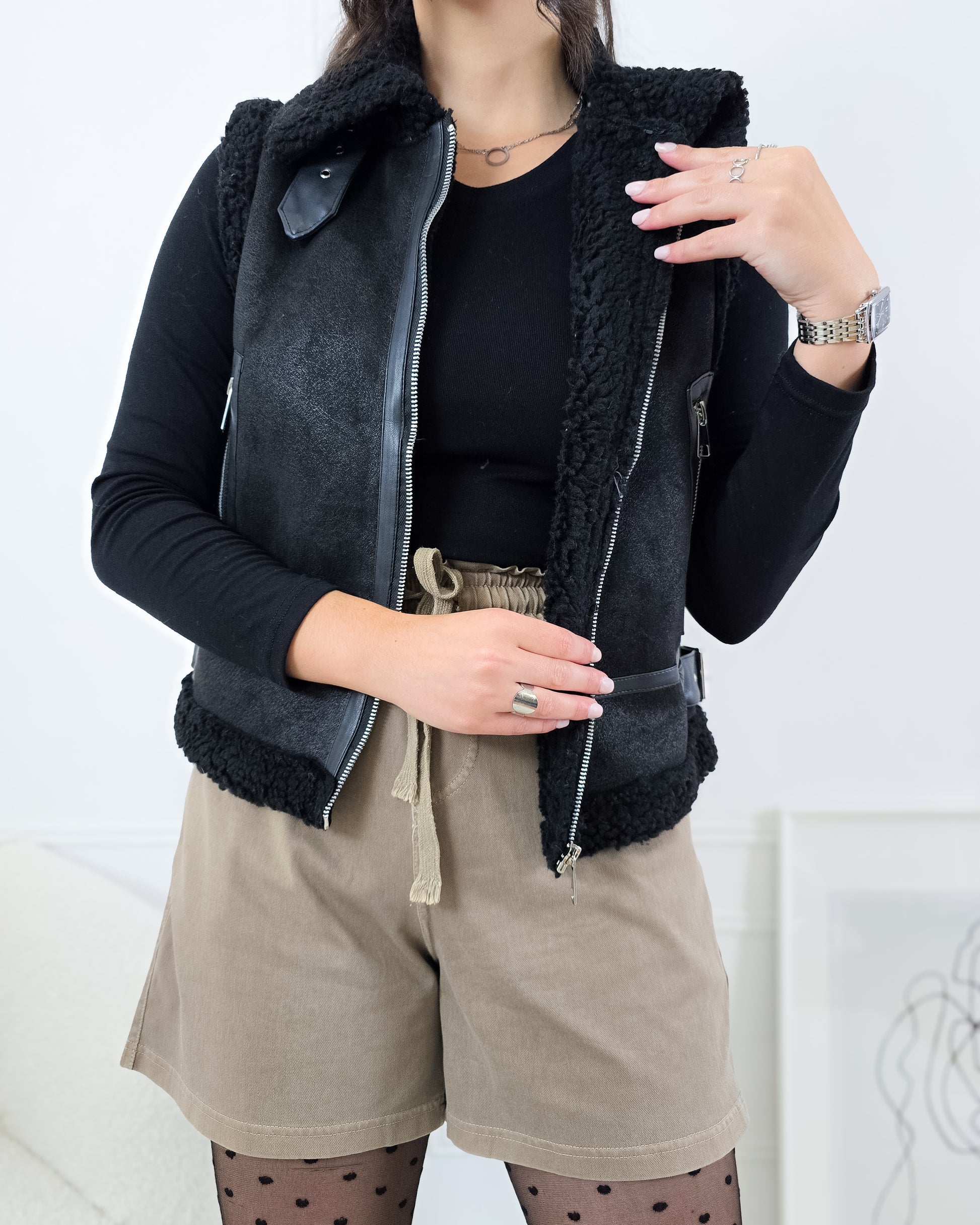 Aquece os teus looks de outono e inverno com este colete super estiloso, forrado com pelo macio por dentro!