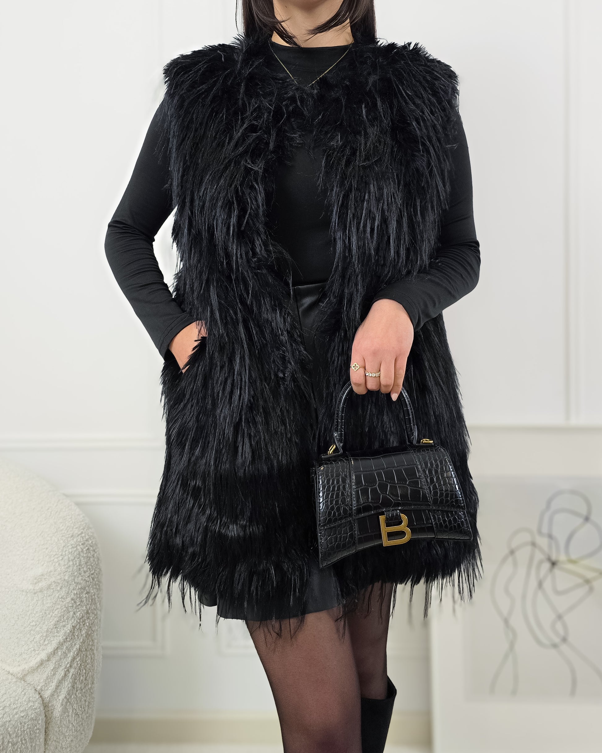 Dá um toque de glamour e aconchego aos teus looks com este colete de pelo – perfeito para criar visuais cheios de personalidade e conforto!