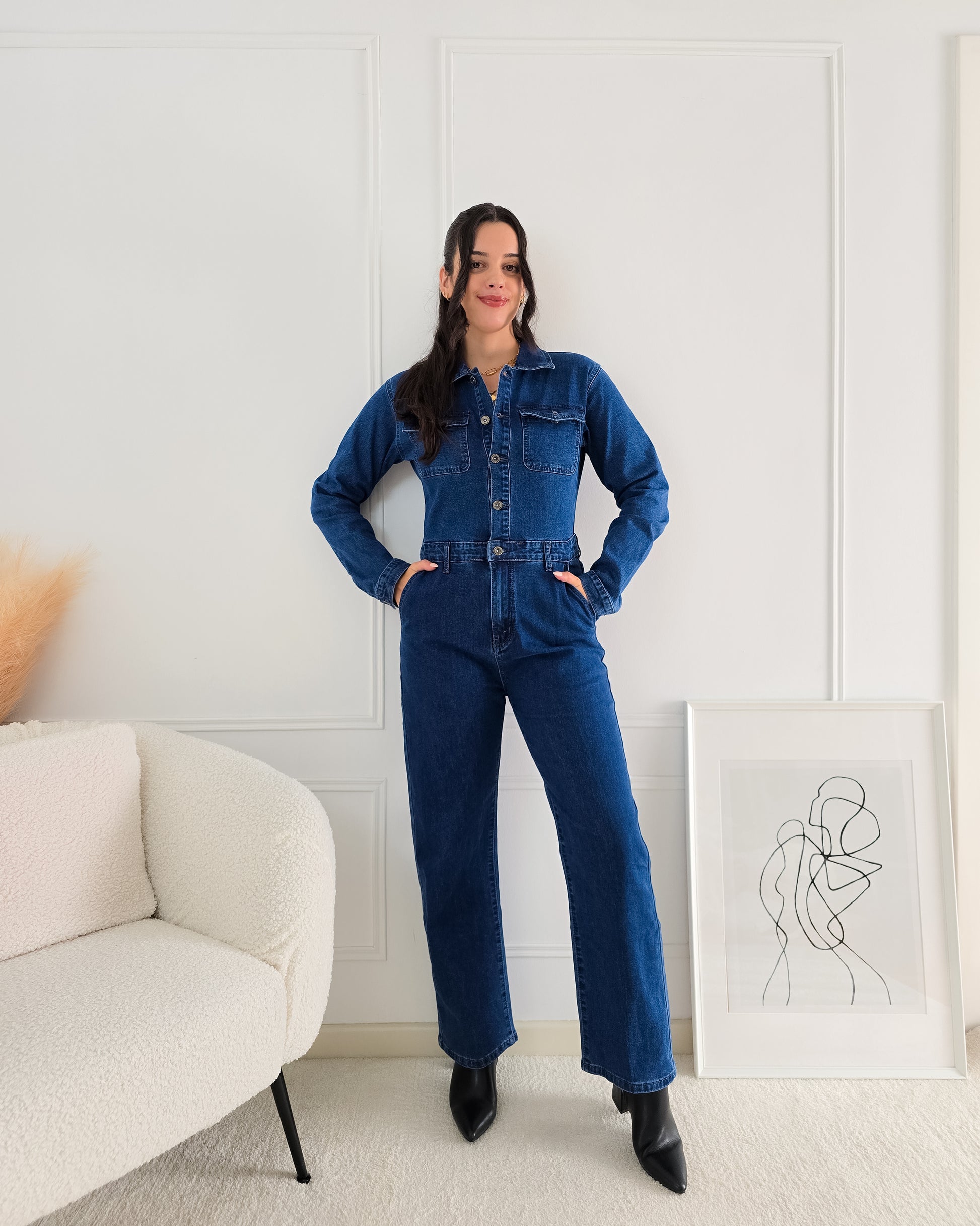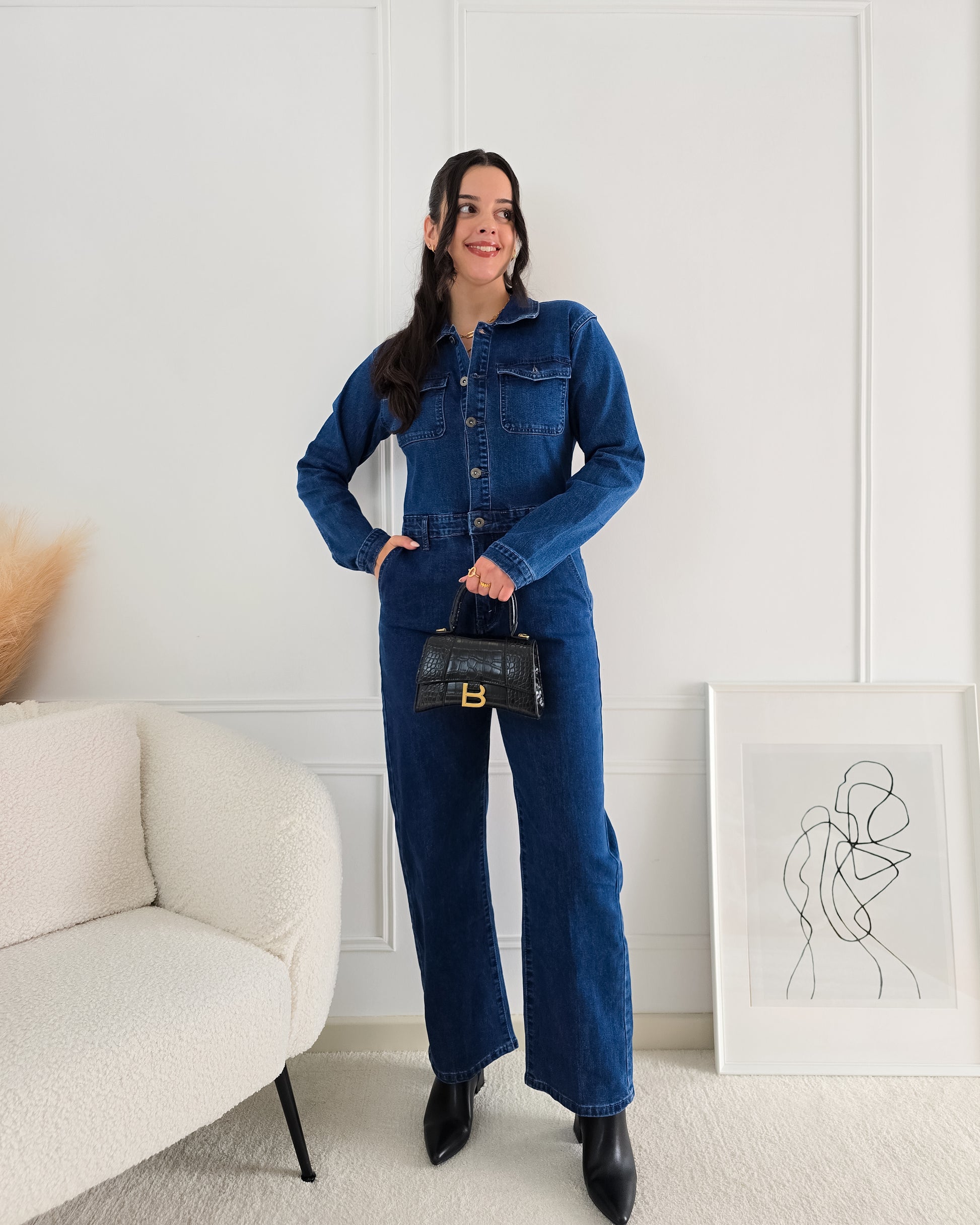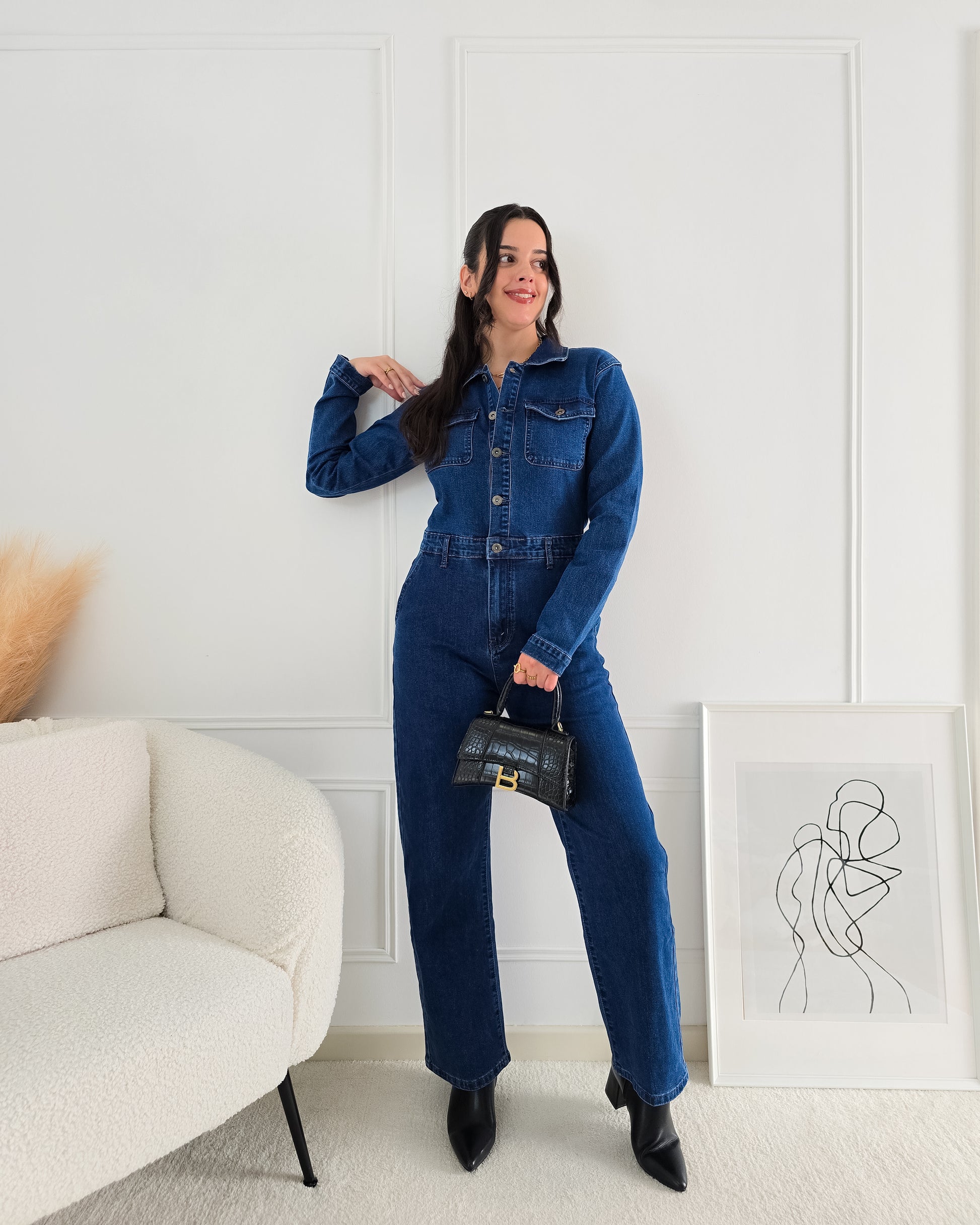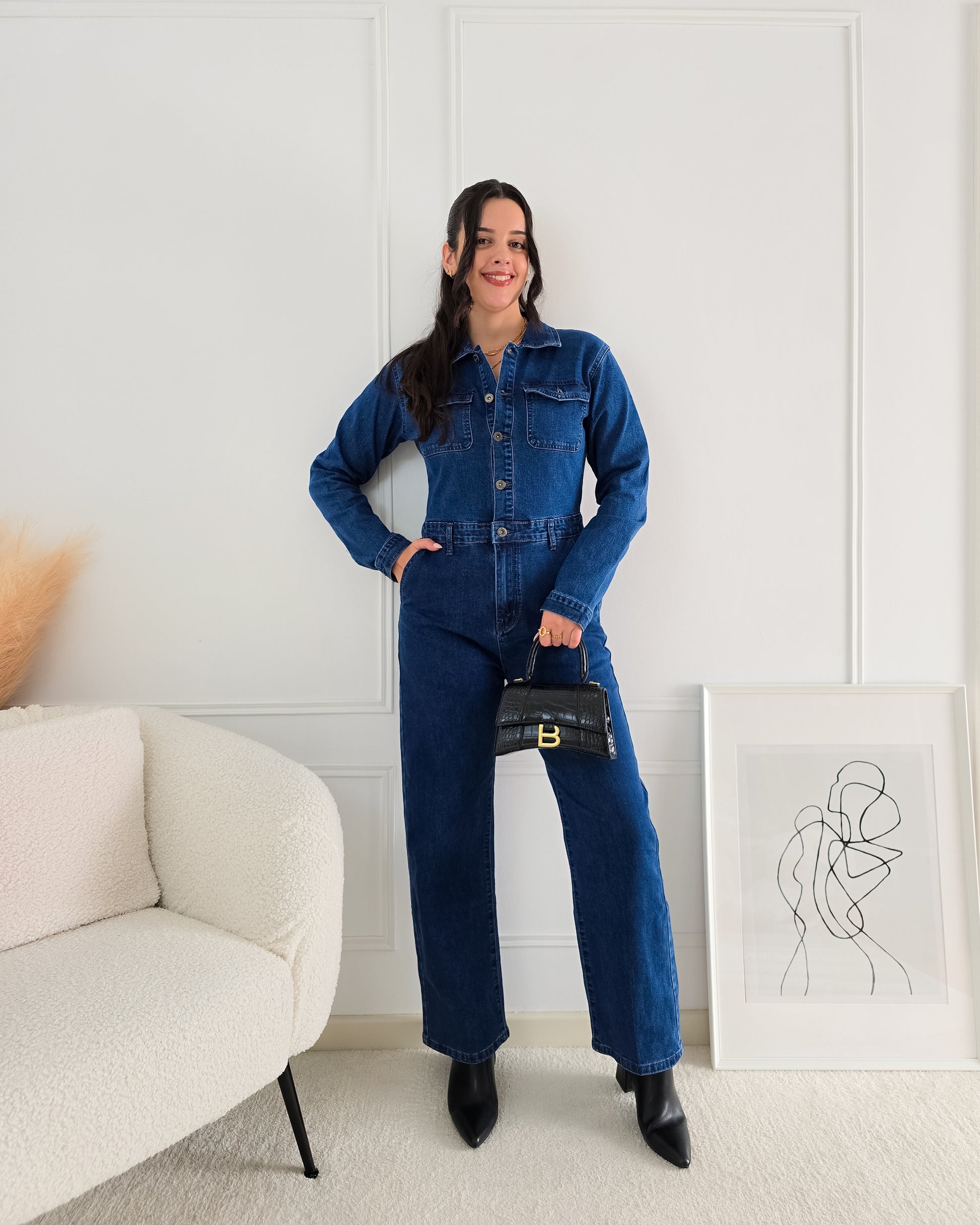 Adiciona um toque moderno e estiloso ao teu guarda-roupa com este macacão jeans! Perfeito para qualquer ocasião, combina conforto e um visual sofisticado.