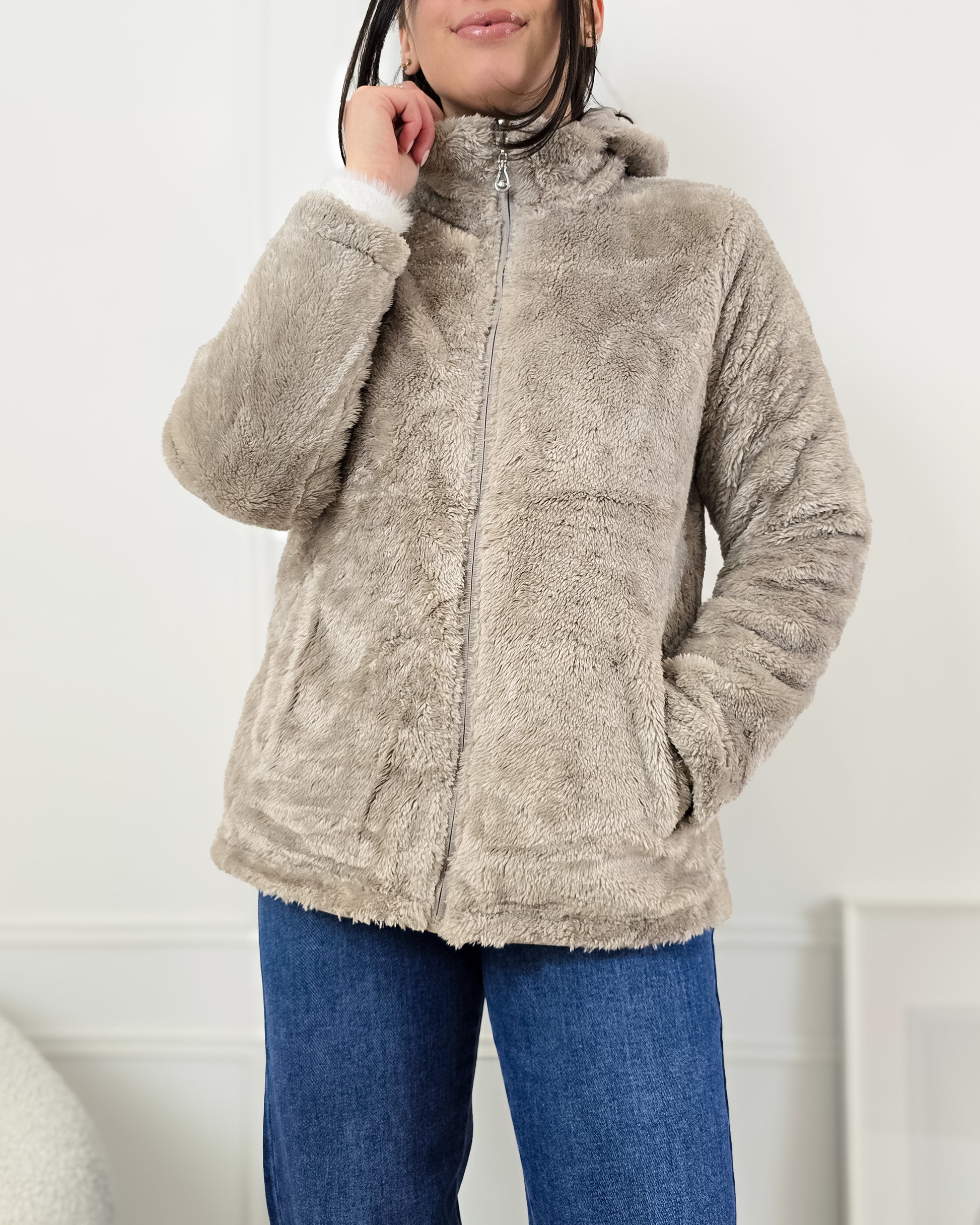 - Reversível: Usa com o pelo macio e quentinho por dentro nos dias mais frios ou vira para fora para um look trendy e super cosy!
