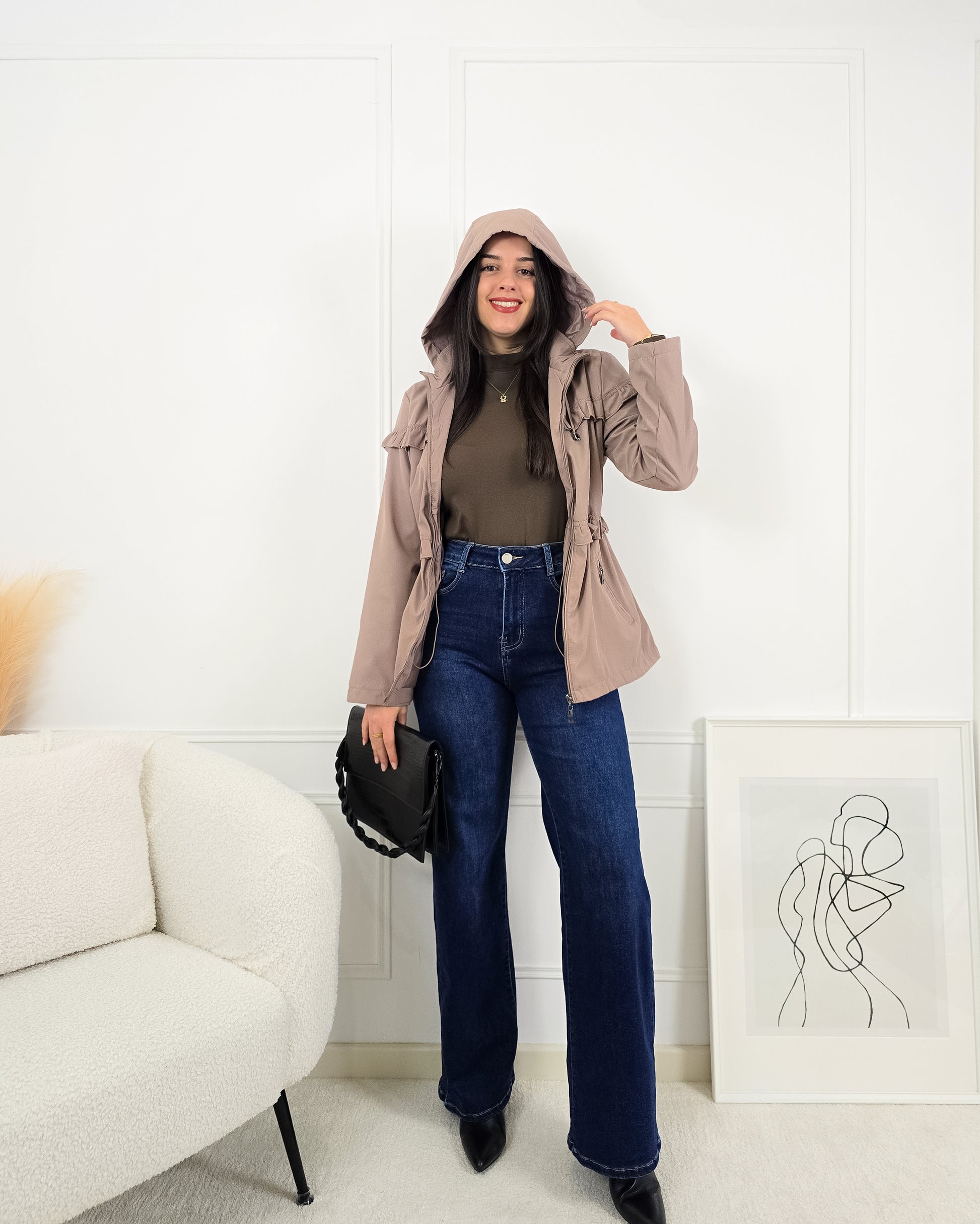 Enfrenta os dias frios e chuvosos com estilo e conforto com esta parka cheia de detalhes que fazem a diferença!