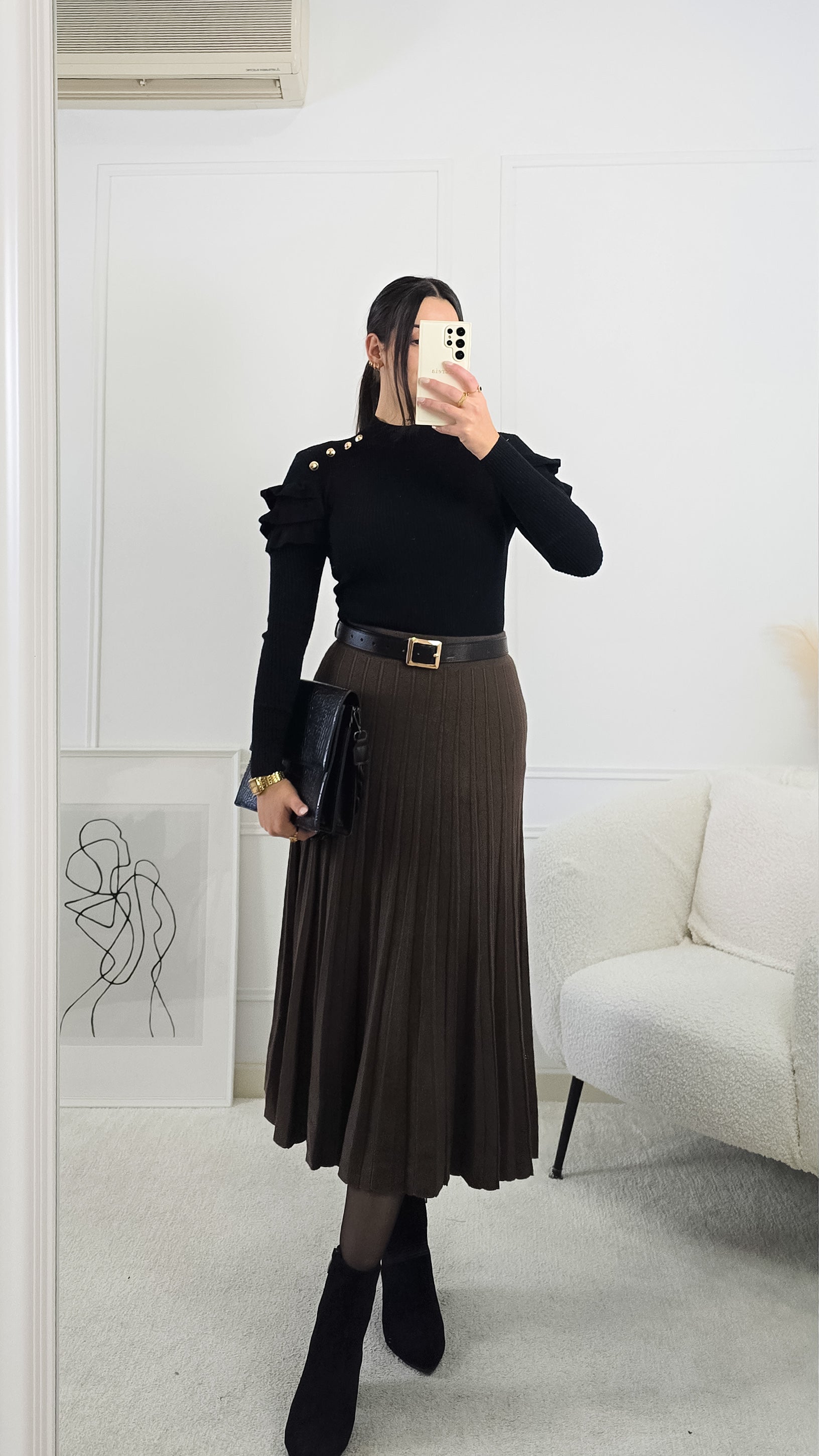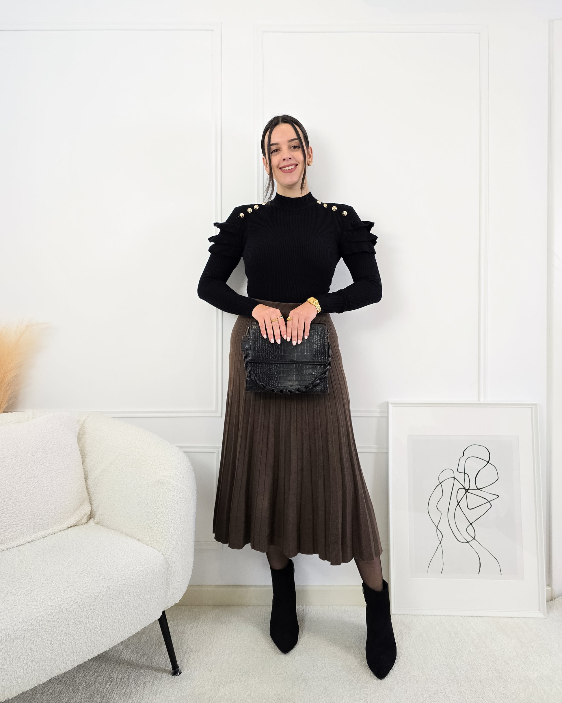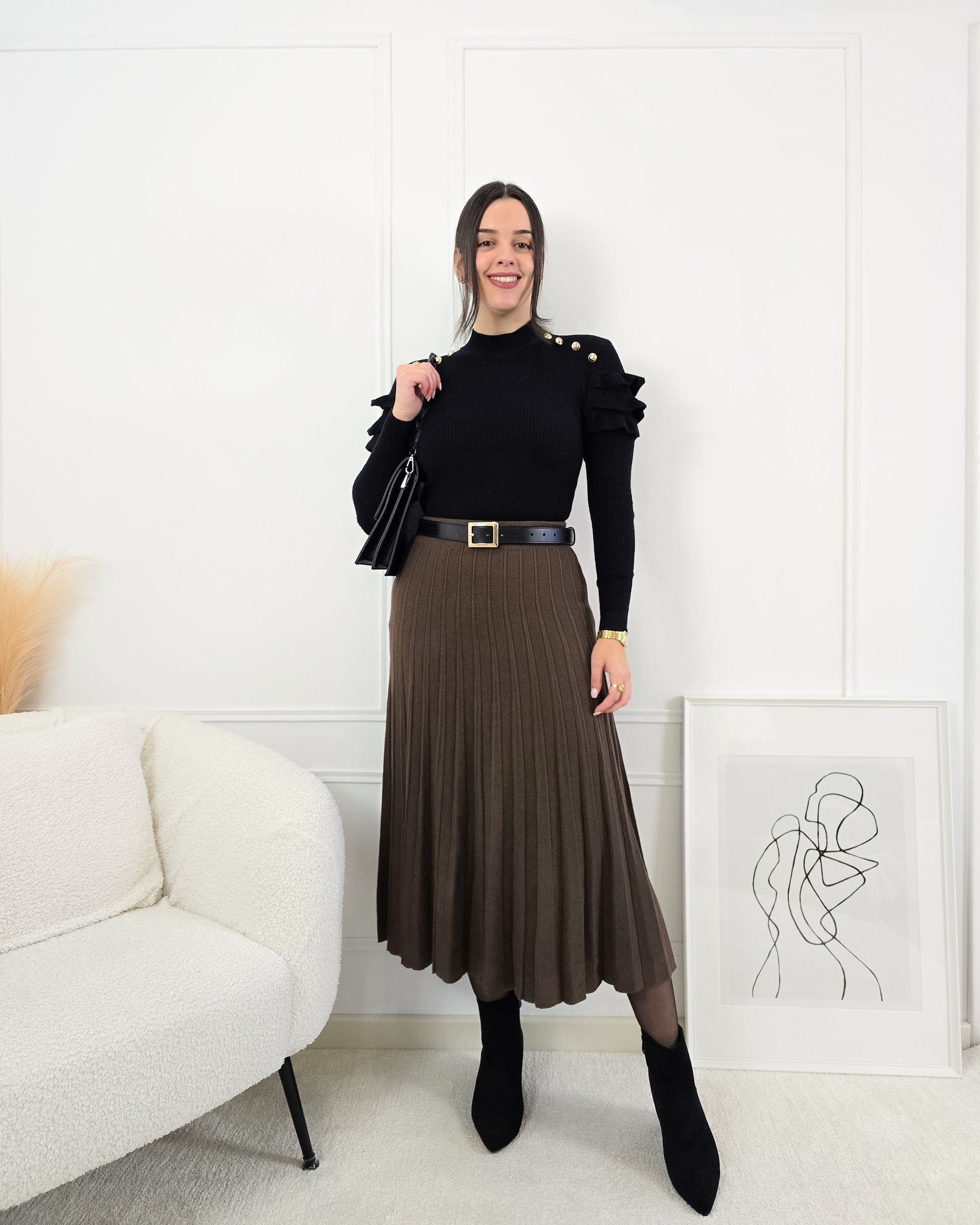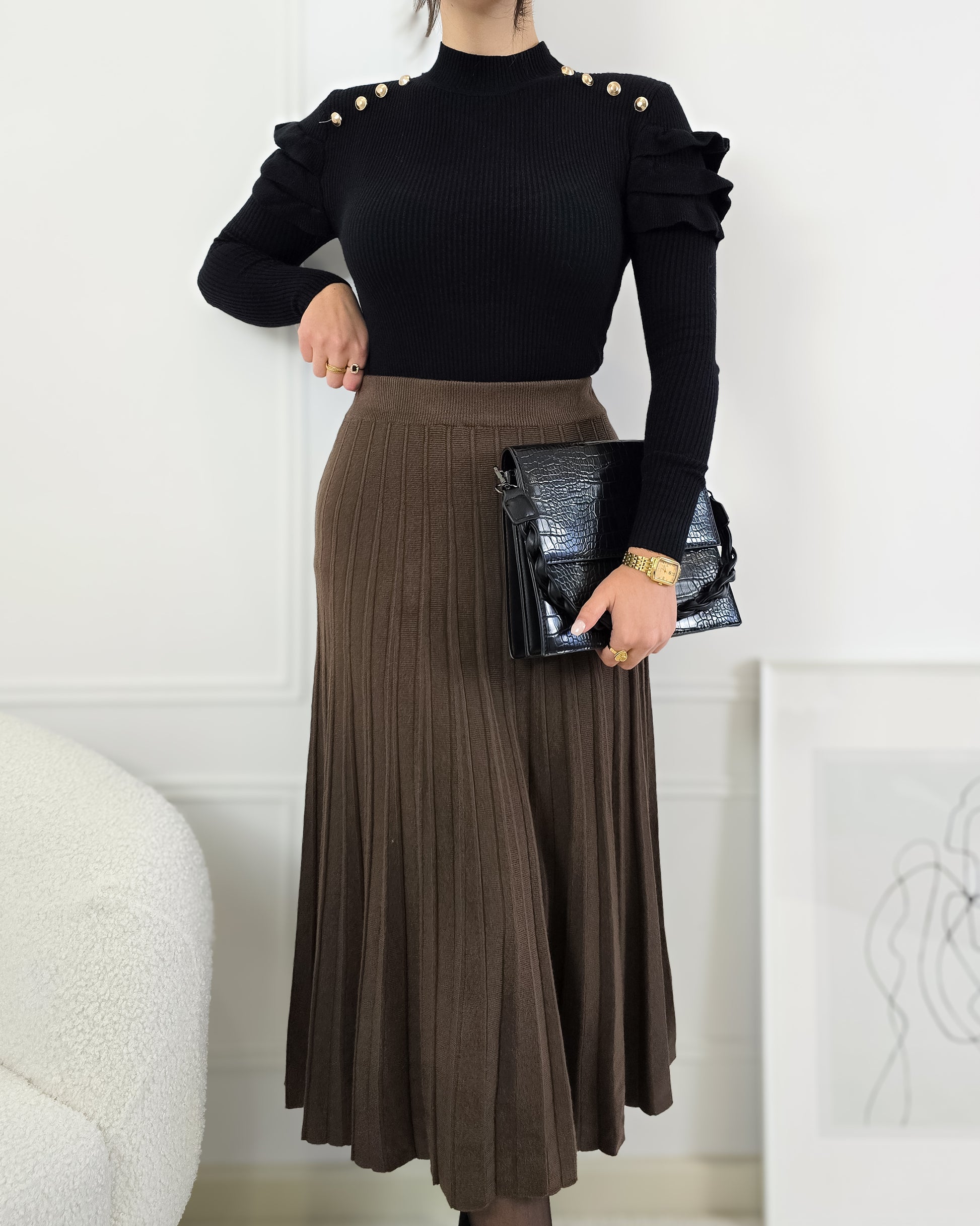 Dá elegância e movimento ao teu look com esta saia plissada em malha, perfeita para qualquer estação!