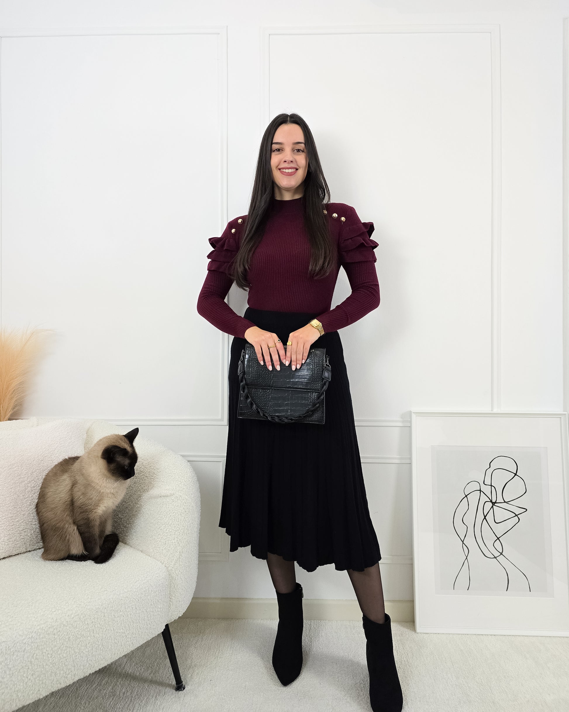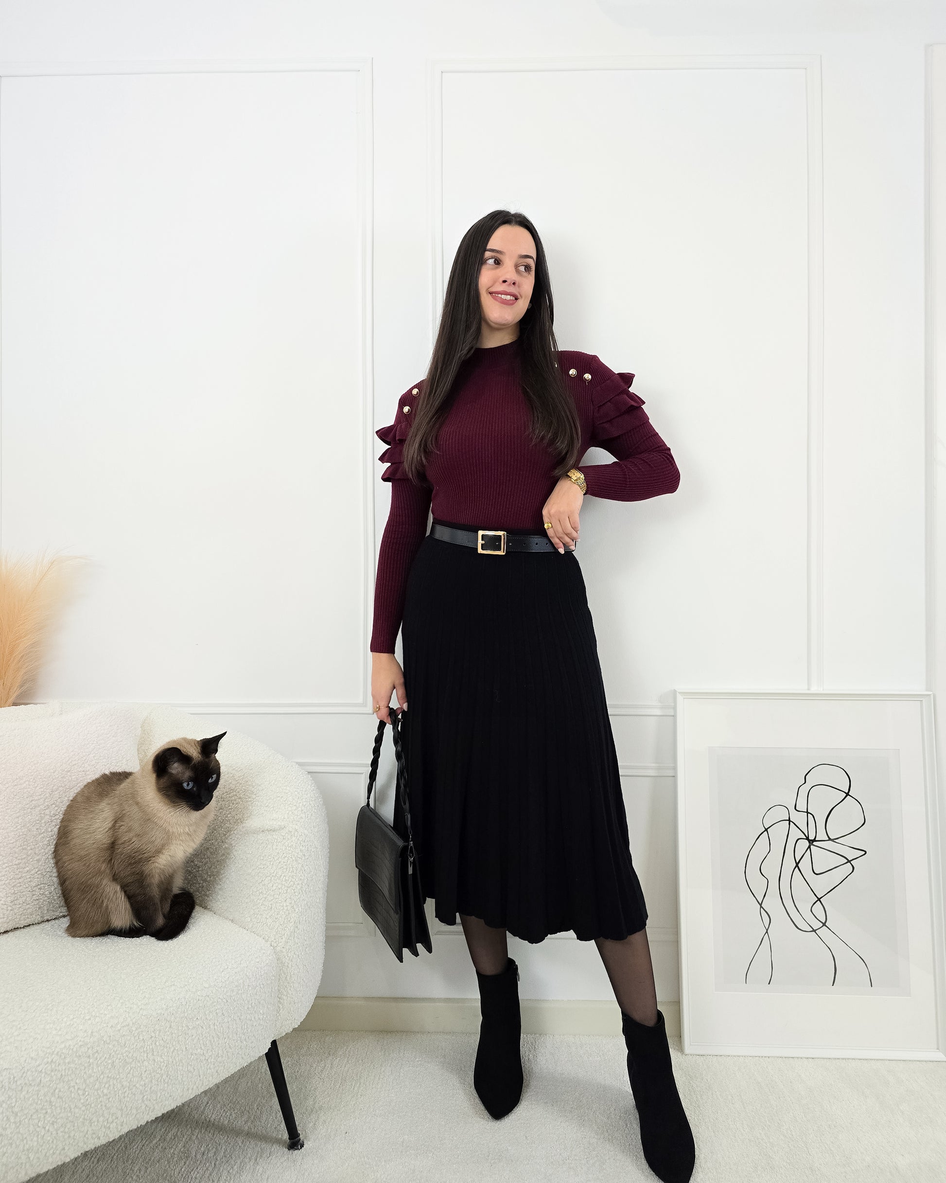 Dá elegância e movimento ao teu look com esta saia plissada em malha, perfeita para qualquer estação!