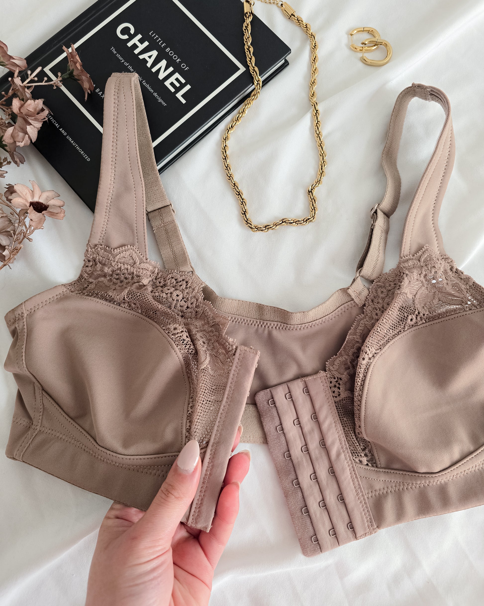 - Fecho à Frente: Prático e super fácil de vestir e despir, ideal para quem procura conveniência sem complicações.