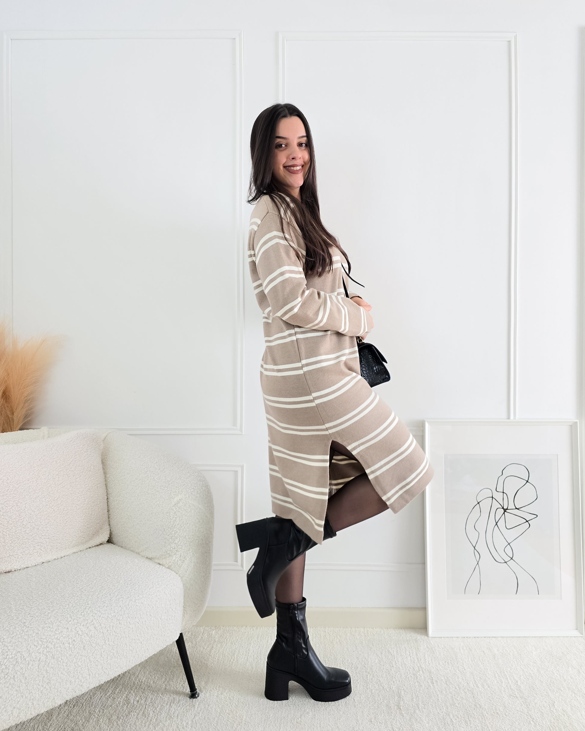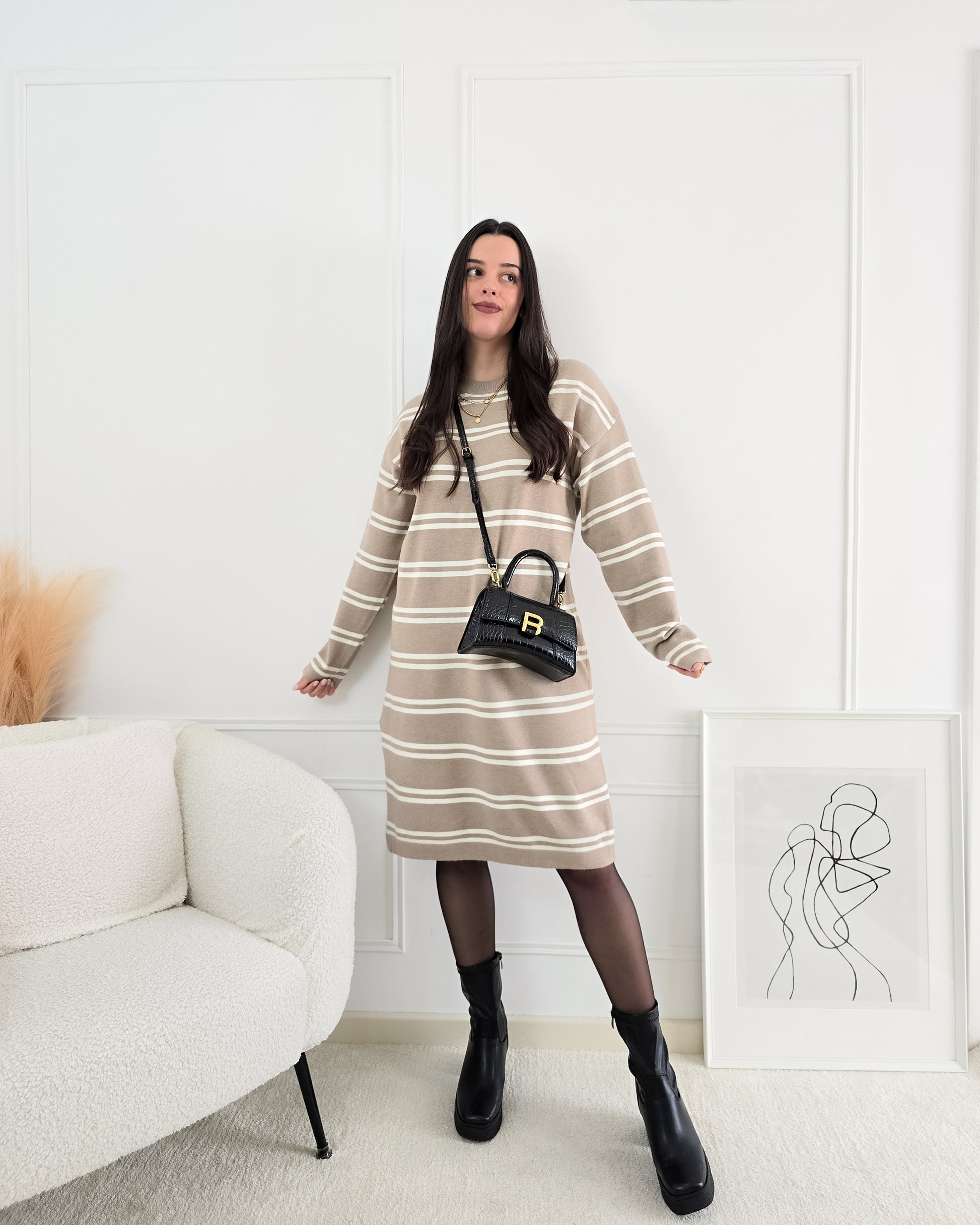 Descobre o conforto e a elegância deste vestido de malha, perfeito para os dias frios em que só apetece estar quentinha sem perder o estilo!