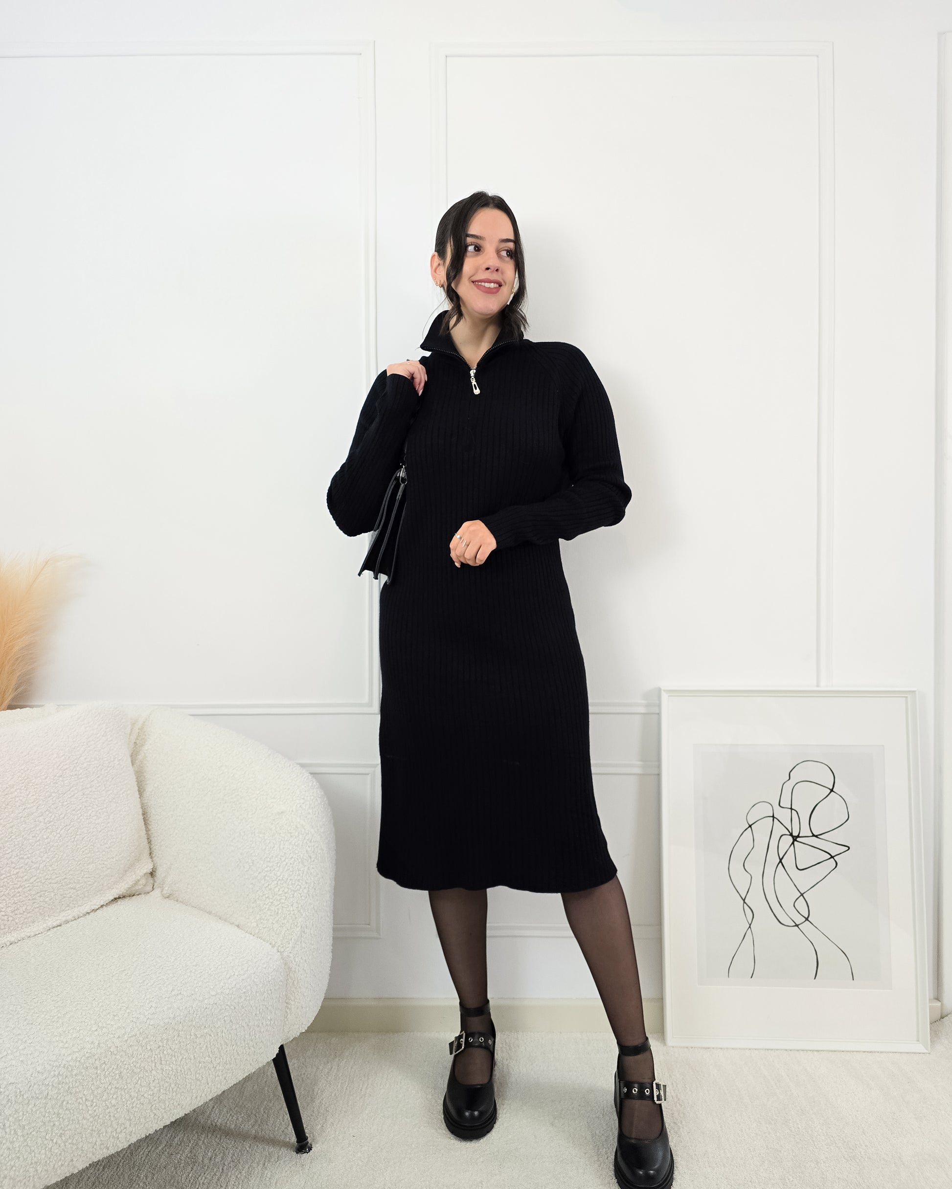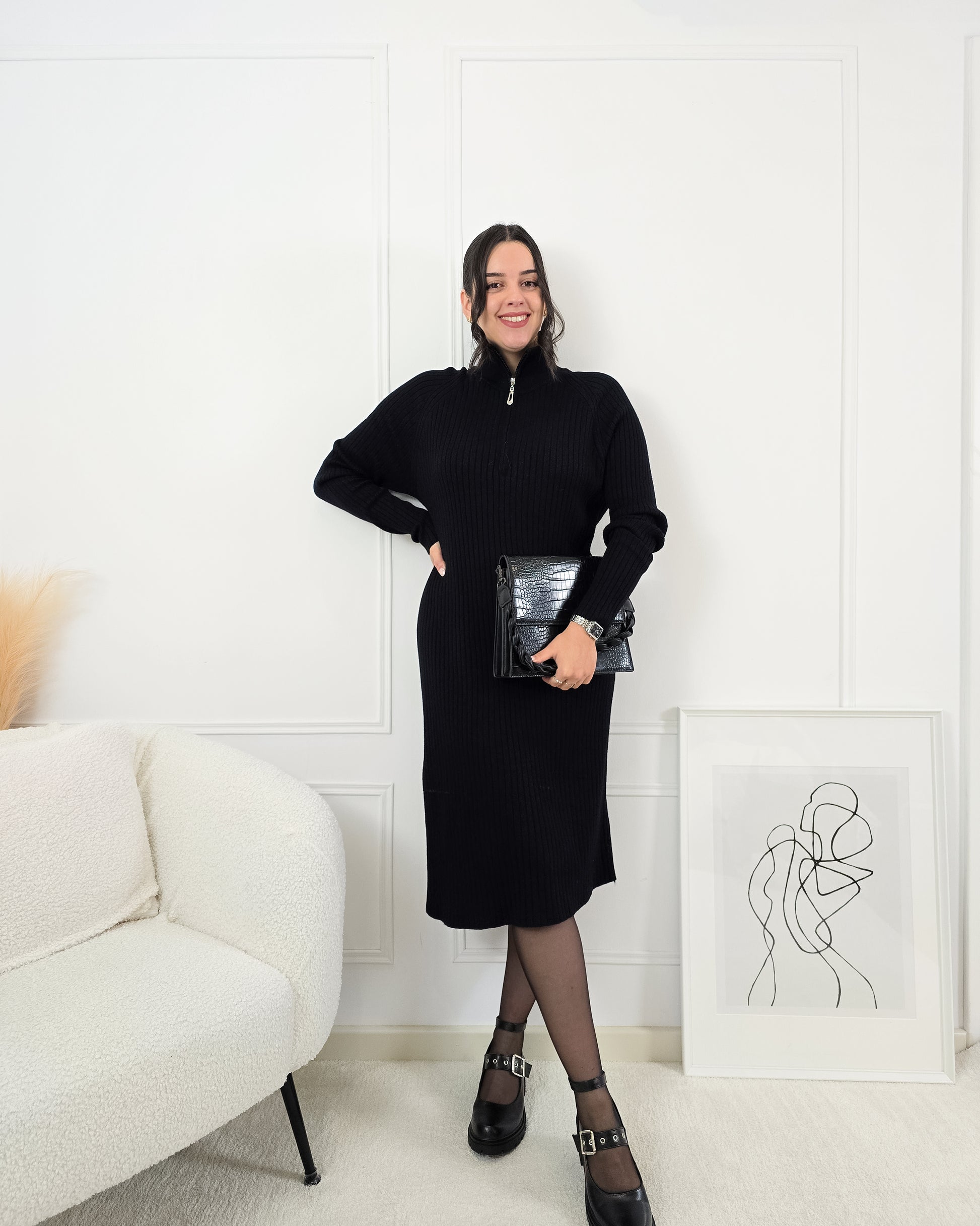 Descobre o conforto e a elegância num só look com este vestido de malha canelada – o essencial para os dias mais frios!